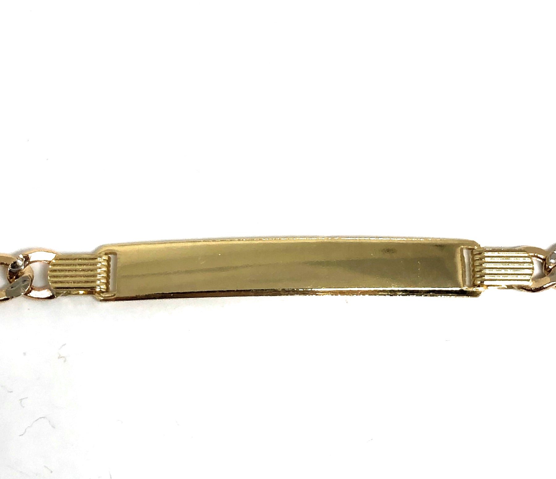 14k Solid Gold Kids 0-8 ID FIGARO Brracelet 6 inch length 3.5MM-4.25MM Width (Free Engraving, Email us name!)