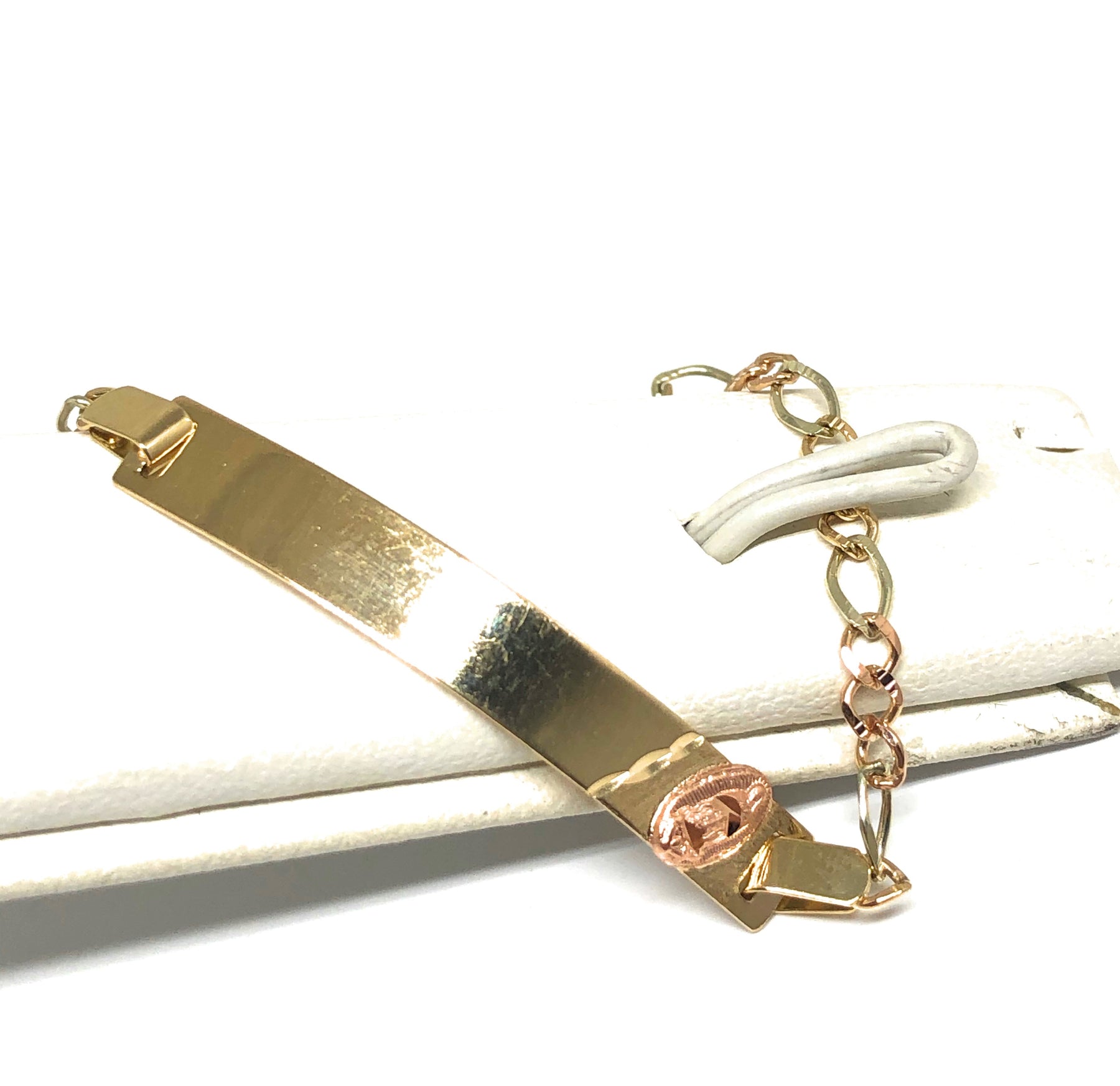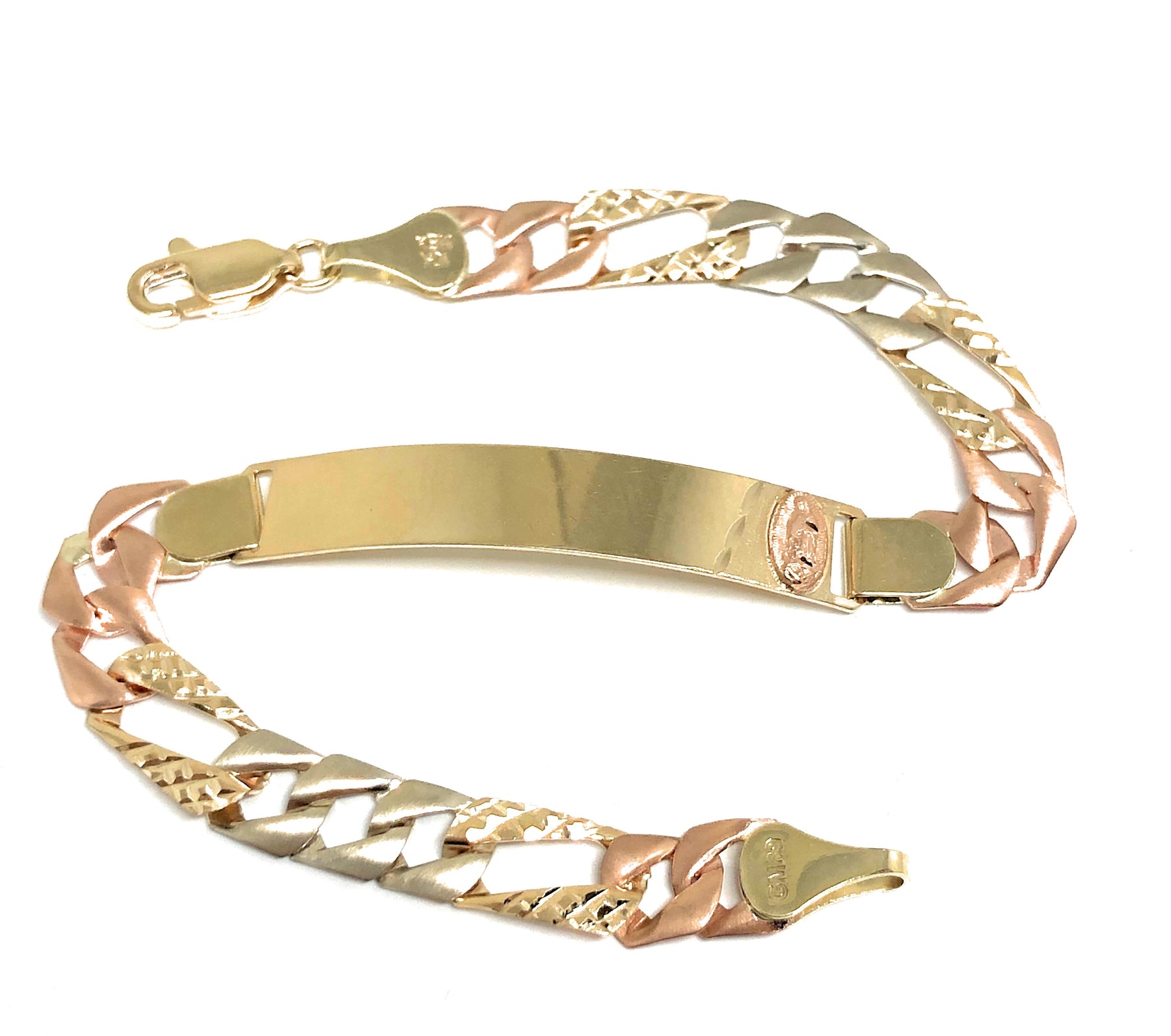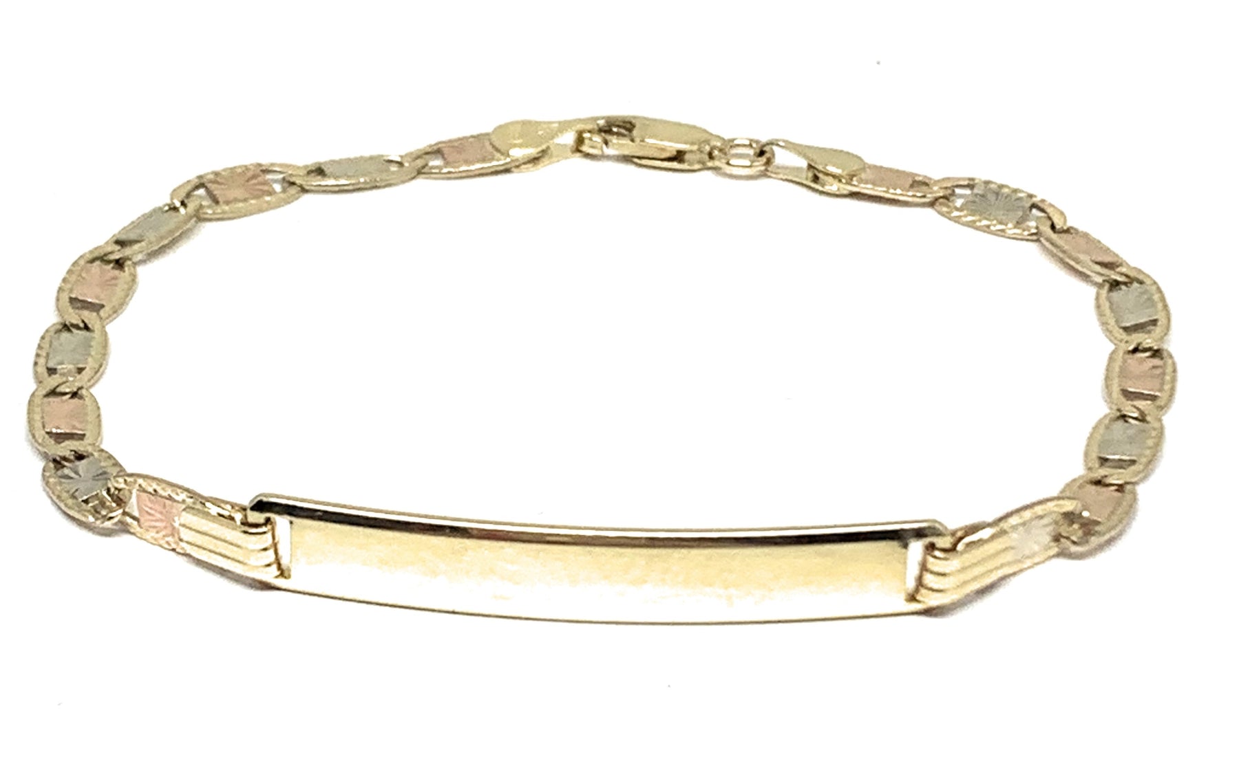 14k Solid Gold Tri-Color Valentina ID Brracelet 7.5-8 inch length 2.5-5mm Width (Free Engraving, Email us name!)