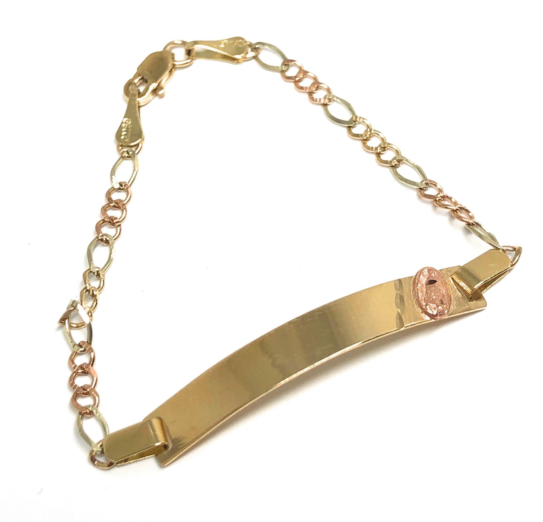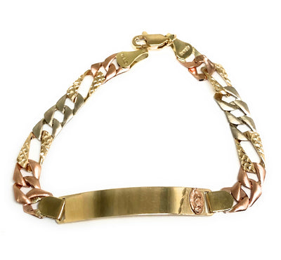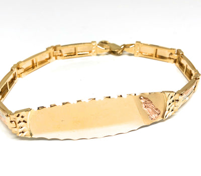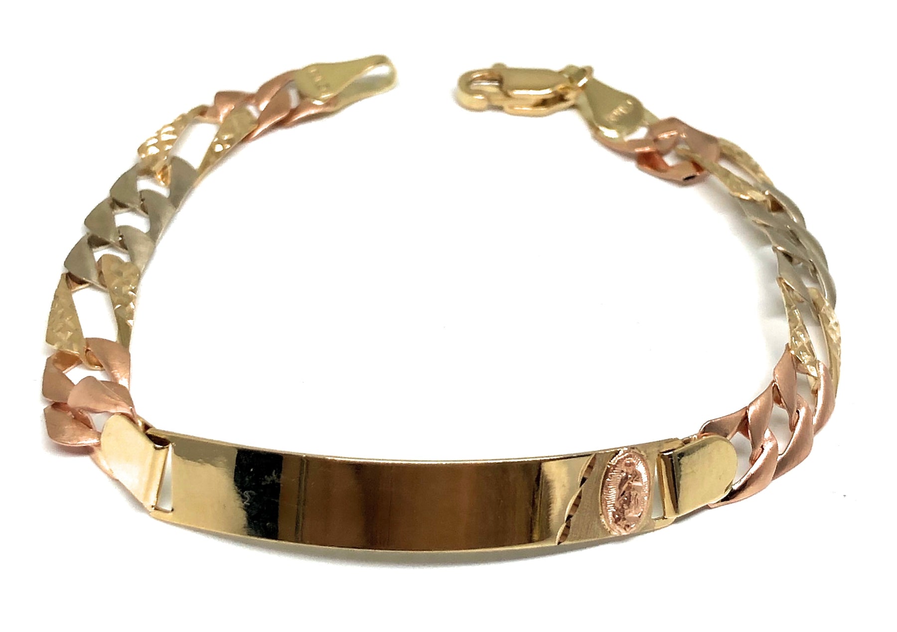 14k Solid Gold Tri-Color Virrgin Mary ID Brracelet 7.25 inch Virrgen Guadalupe (Free engraving)