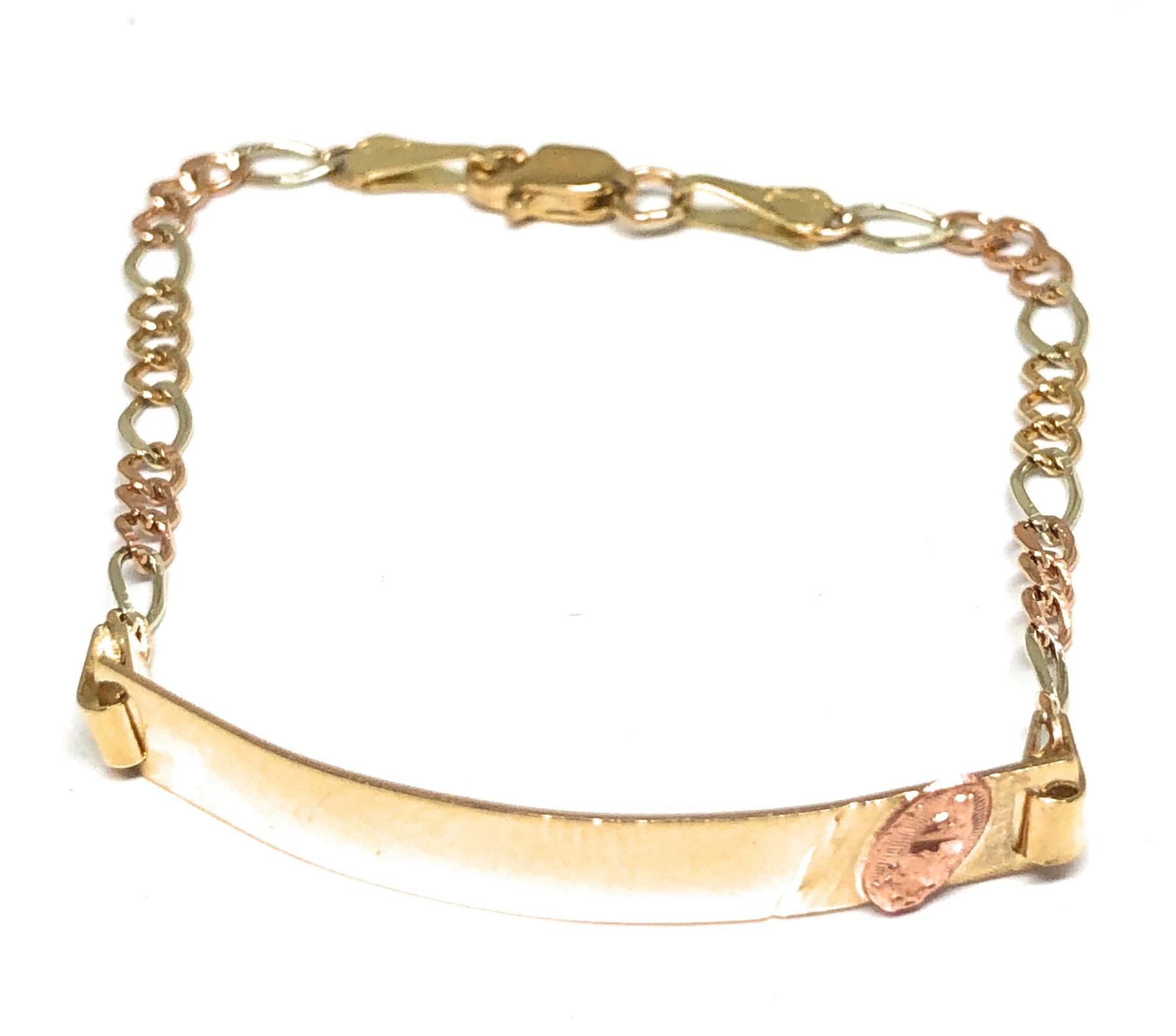 14k Solid Gold Tri-Color Virrgin Mary ID Brracelet 7.5 inch Virrgen Guadalupe (Free engraving)