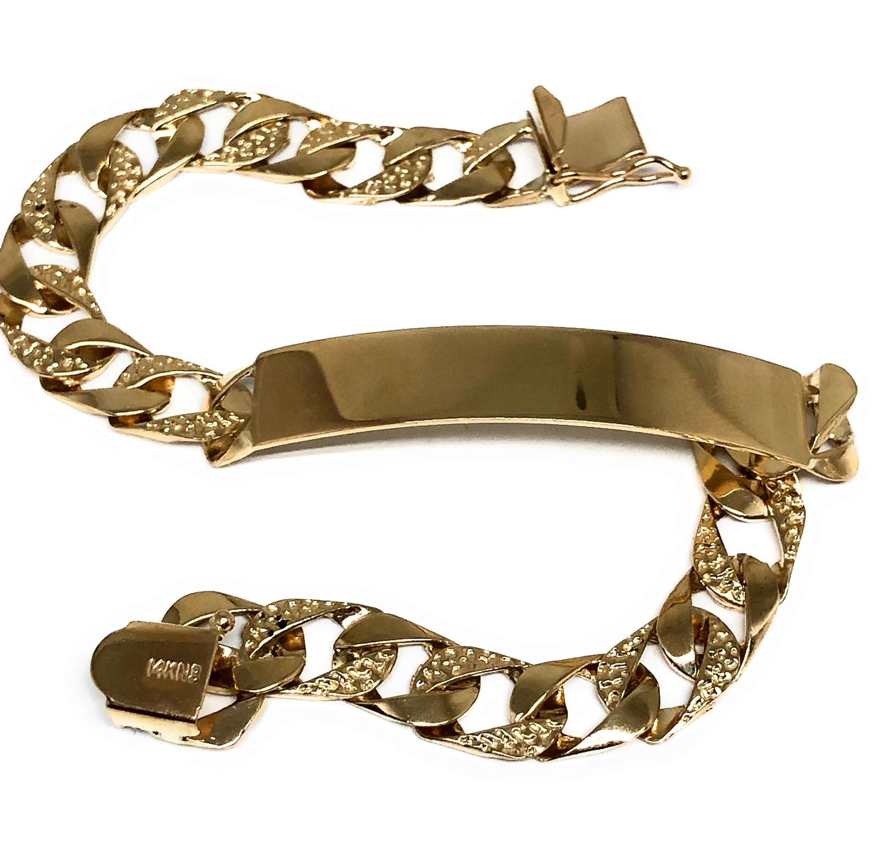 14k Solid Gold Yellow ID Brracelet 7-8 inch length 5-6mm Width (Free Engraving, Email us name!)