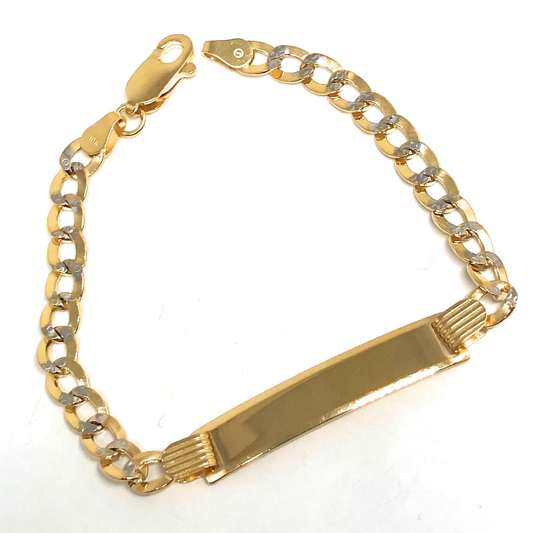 14k Solid Gold Kids 0-8 ID Cuban Link Brracelet 6 inch length 4.5MM Width (Free Engraving, Email us name!)