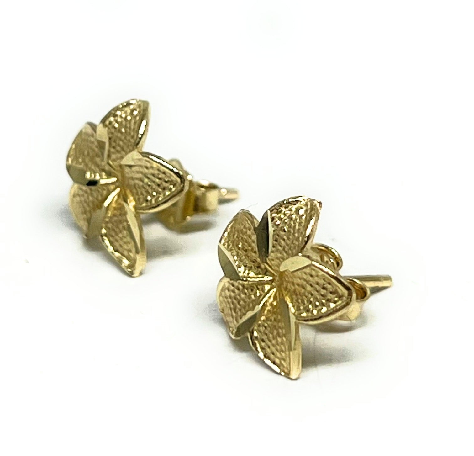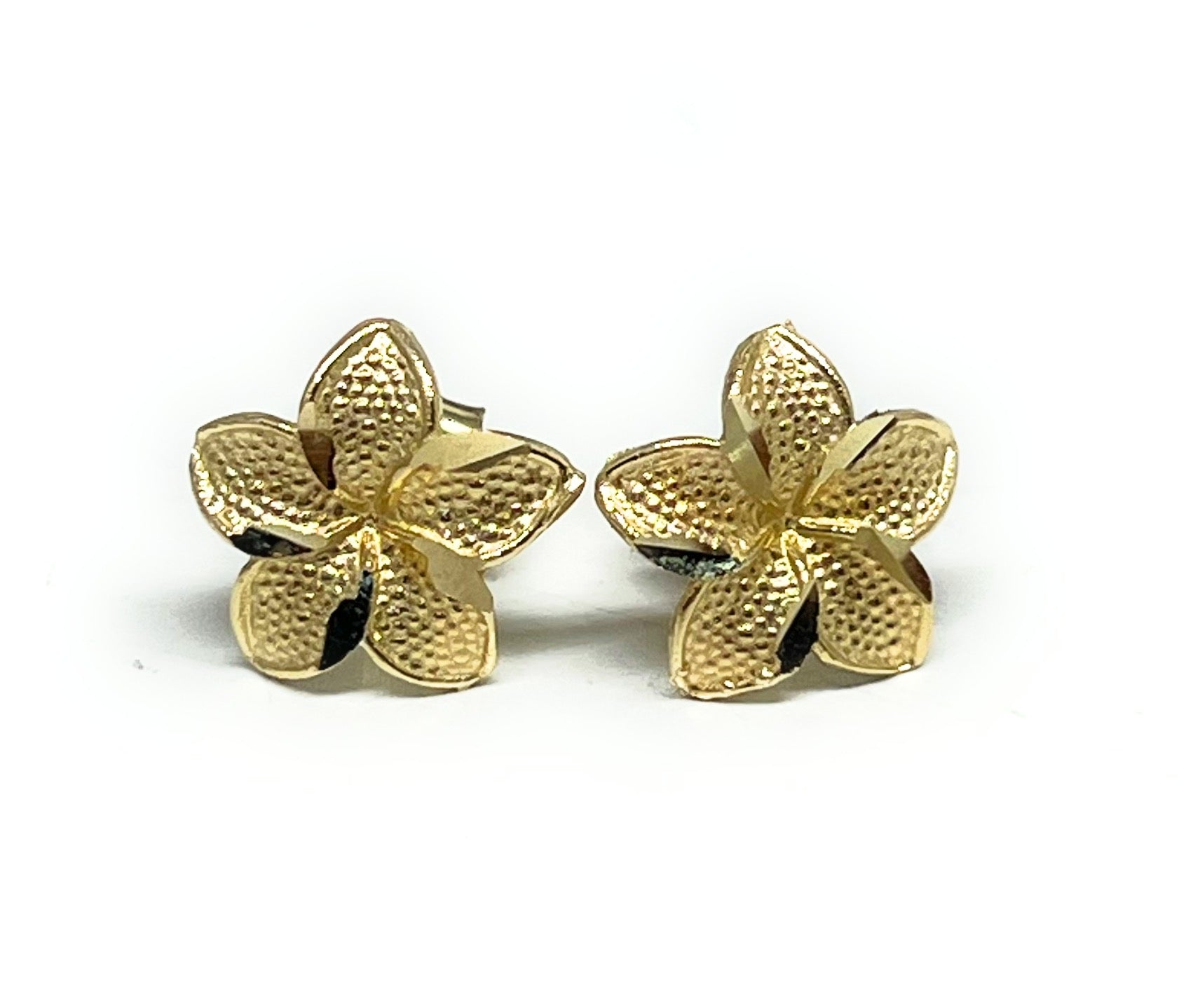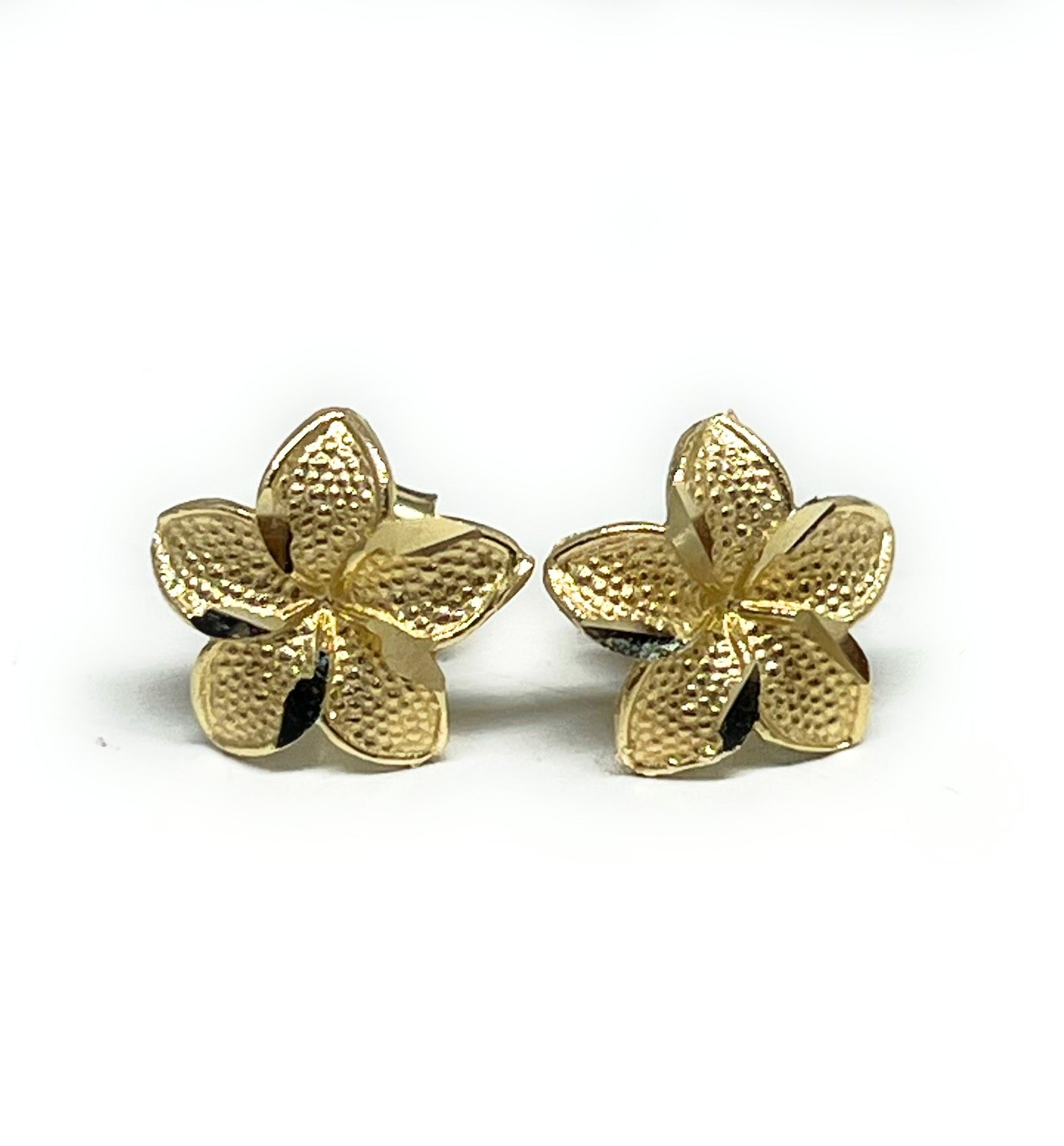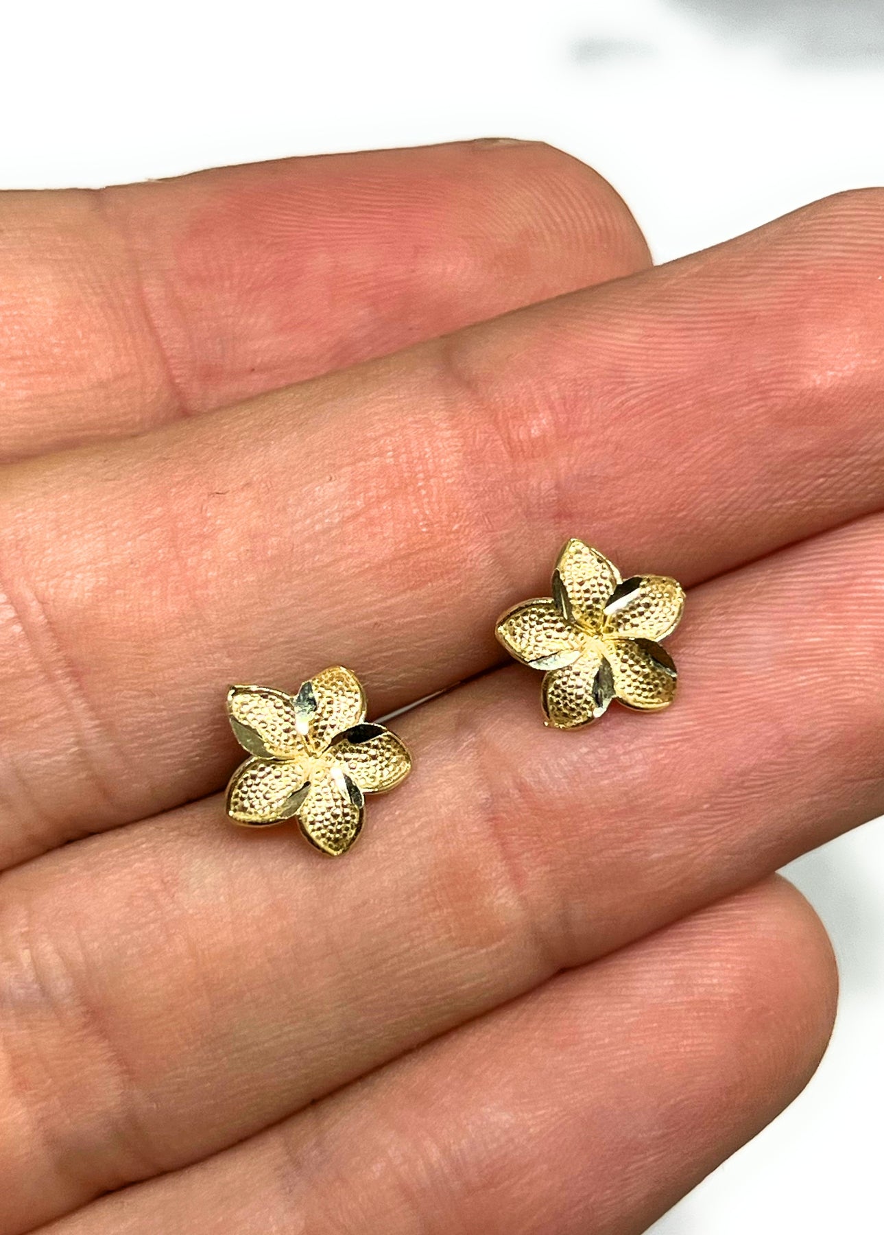 • Yellow Gold Plumeria Flower dainty earrings 10k solid gold guaranteed.