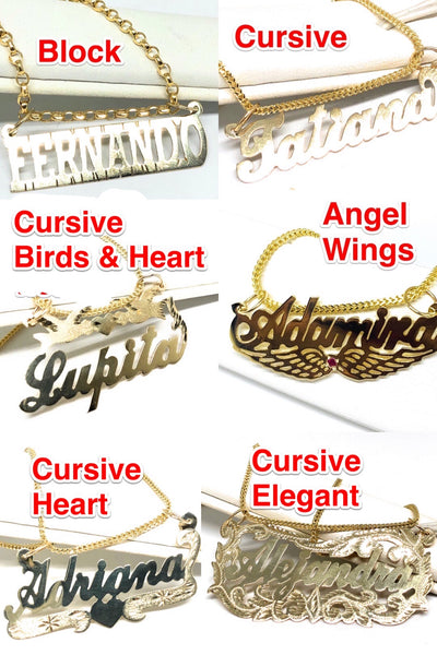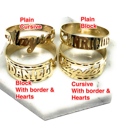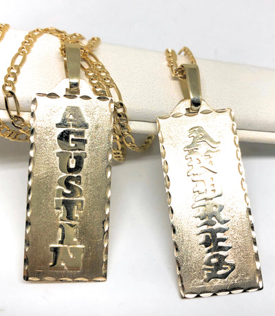 Custom made nameplates, rings, initial pendants, and custom engraved bracelets available in this section. Please allow 10-14 day production time for custom nameplates, rings, and initial pendants.