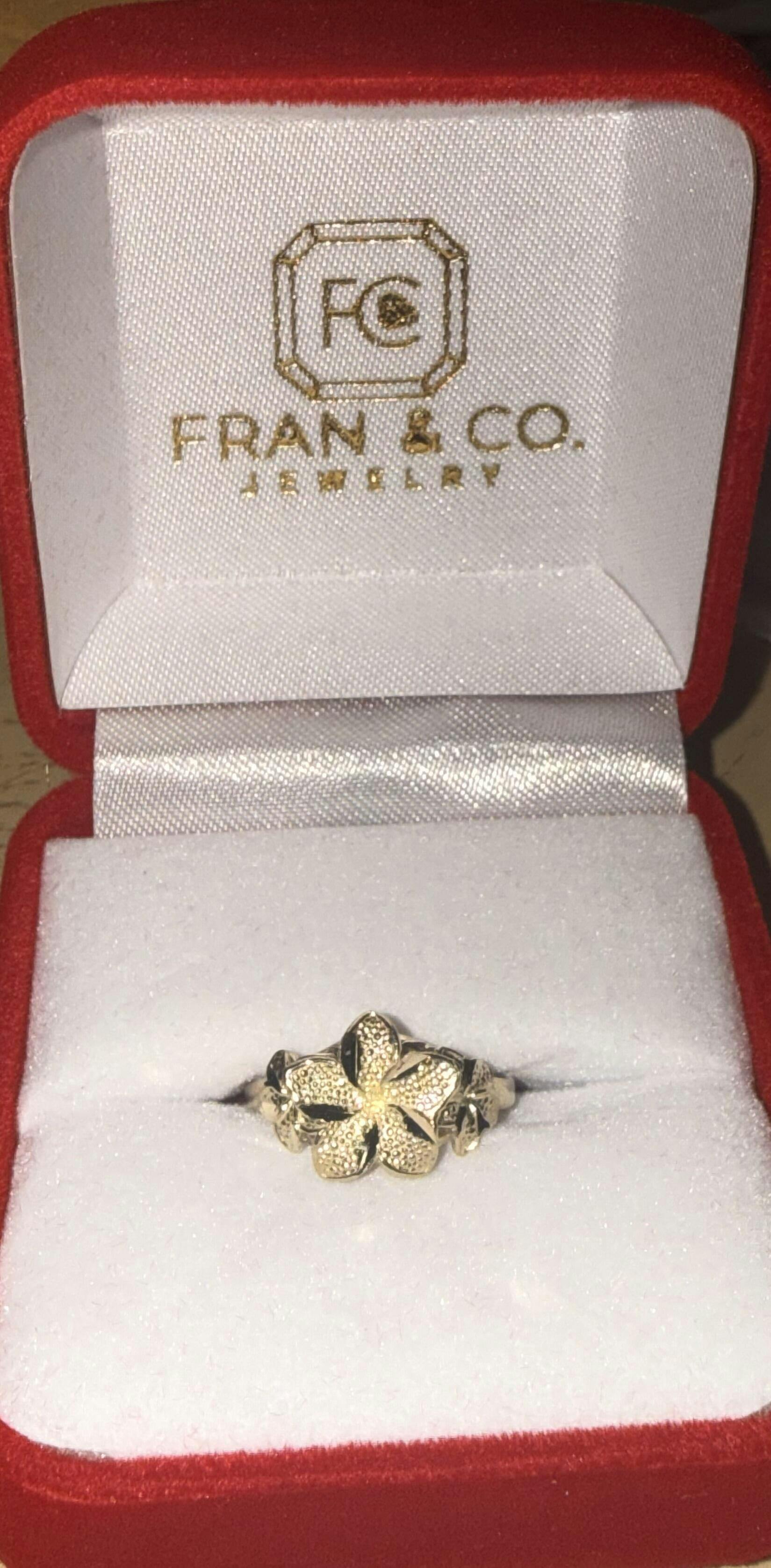 10k Solid Gold Yellow PLUMERIA Flower Ring