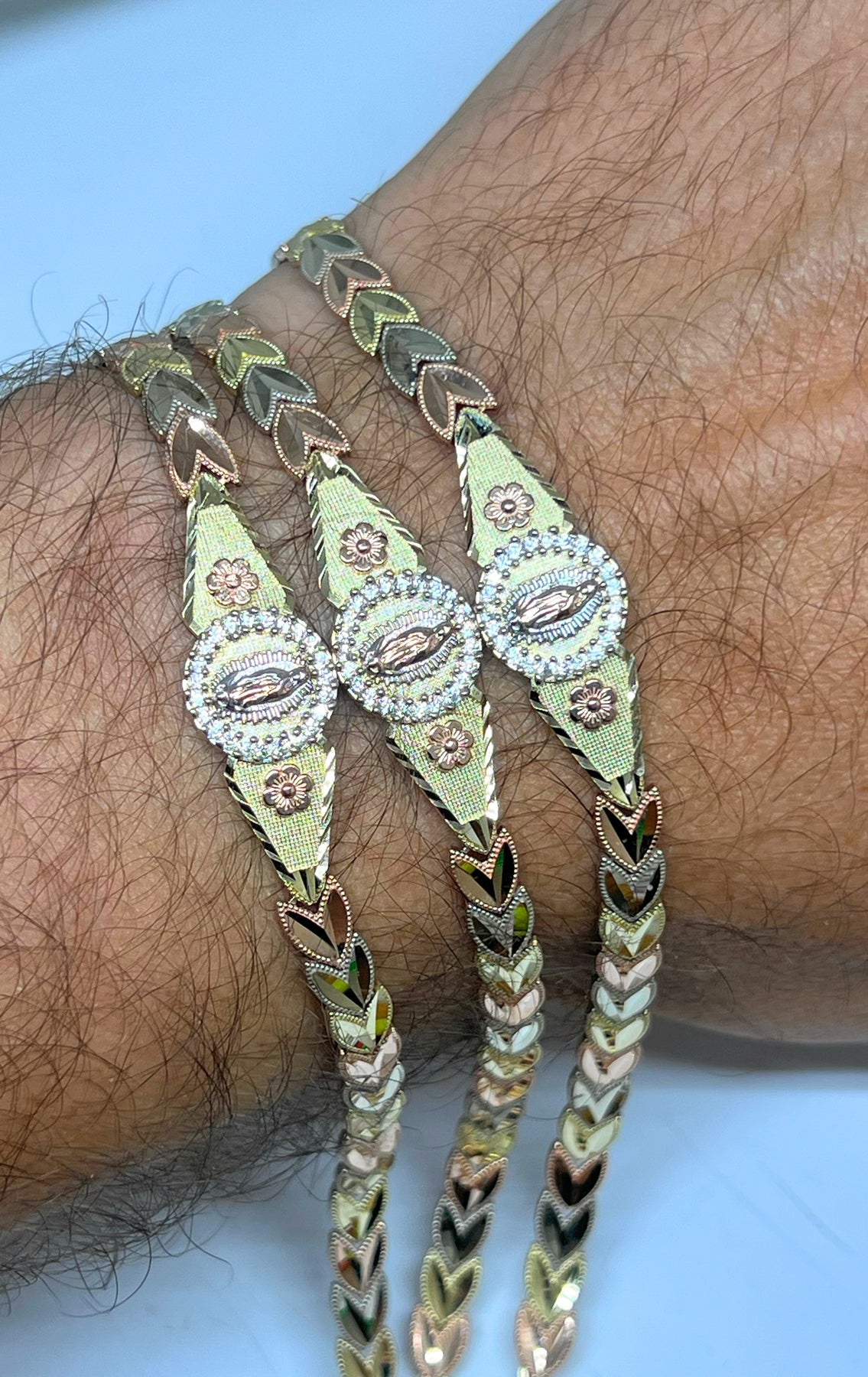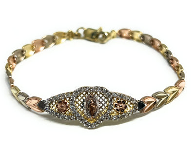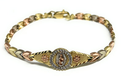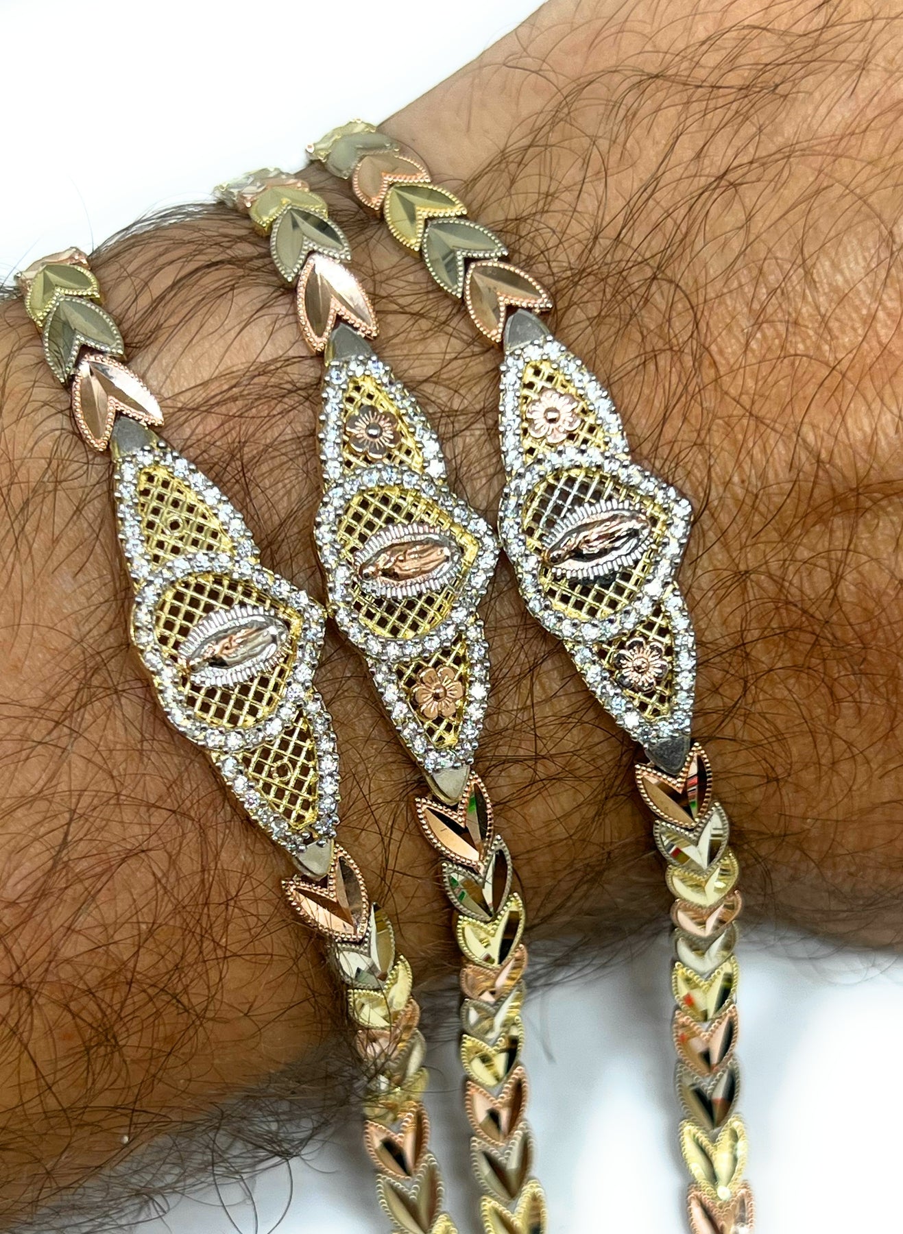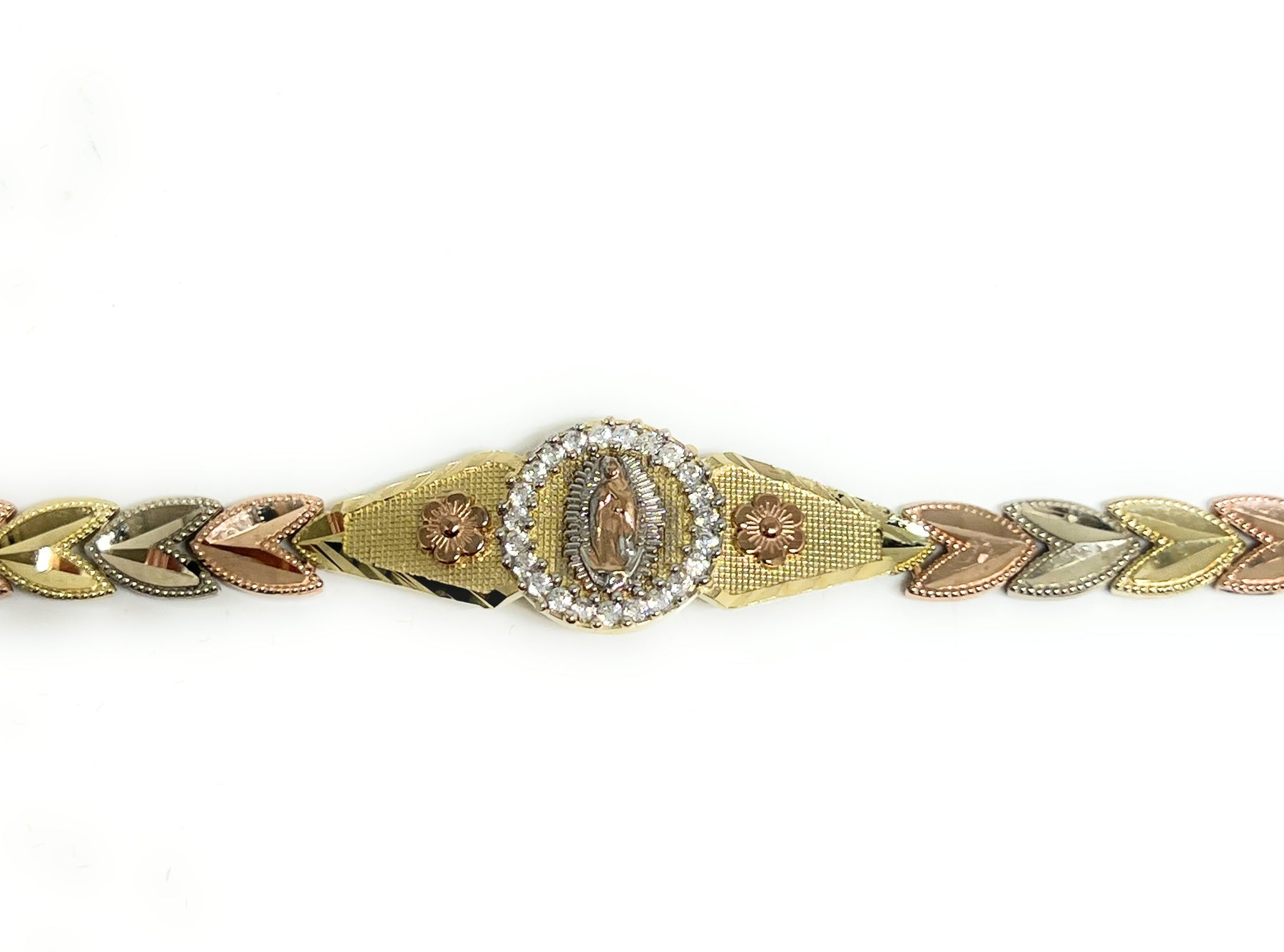 10k Solid Gold Tri-Color Virrgin Mary HEART Brracelet 7.25 inch Virrgen Guadalupe