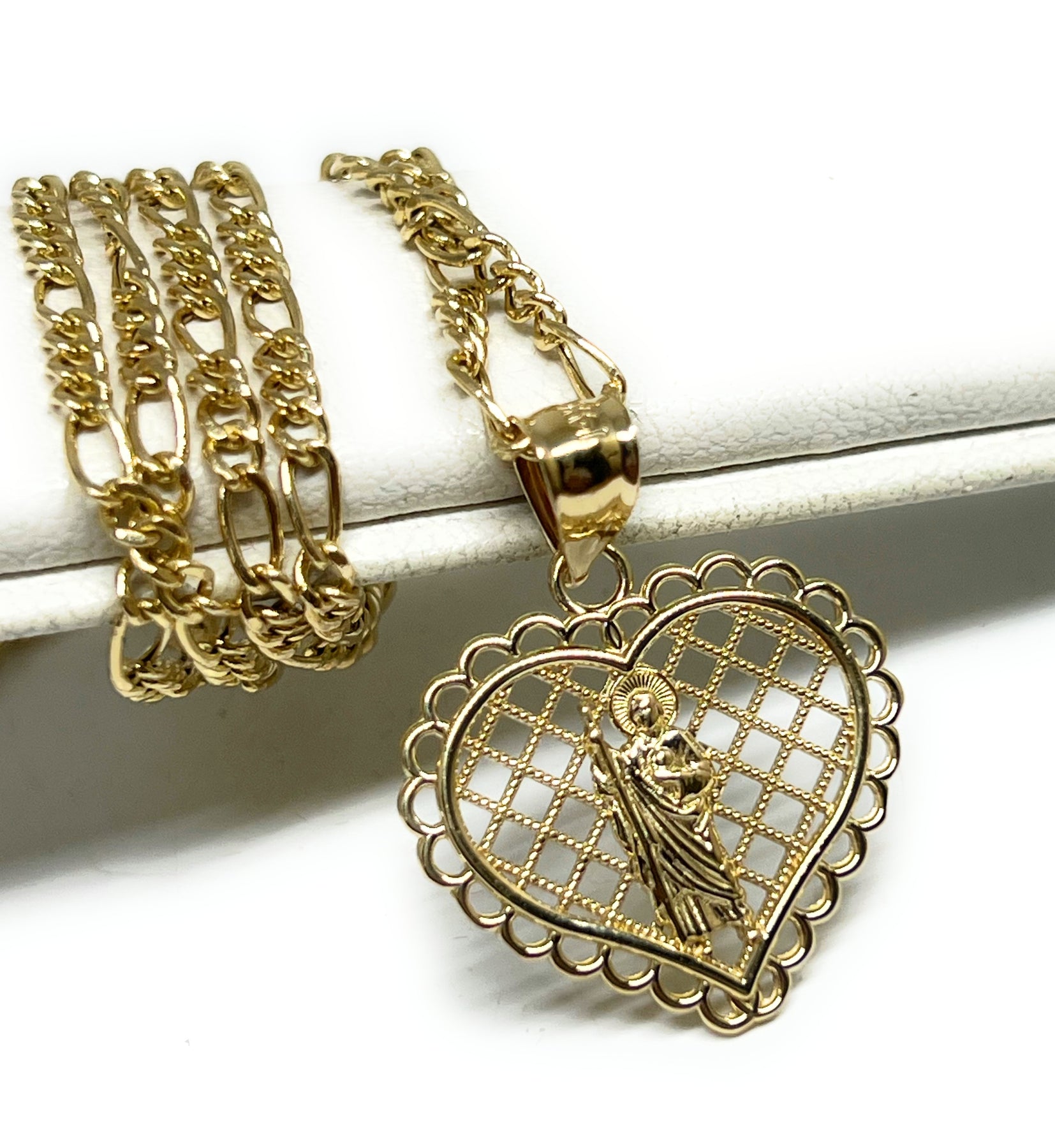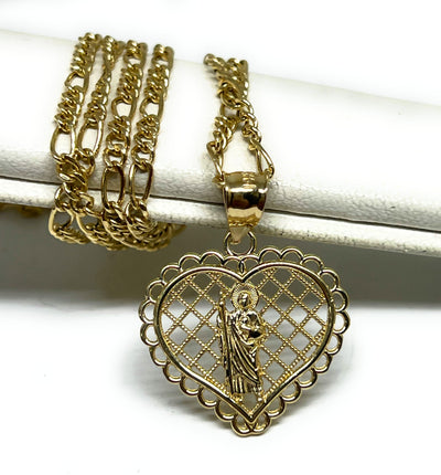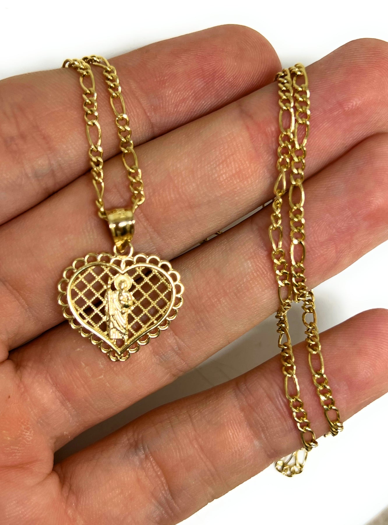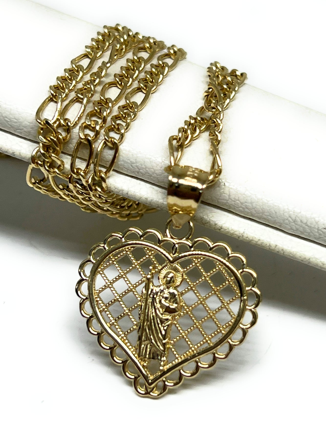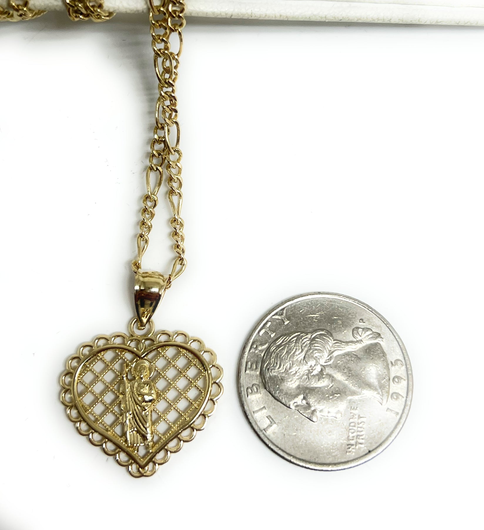 14k Solid Gold Yellow Saan Judas Saaint Jude Heart Pendant Necklace