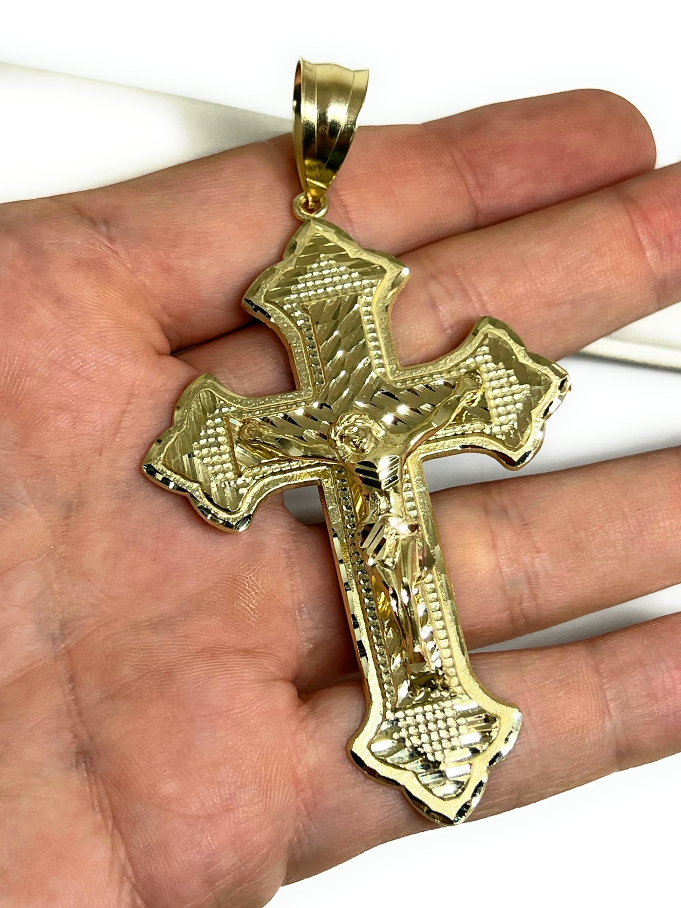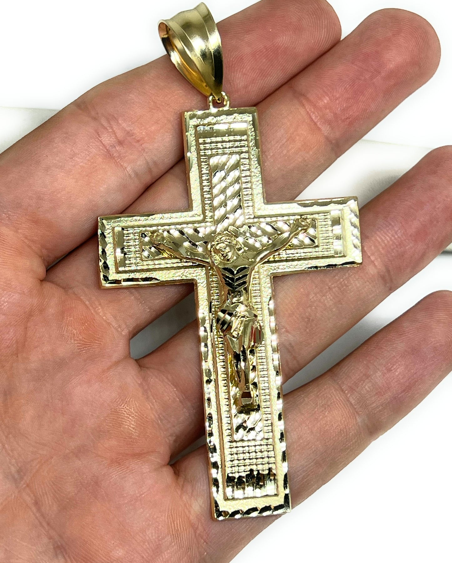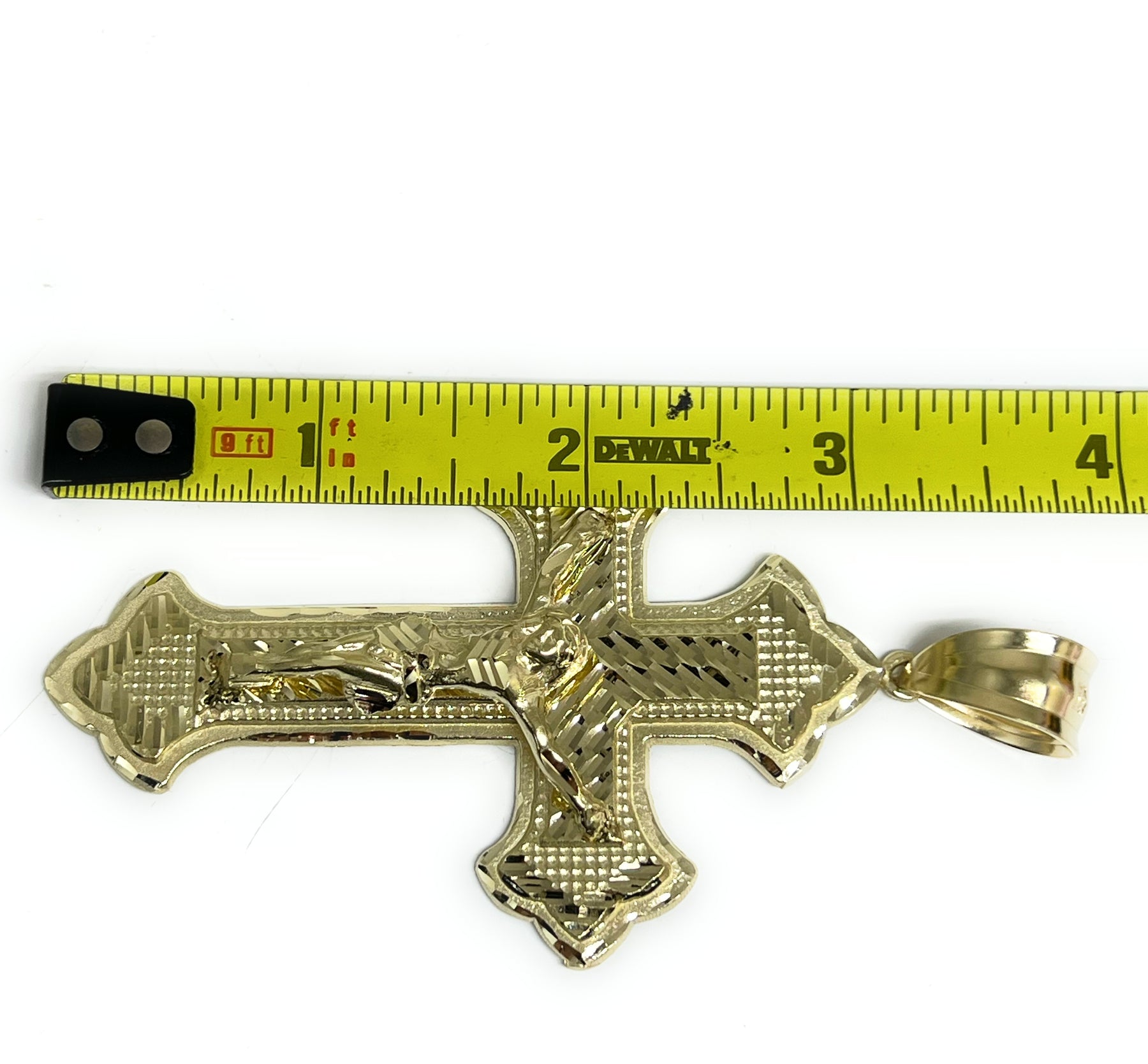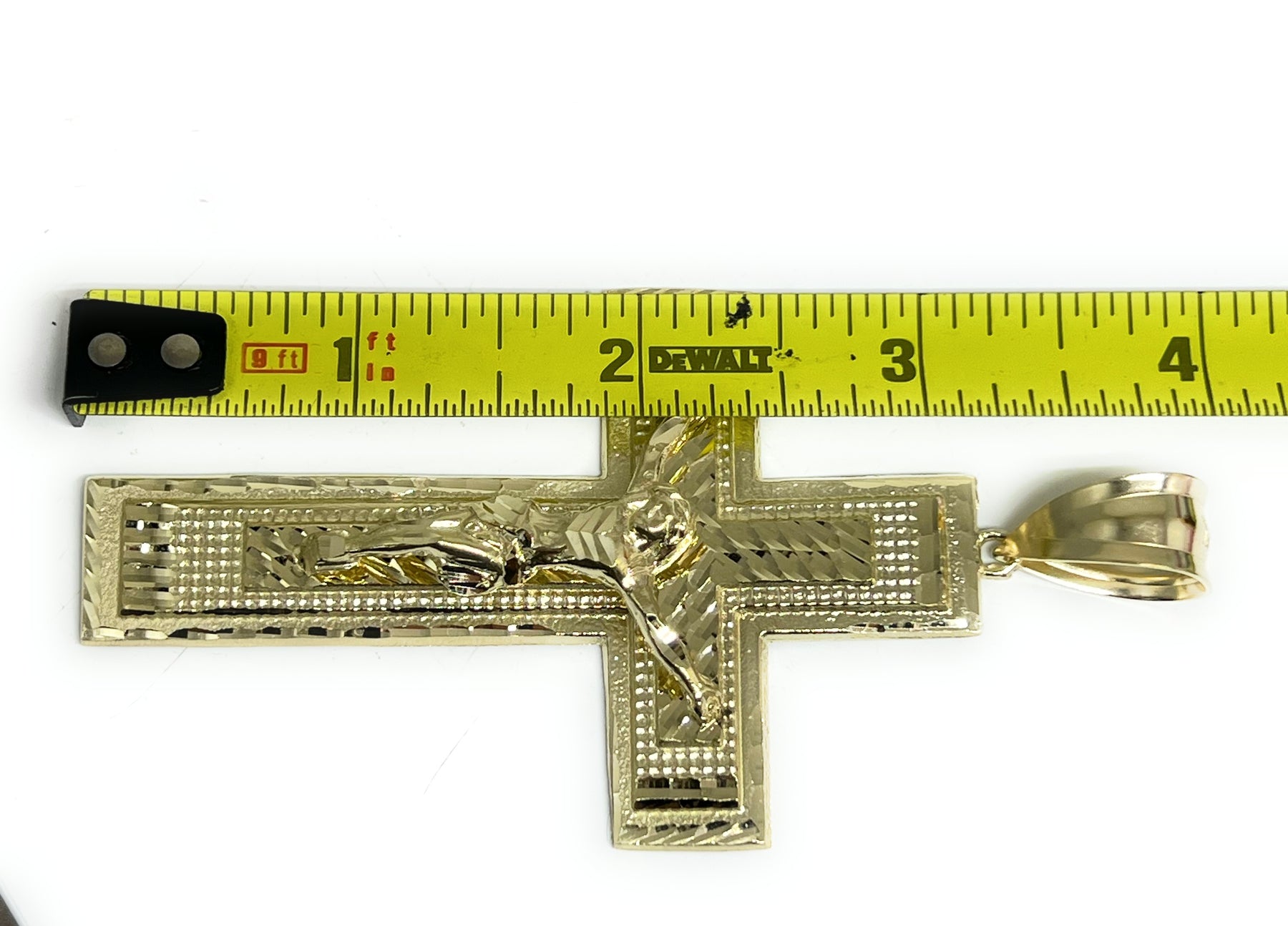 10k Solid Gold Yellow BIG XXL Jesus Cross Crucifix Pendant Necklace (13.7g)
