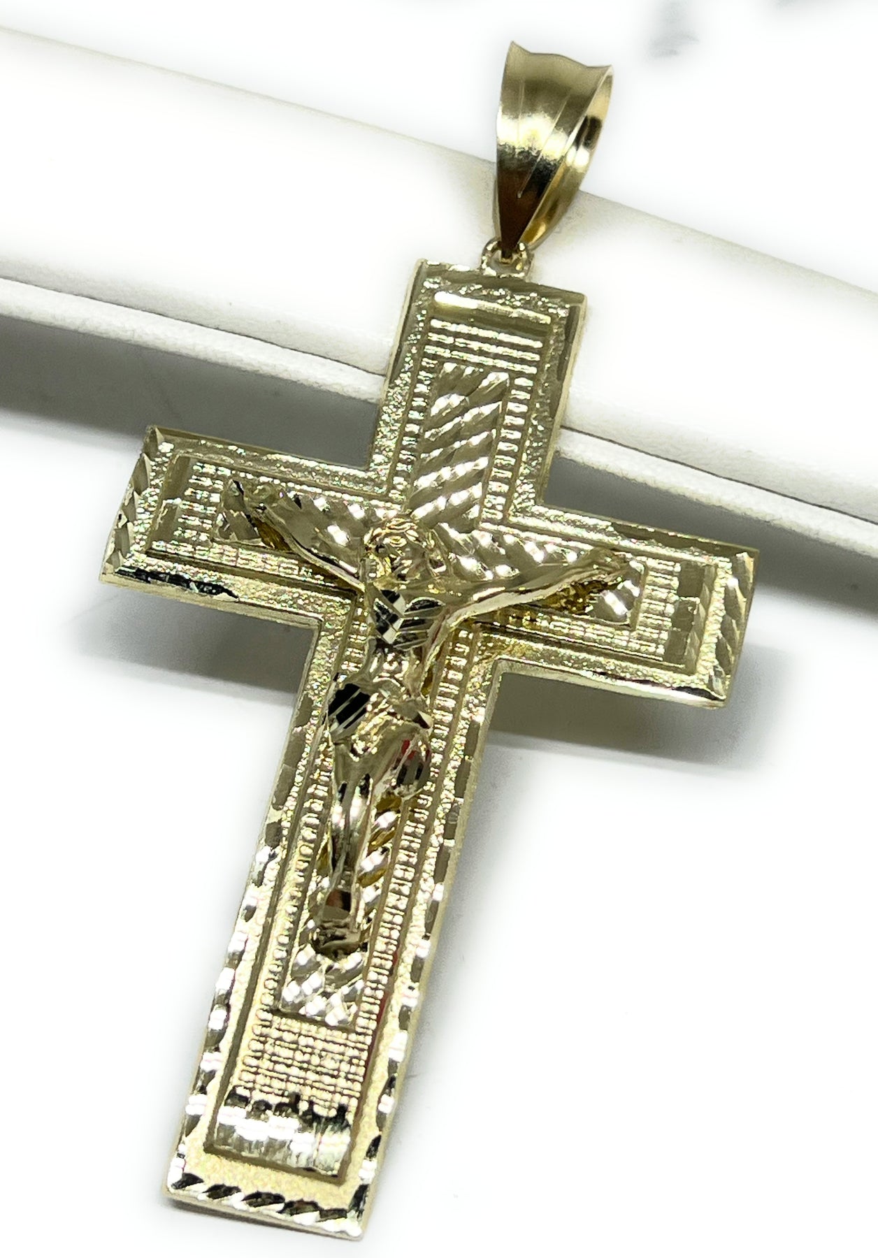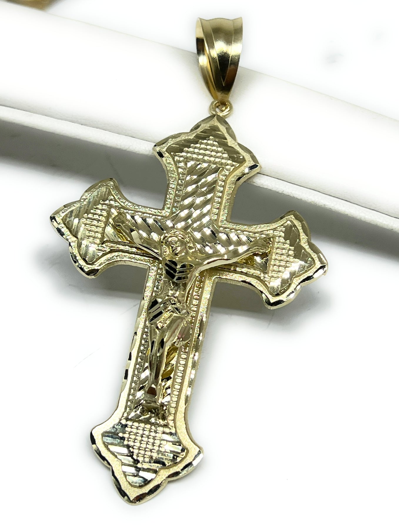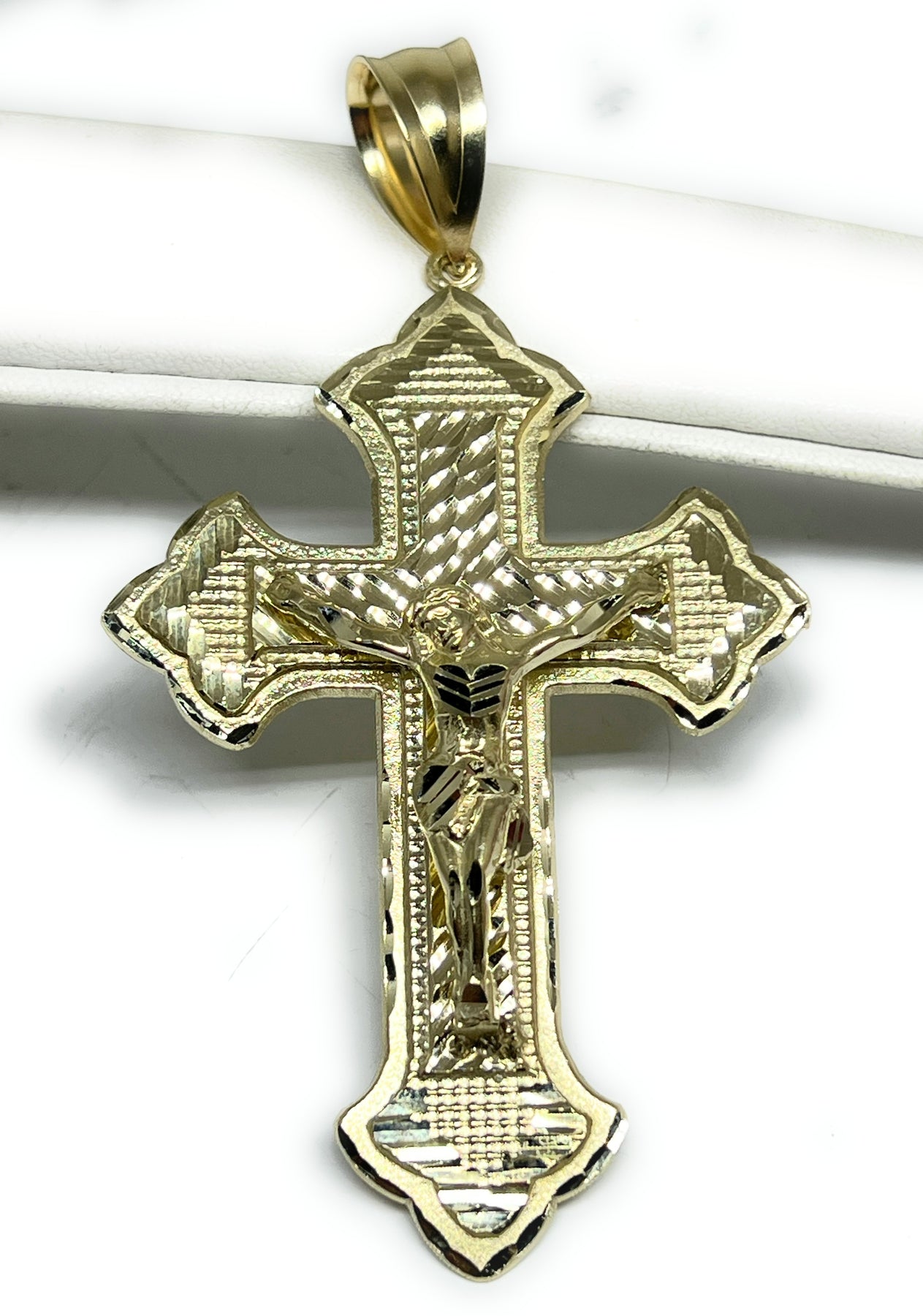 10k Solid Gold Yellow BIG XXL Jesus Cross Crucifix Pendant Necklace (13.7g)