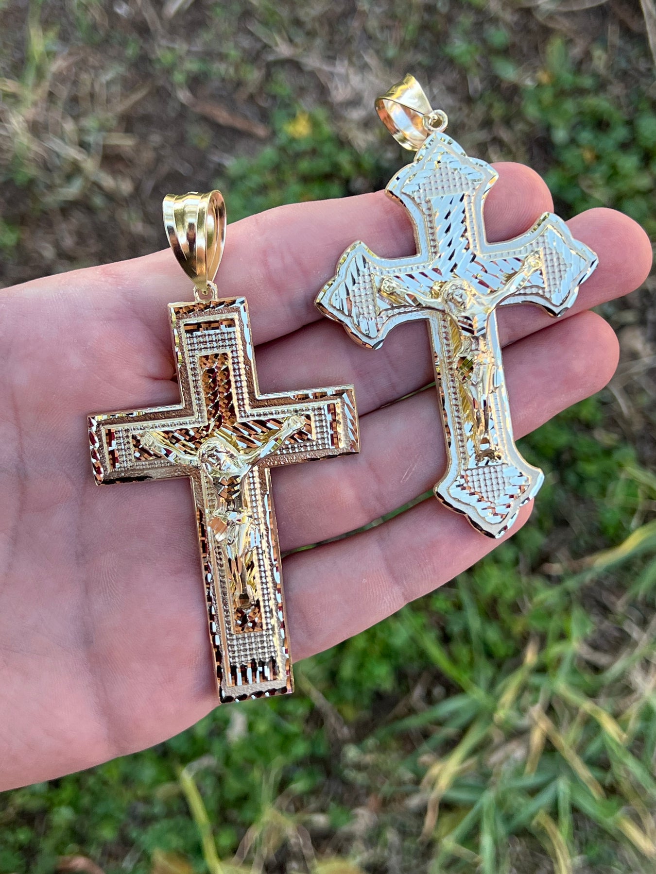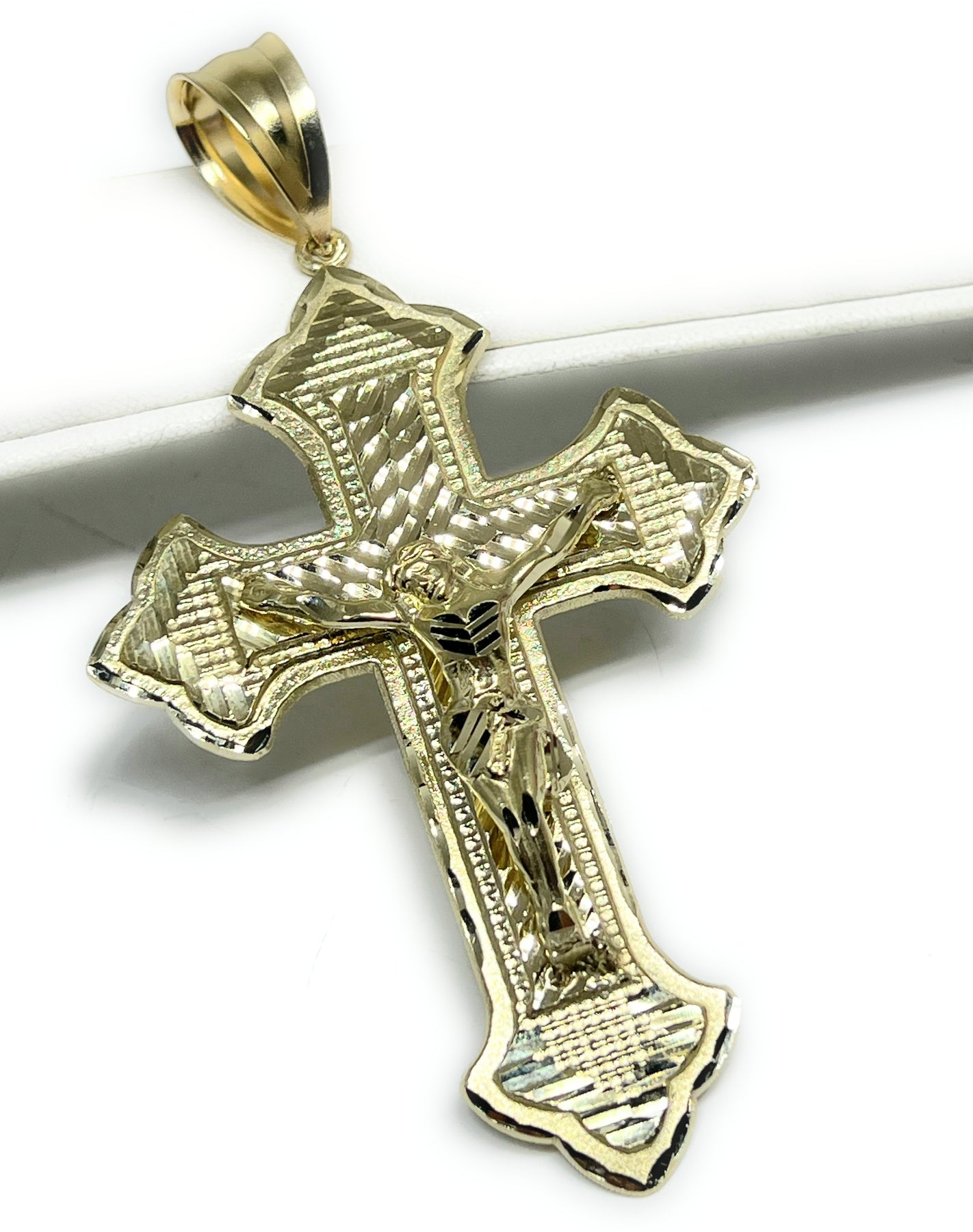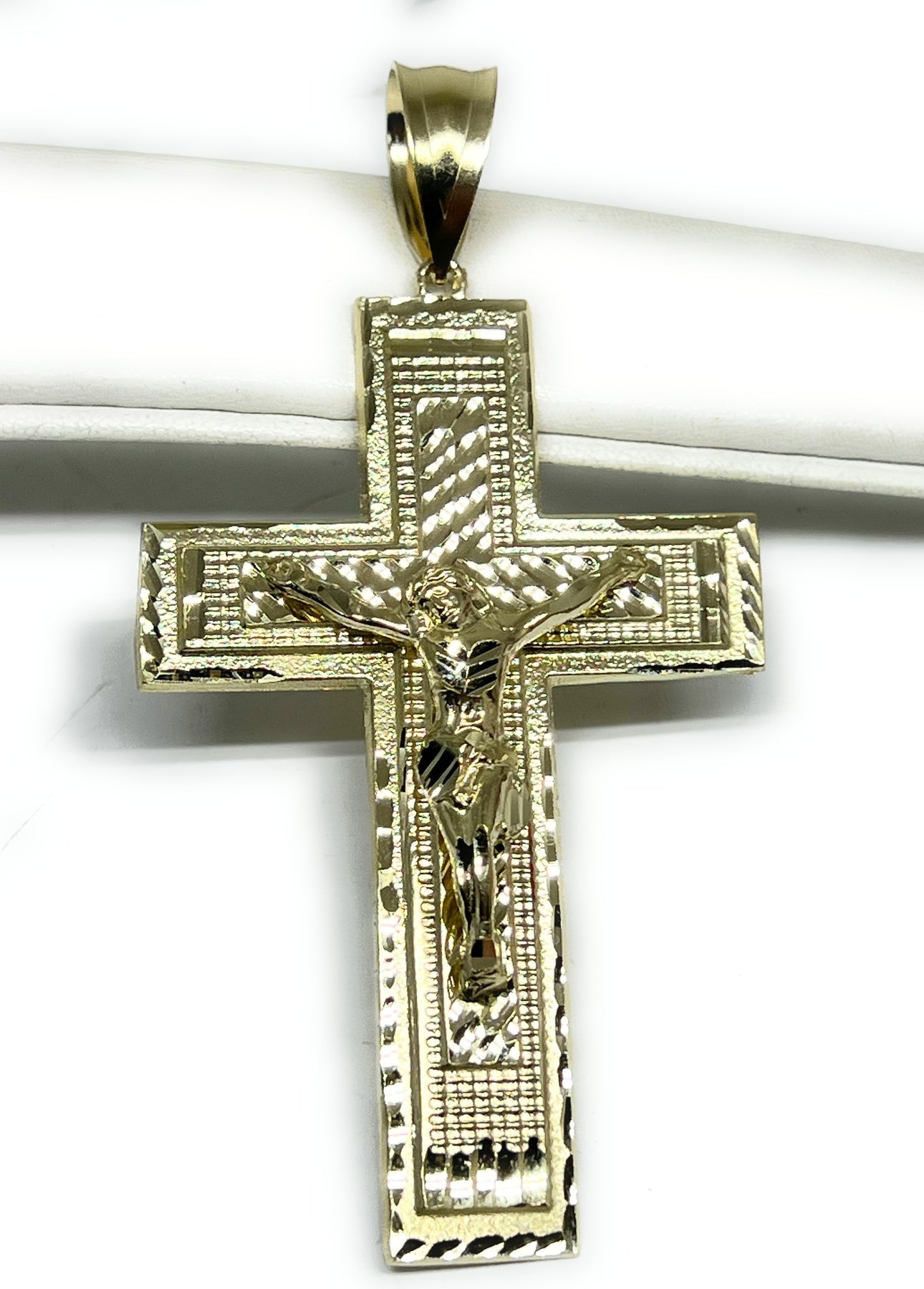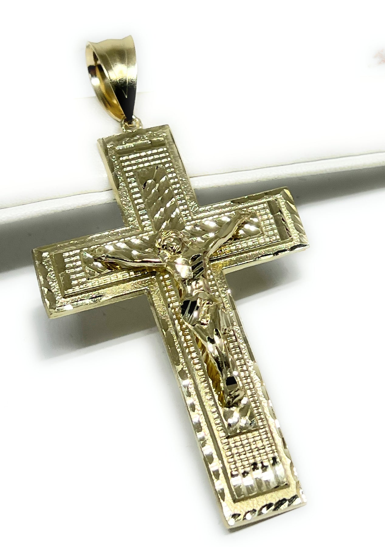 10k Solid Gold Yellow BIG XXL Jesus Cross Crucifix Pendant Necklace (13.7g)