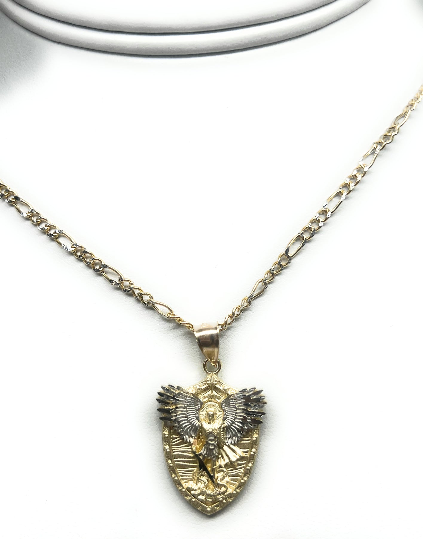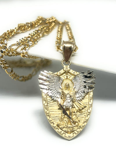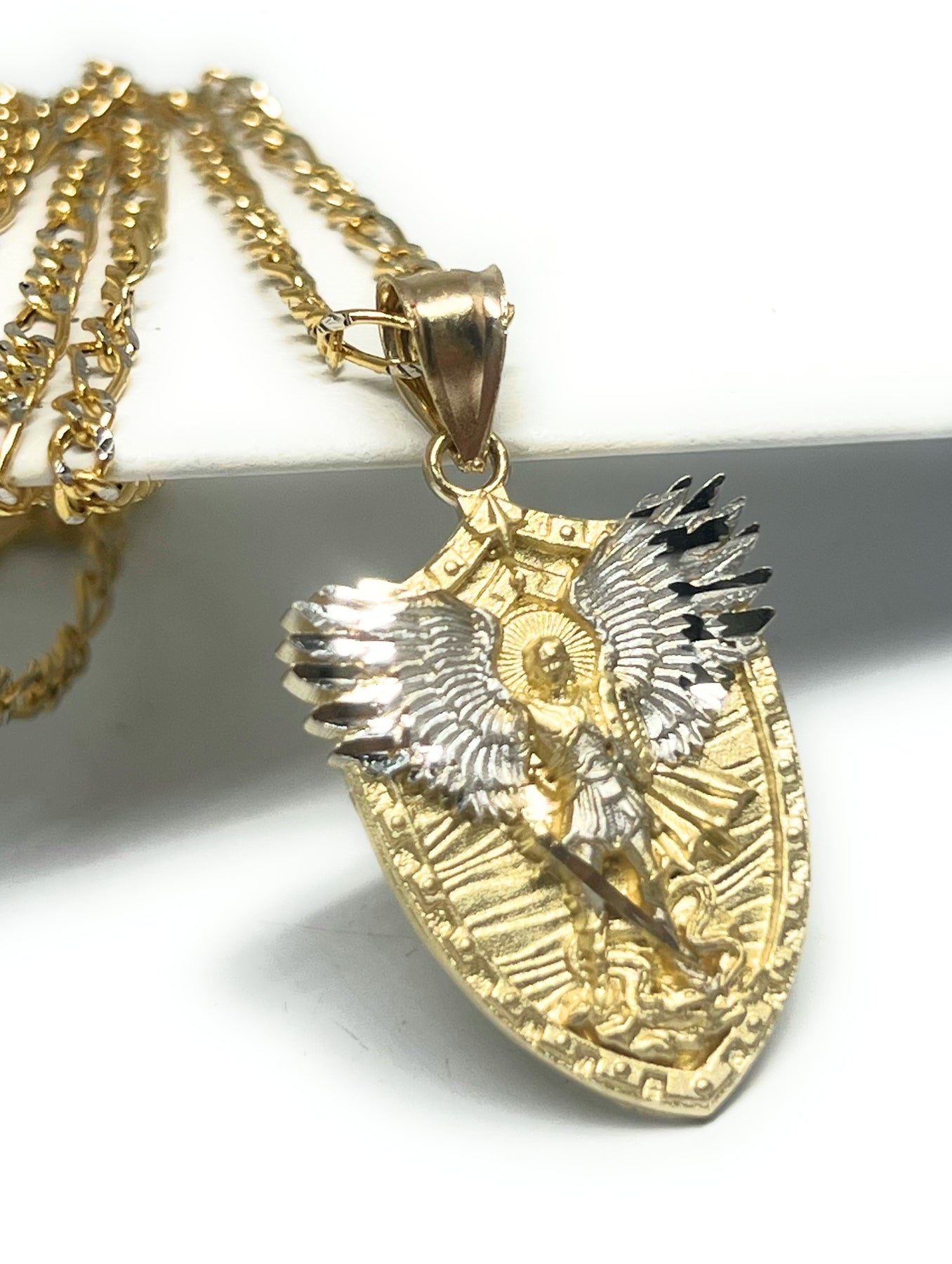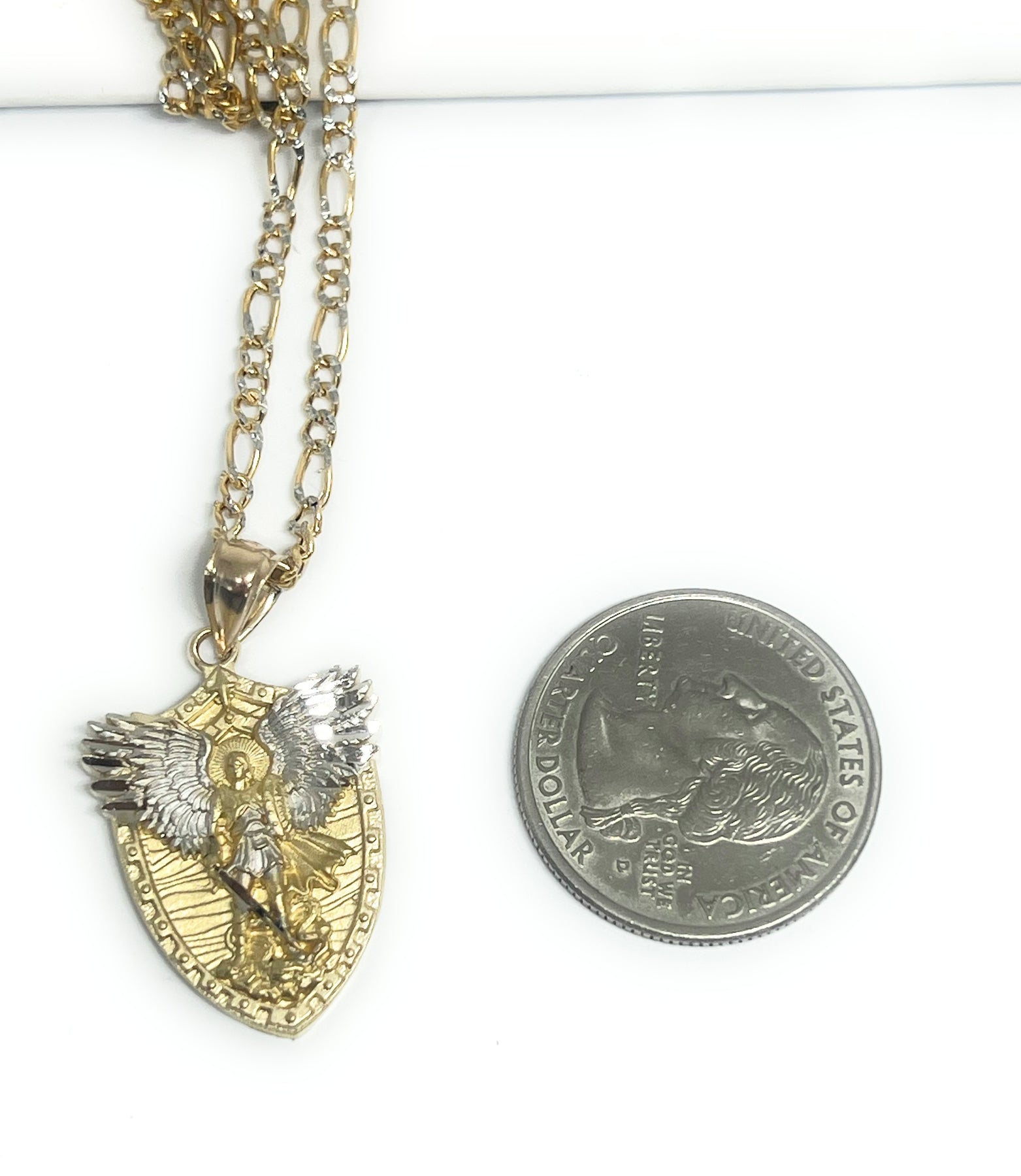 10k Solid Gold 2-Tone St. Michael Archangel 3D SHIELD Pendant Necklace (MED, LG)