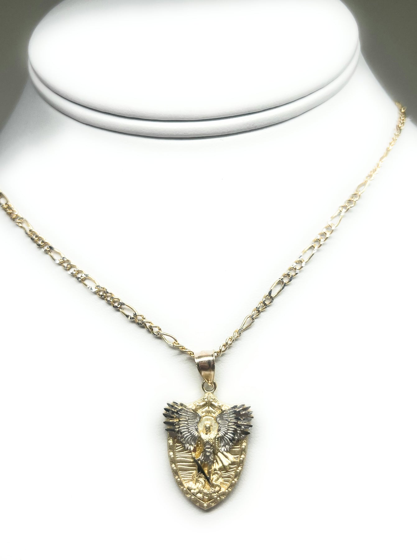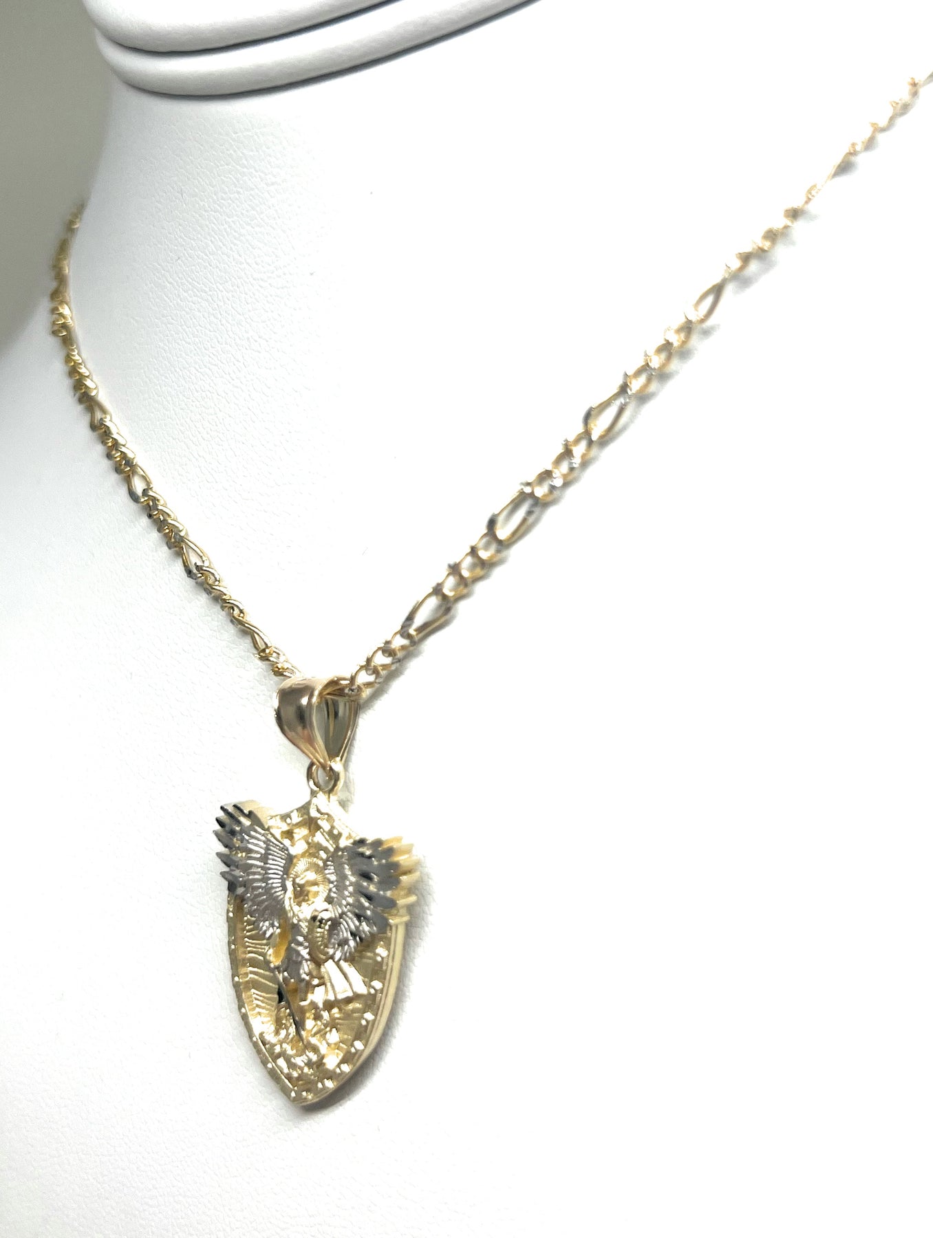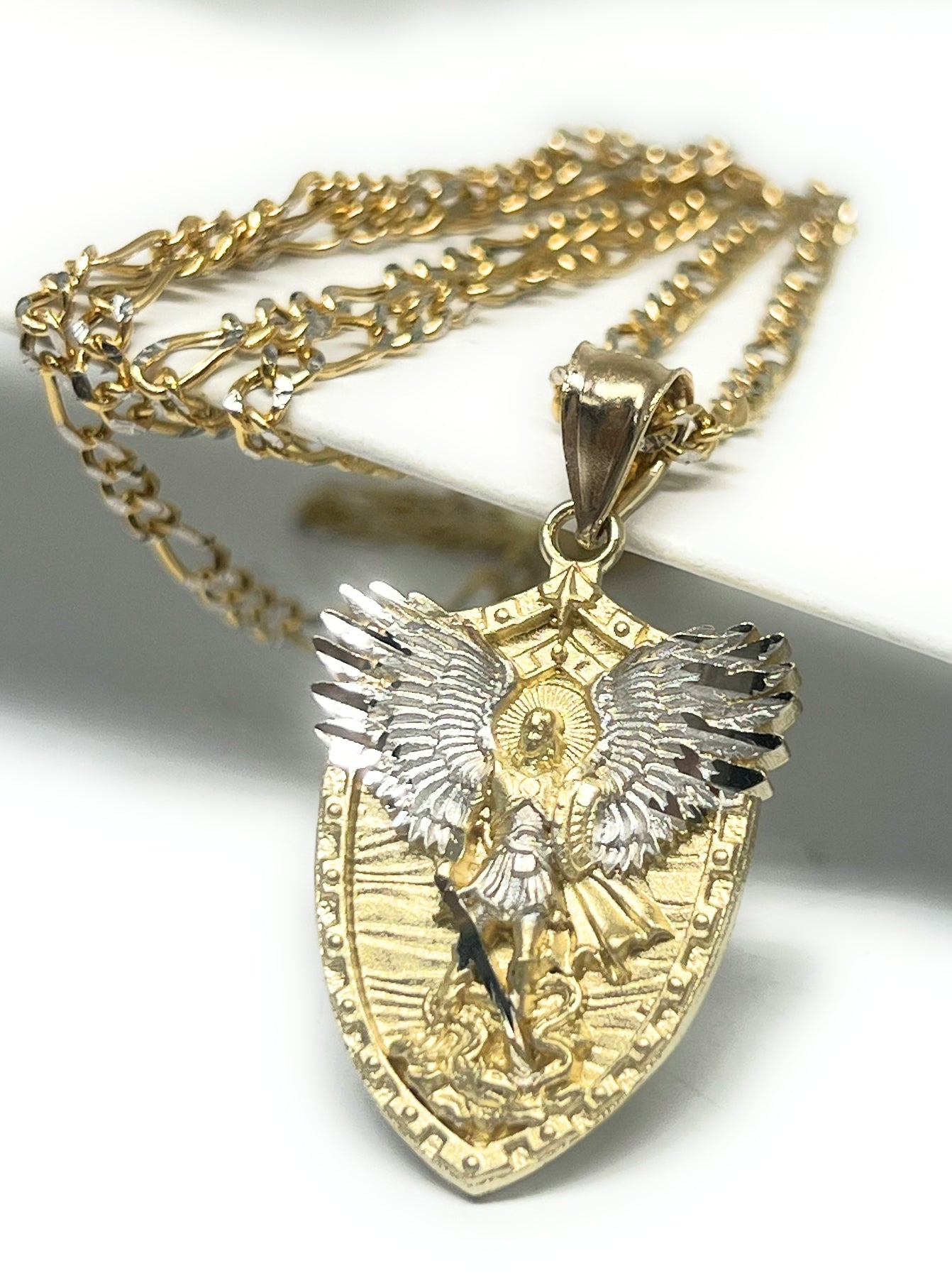 10k Solid Gold 2-Tone St. Michael Archangel 3D SHIELD Pendant Necklace (MED, LG)