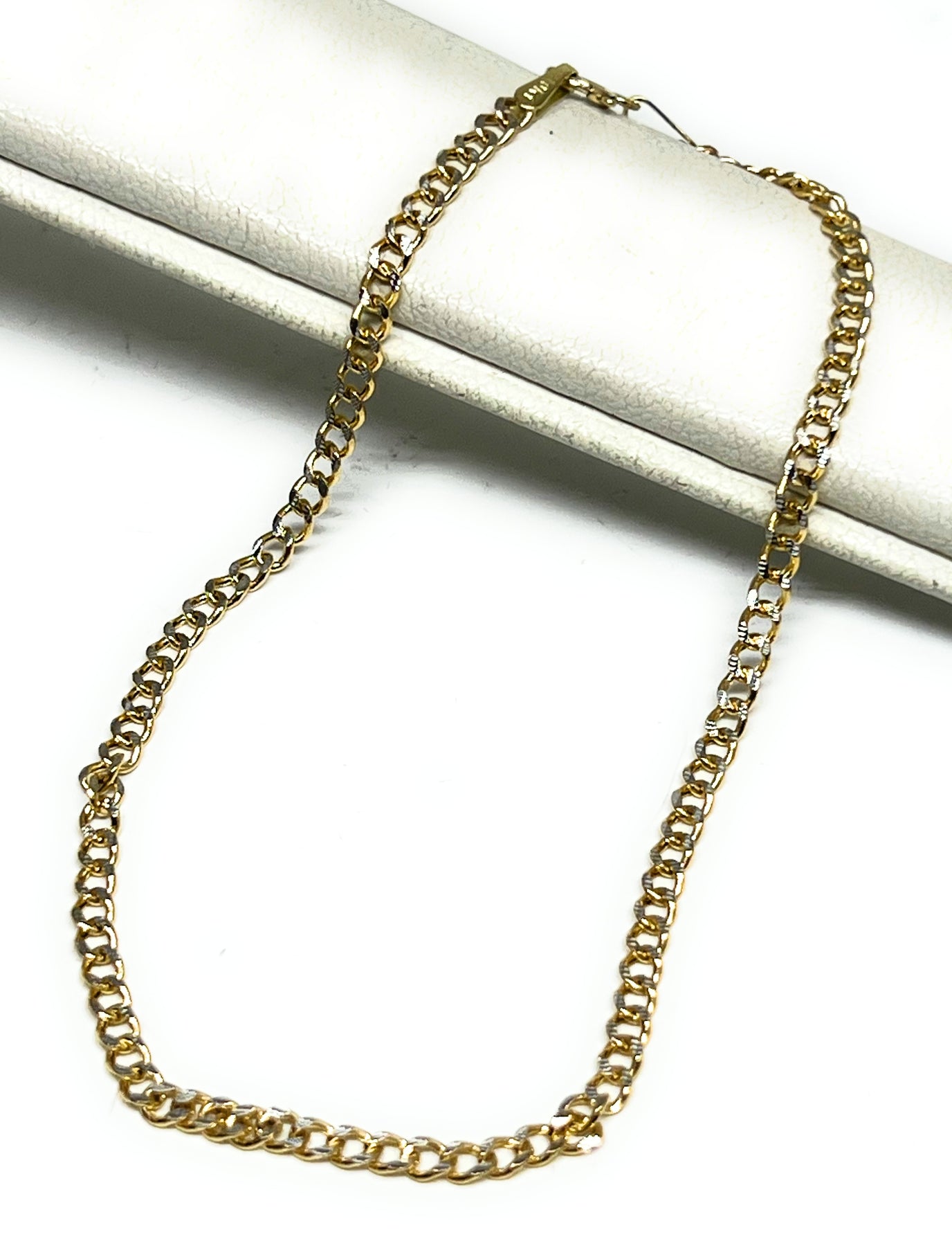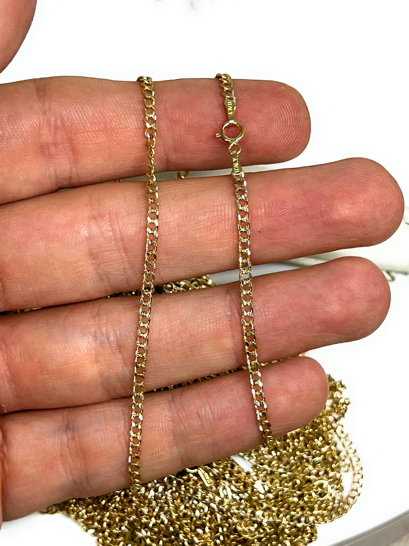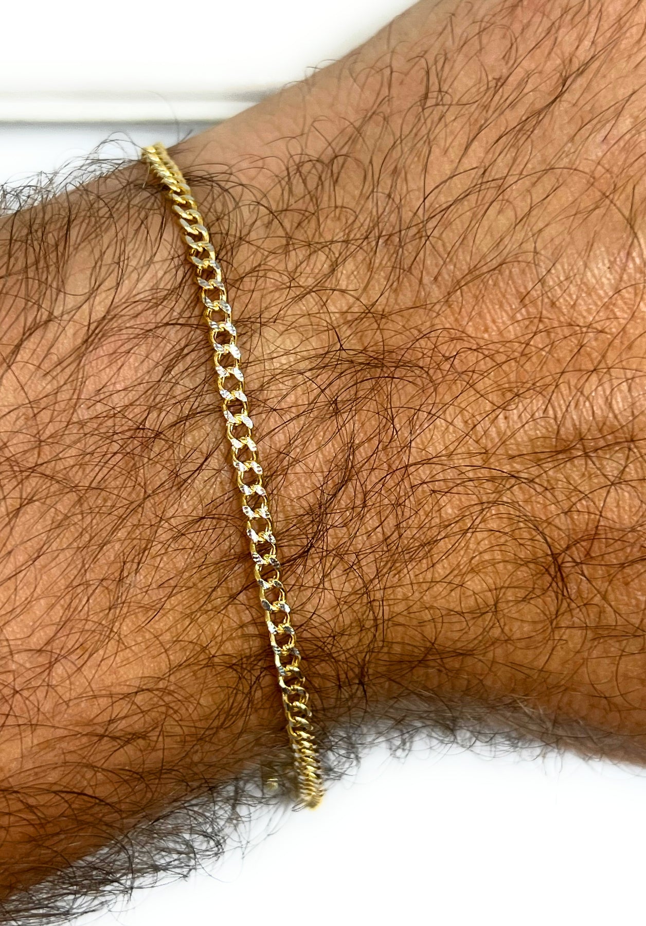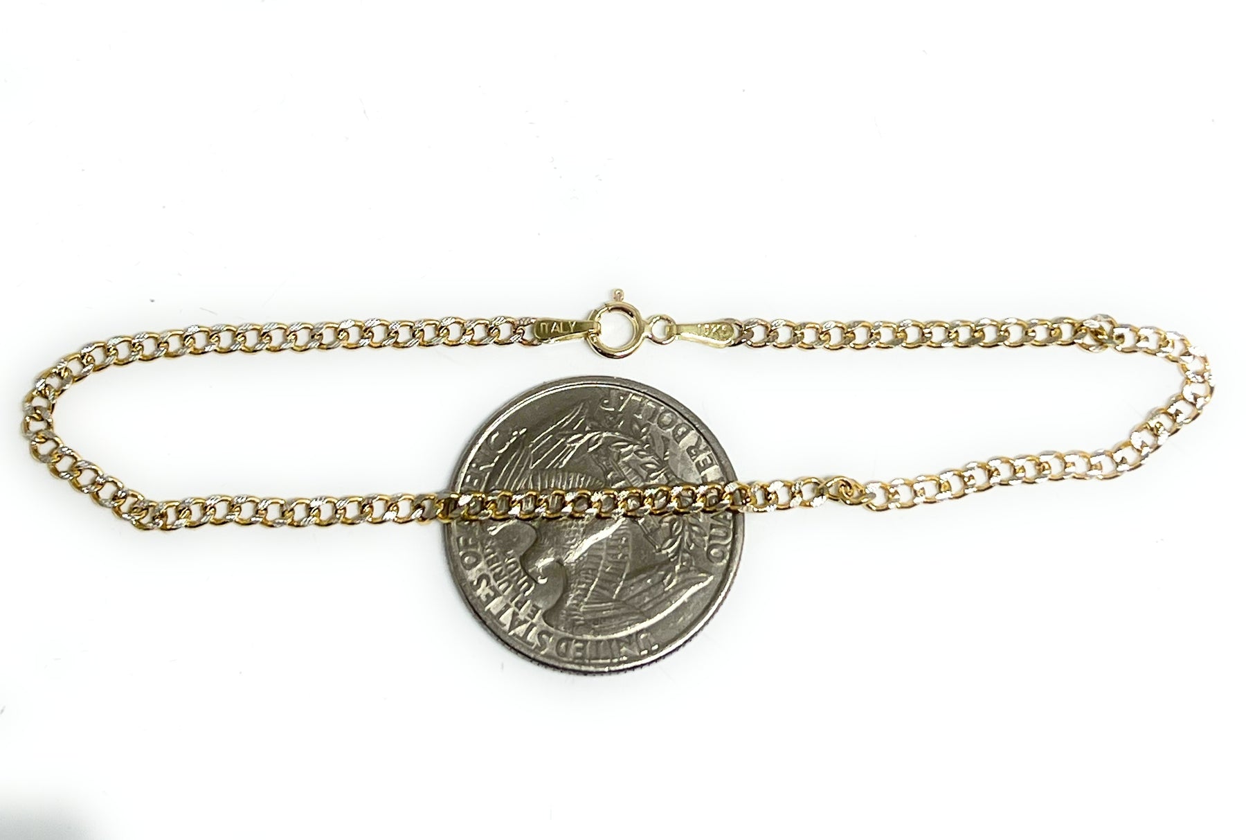 10k Solid Gold Yellow Cuban CURB Link Diamond Cut (White Gold) Brracelet 7-8 inch 2.5mm Width (SEMI-HOLLOW STYLE)