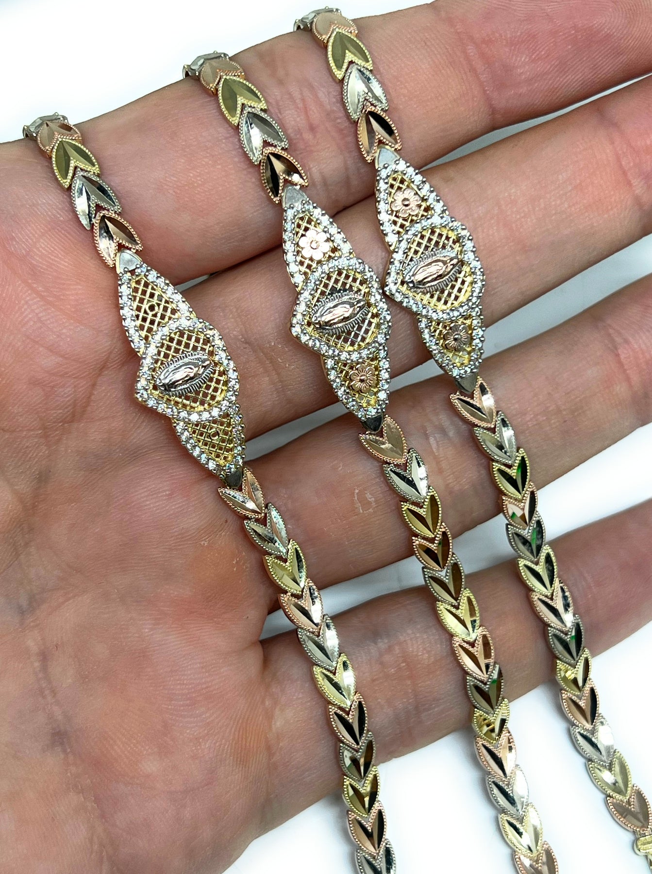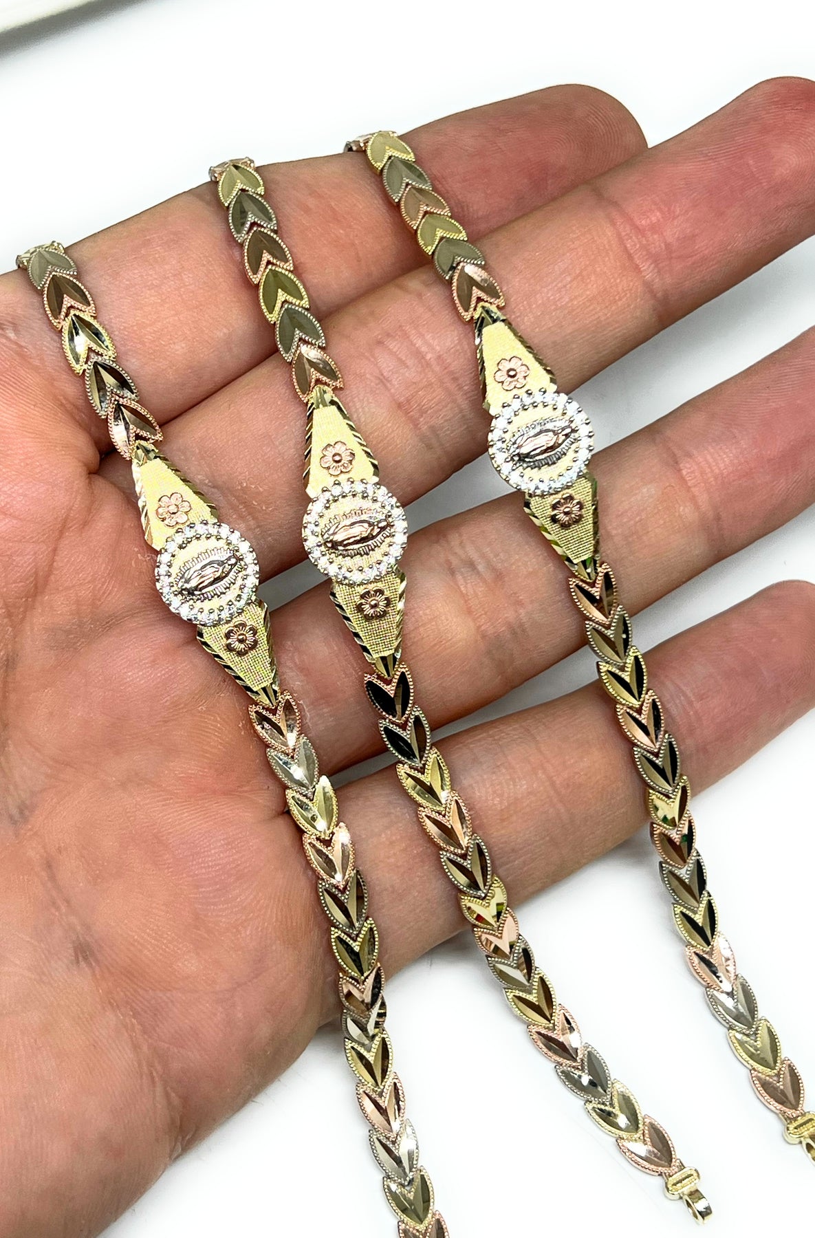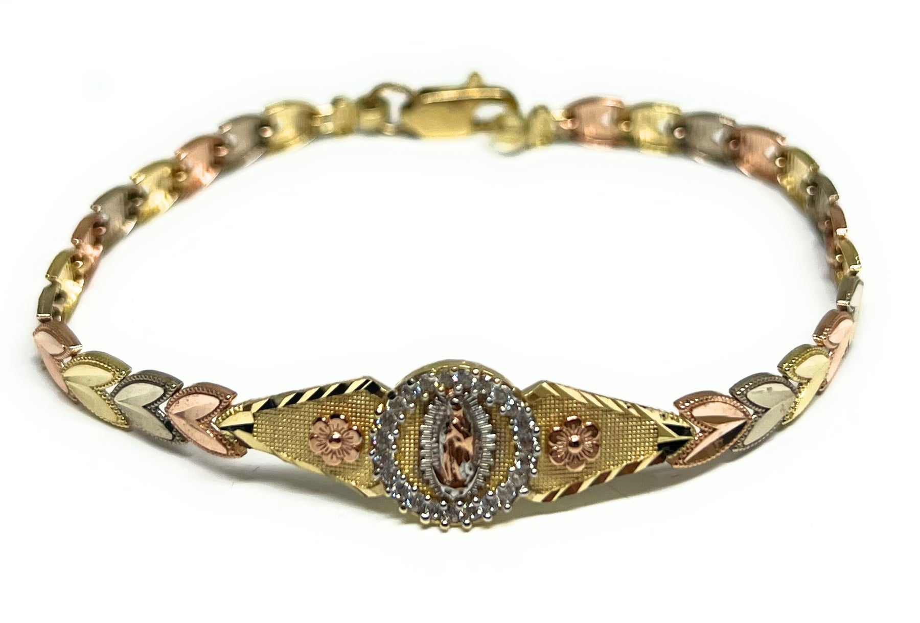 14k Solid Gold Tri-Color Virrgin Mary Brracelet 7.25 inch Virrgen Guadalupe