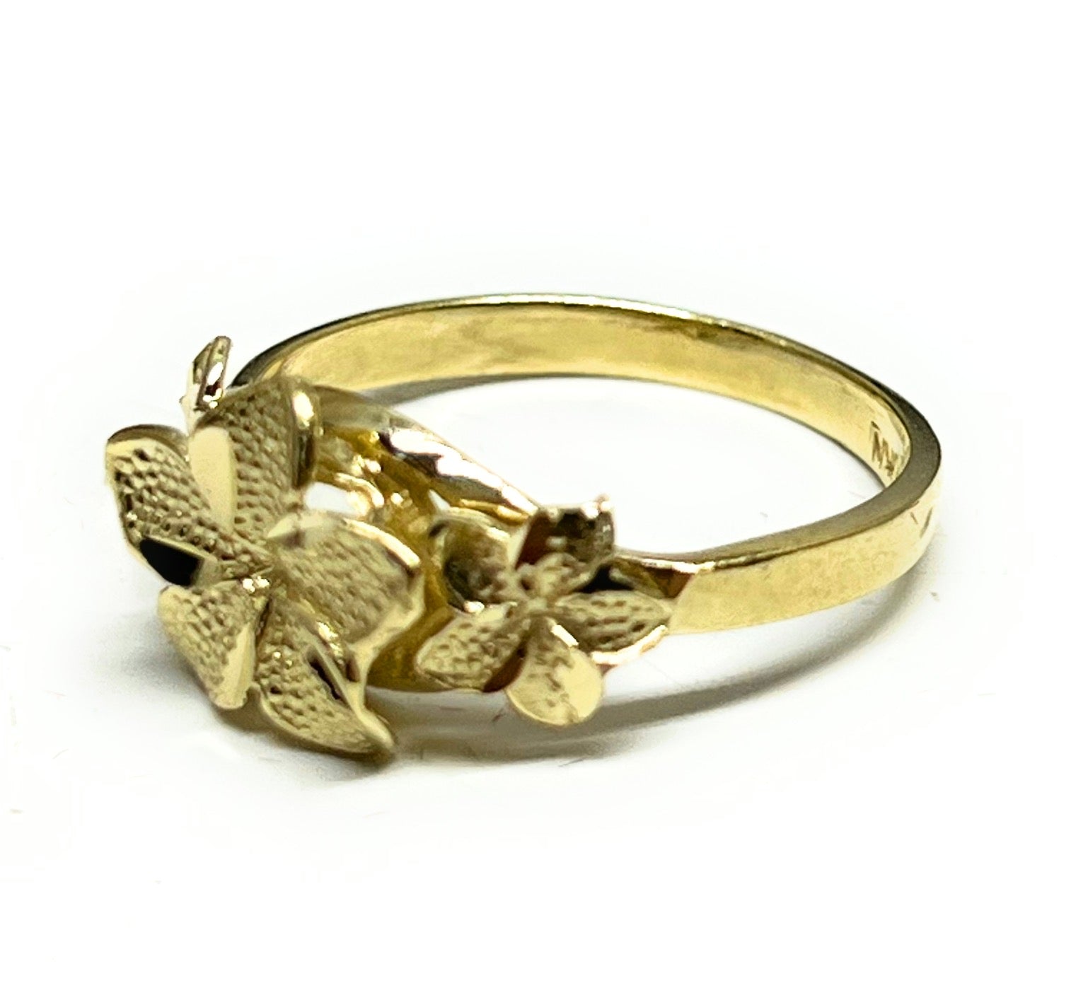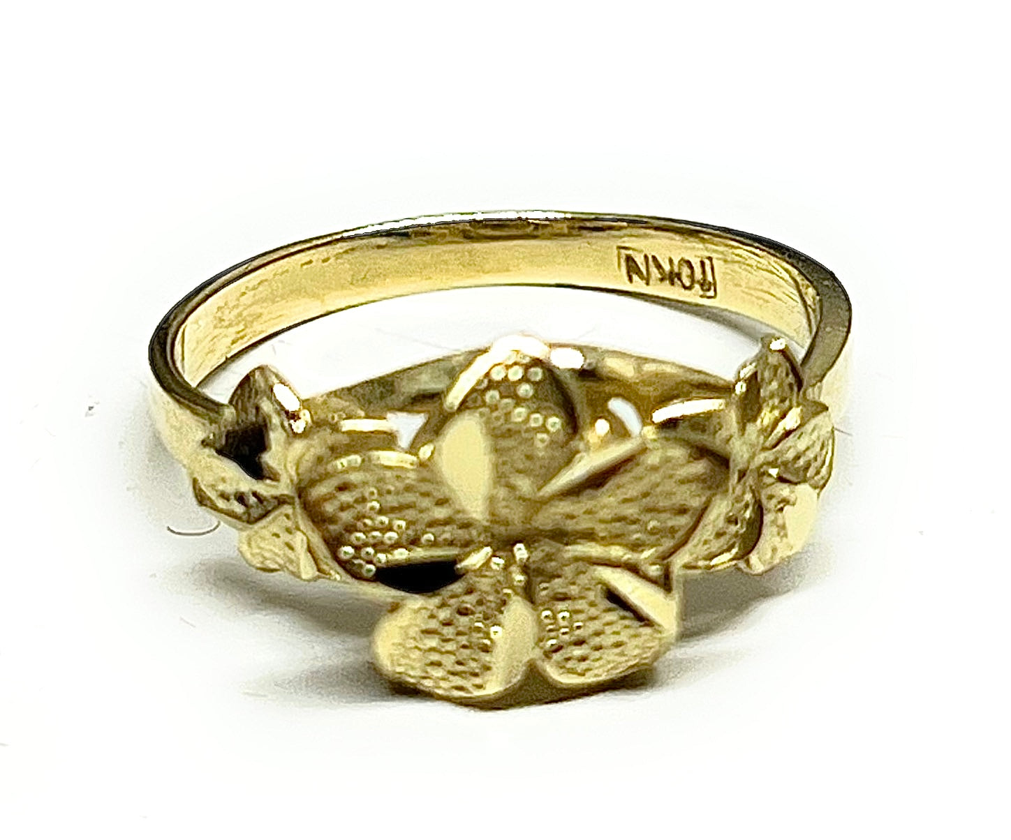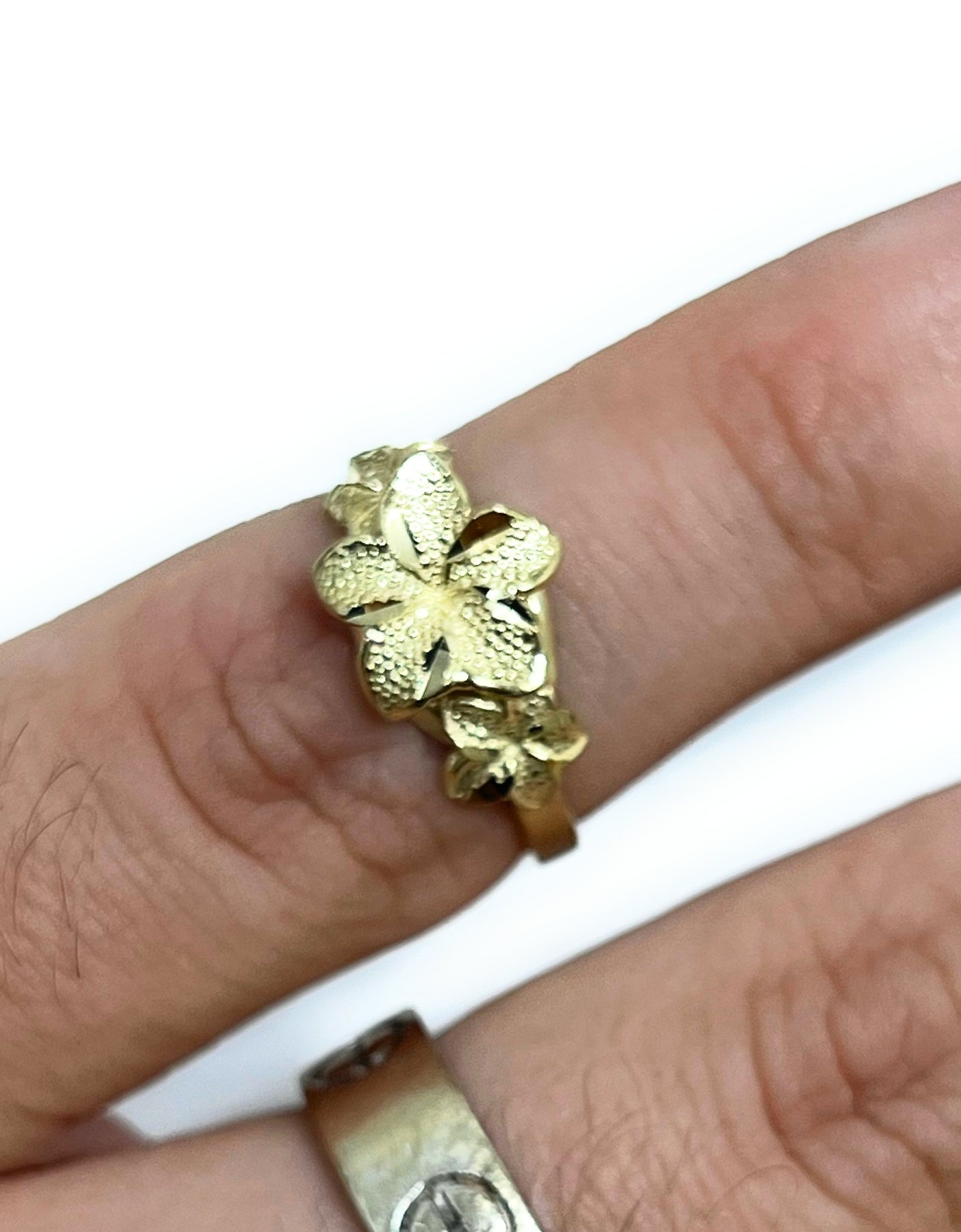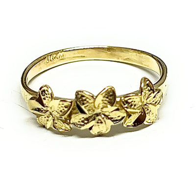 10k Solid Gold Yellow Three PLUMERIA Flower Ring