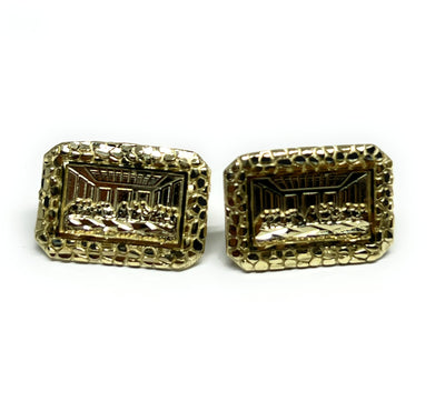 10k Solid Gold Last Supper Square Nugget Stud Earrings
