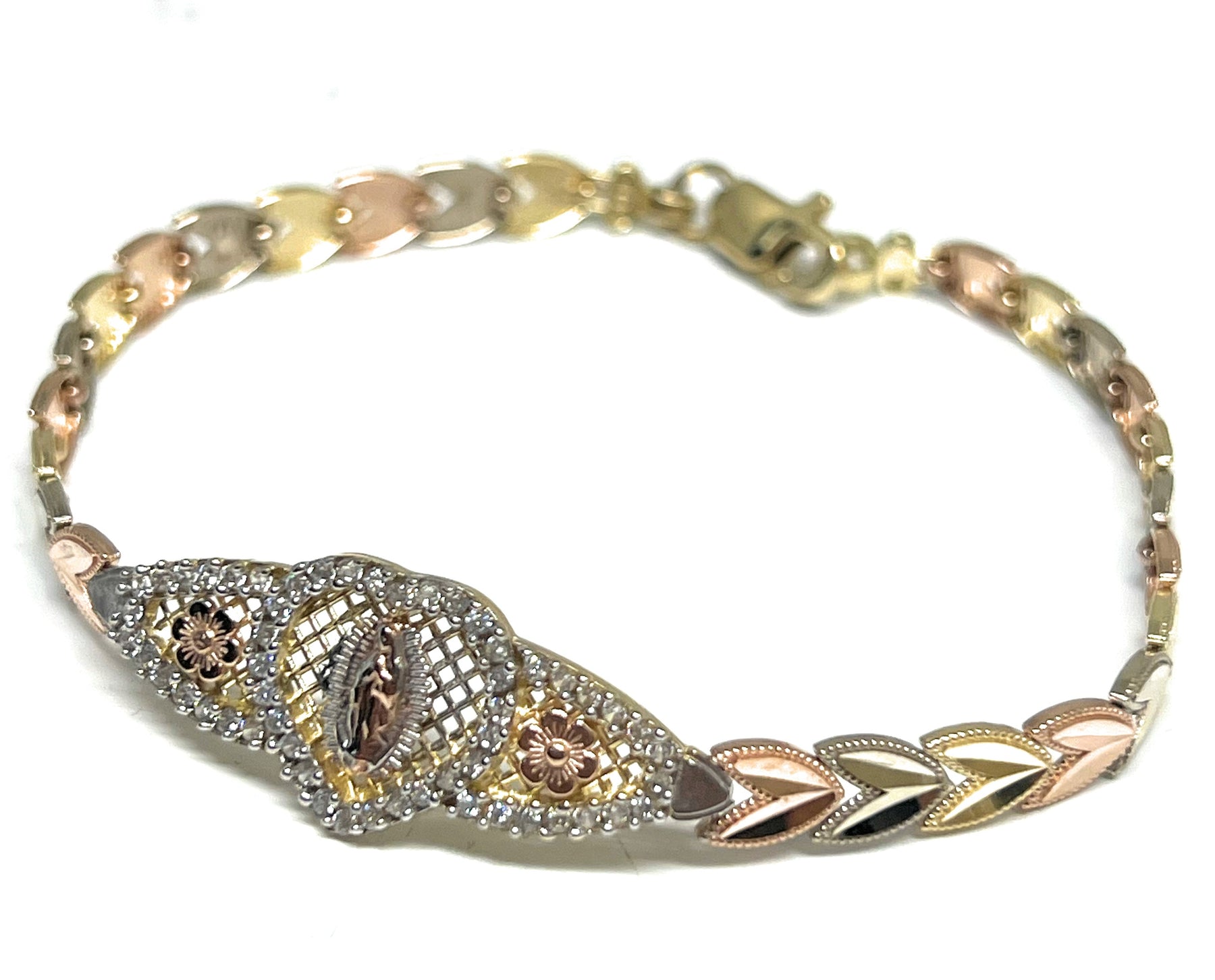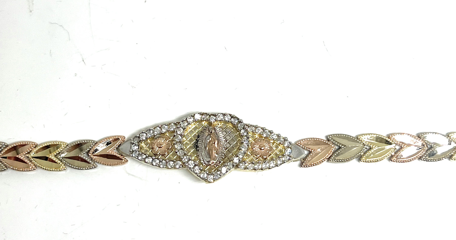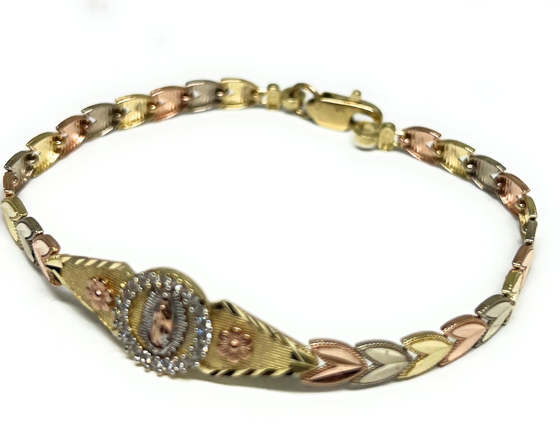 10k Solid Gold Tri-Color Virrgin Mary Brracelet 7.25 inch Virrgen Guadalupe