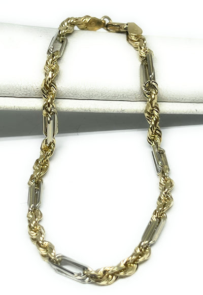 14k Solid Gold 2-Tone Milano Rope "FIGAROPE" BRRACELET 7-8 inch 3mm (FULL SOLID STYLE) (6g)