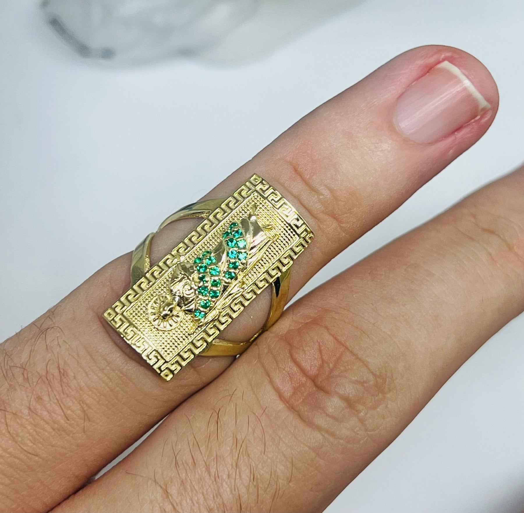 10k Solid Gold SAAN JUDAS SAAINT JUDE GREEK BORDER GREEN CZ Ring (4.4g)