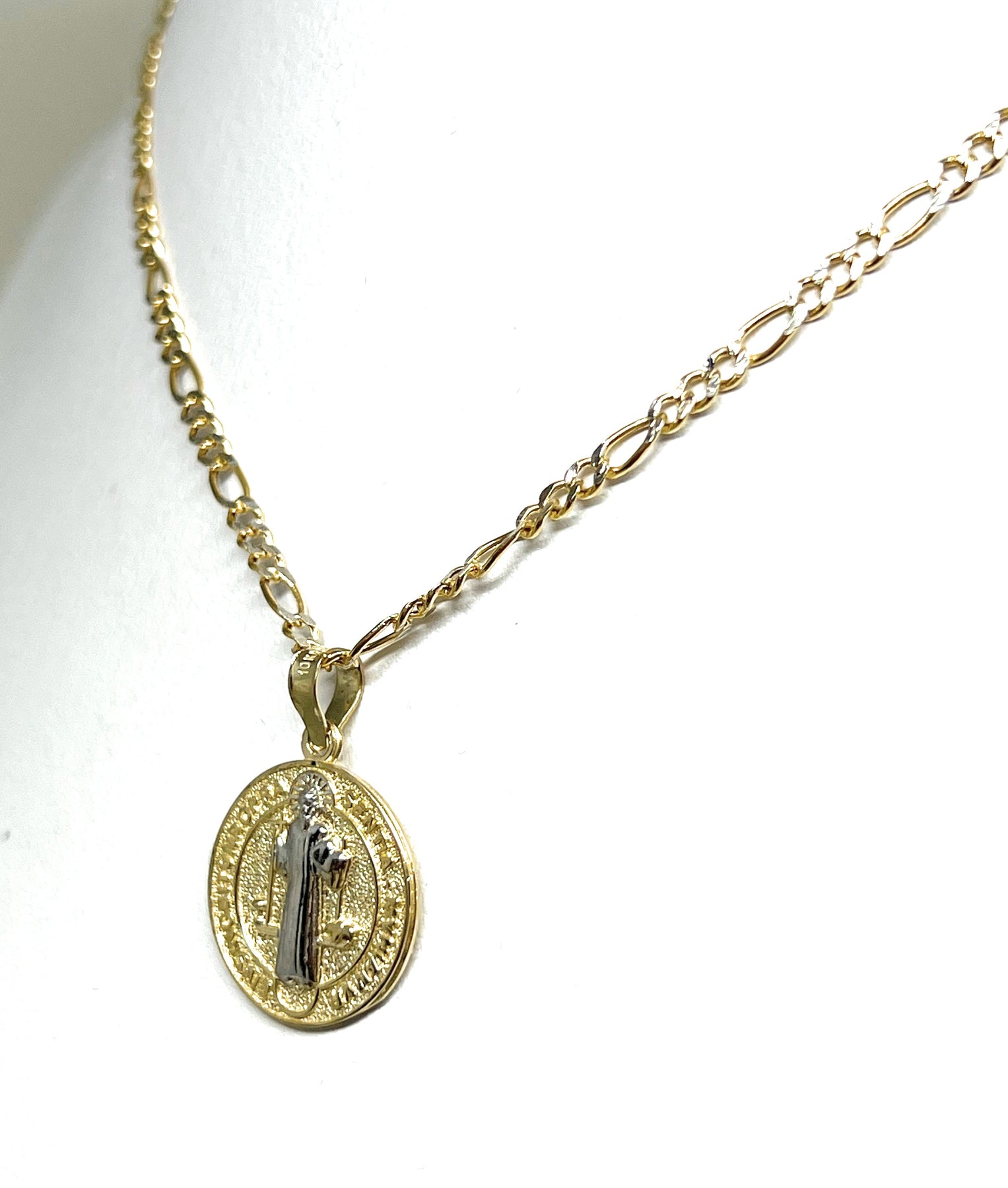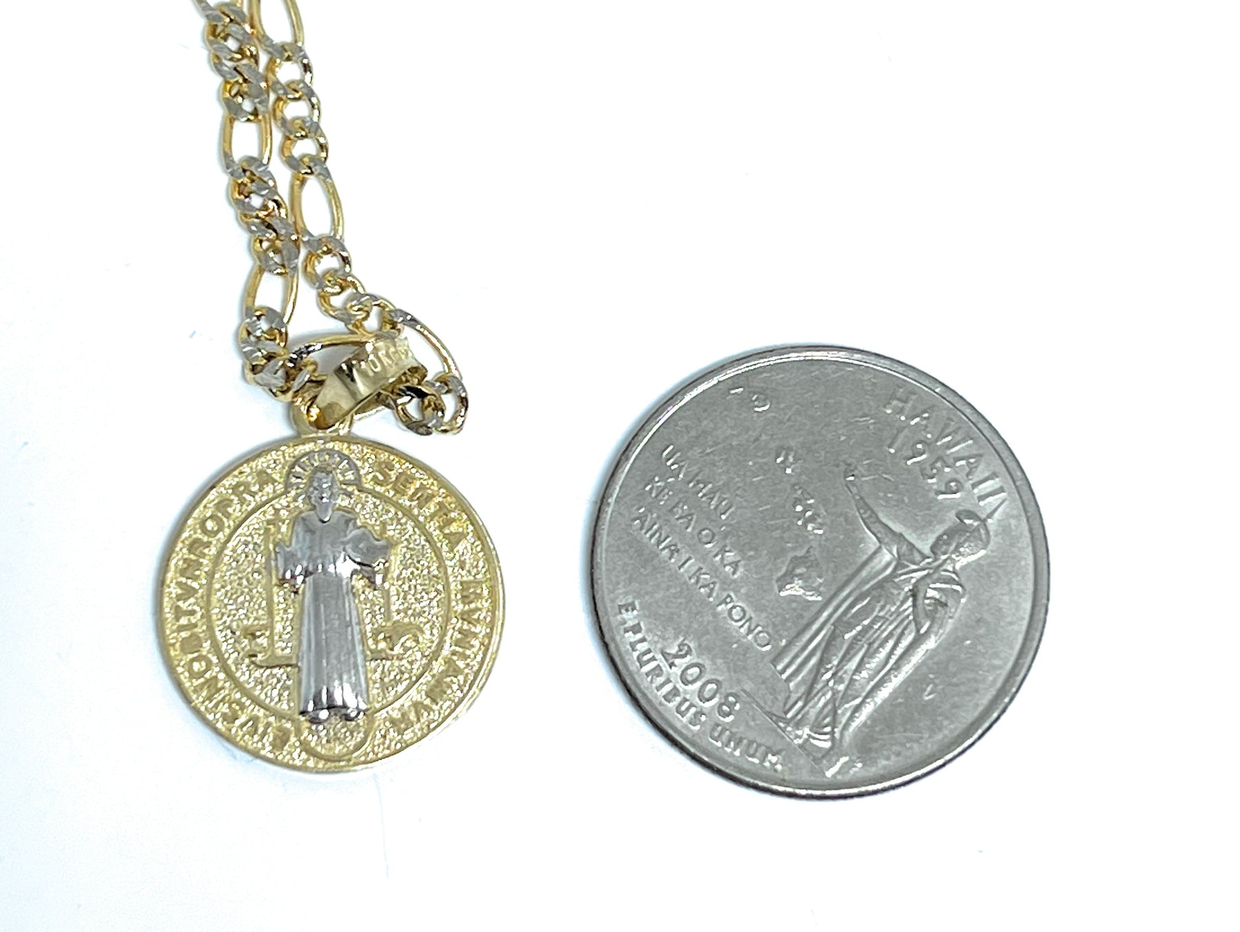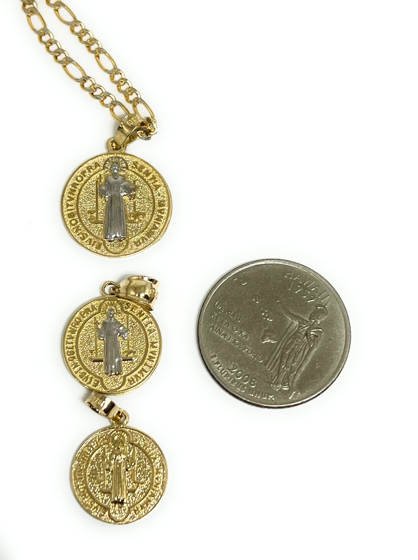 10k Solid Gold Yellow 2-Tone San Bennito Pendant Necklace (SM,XS)