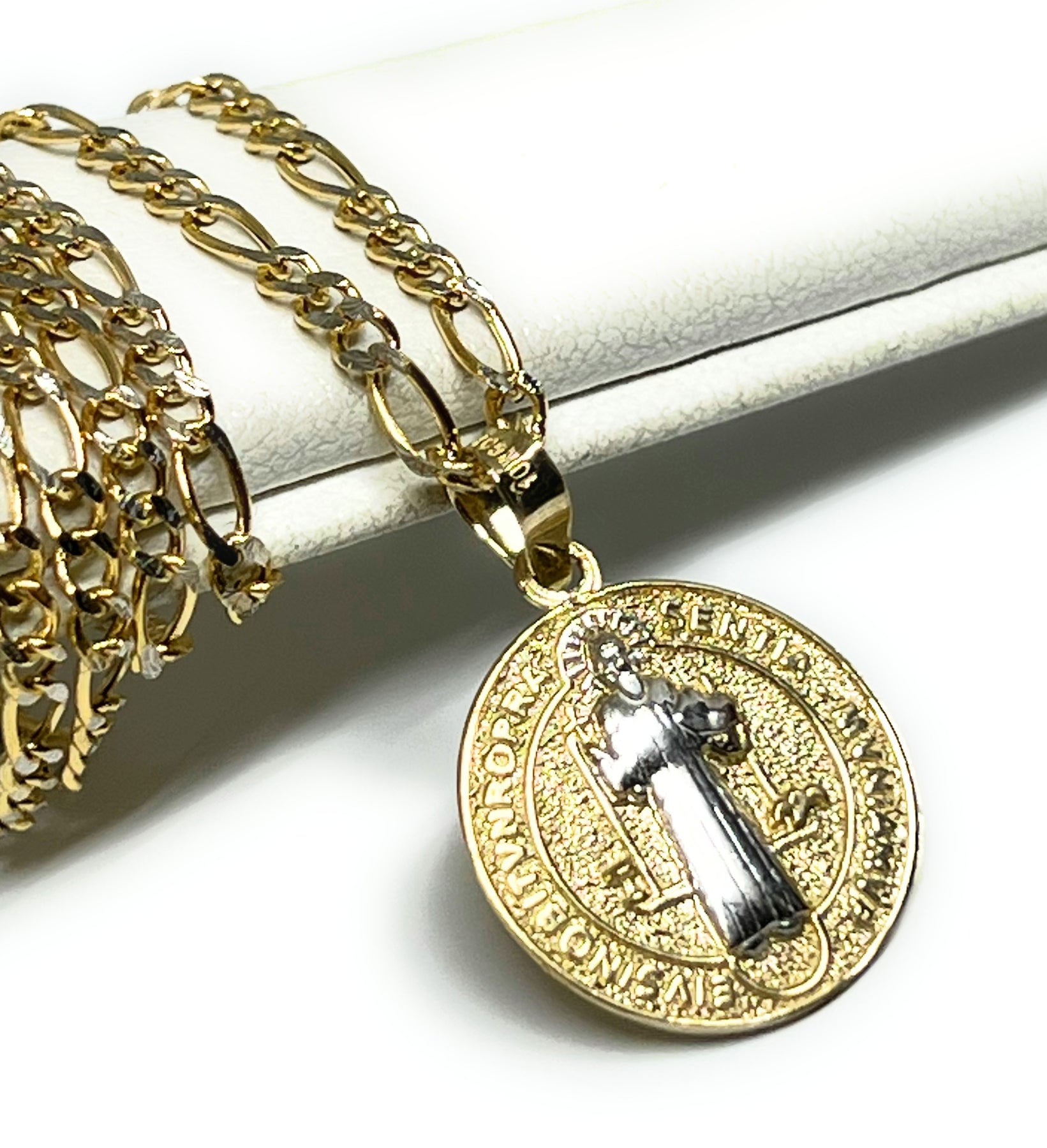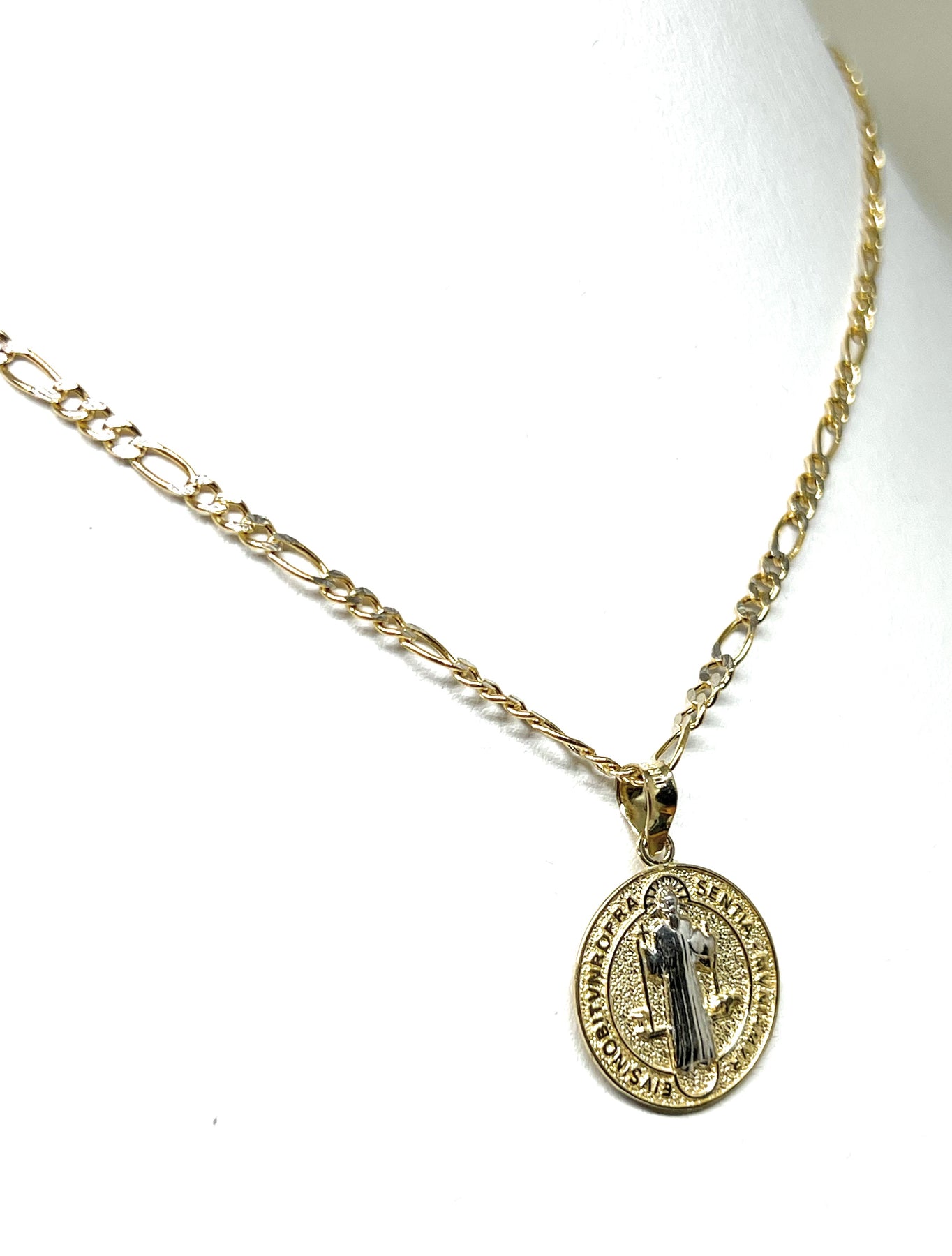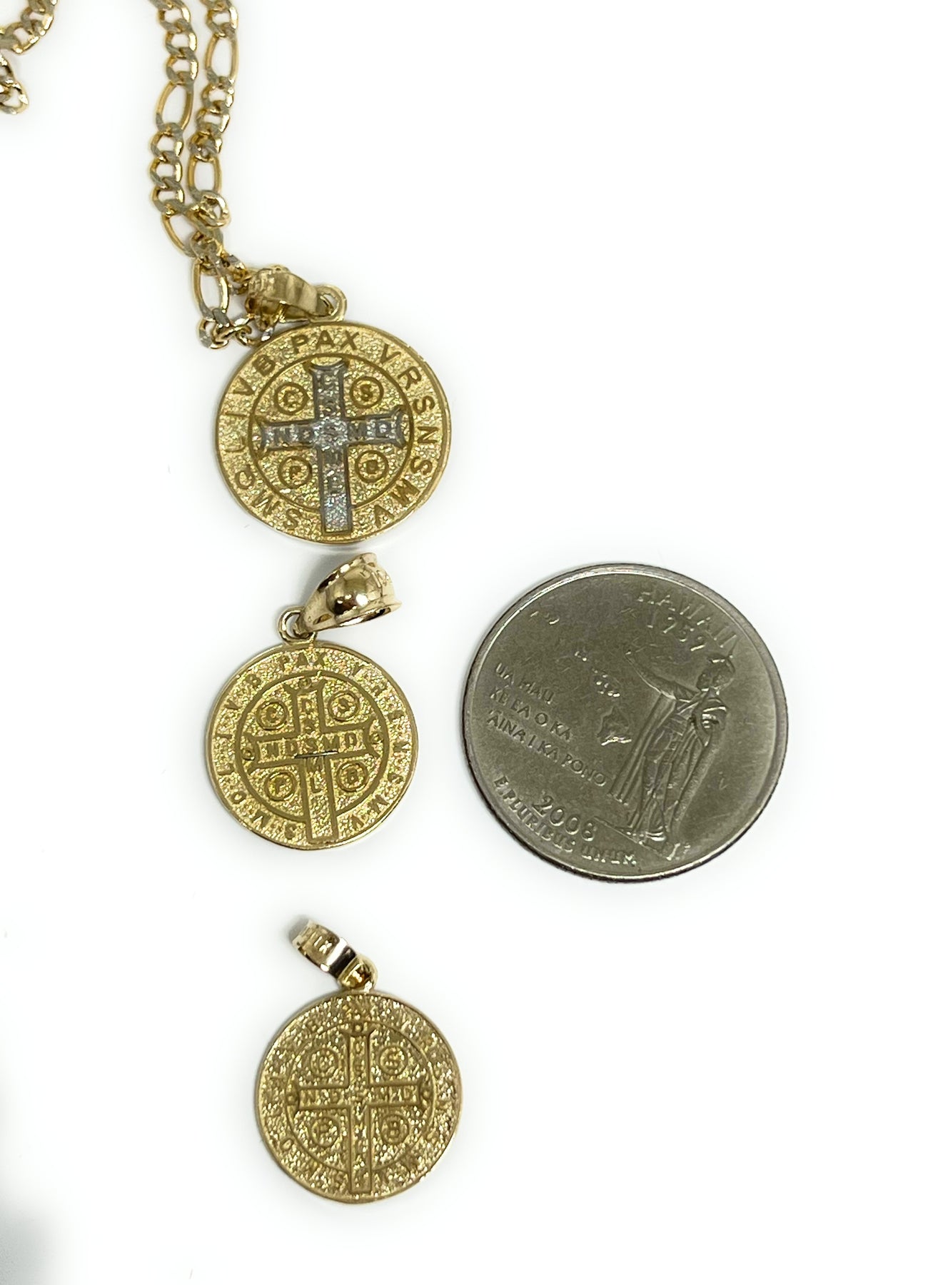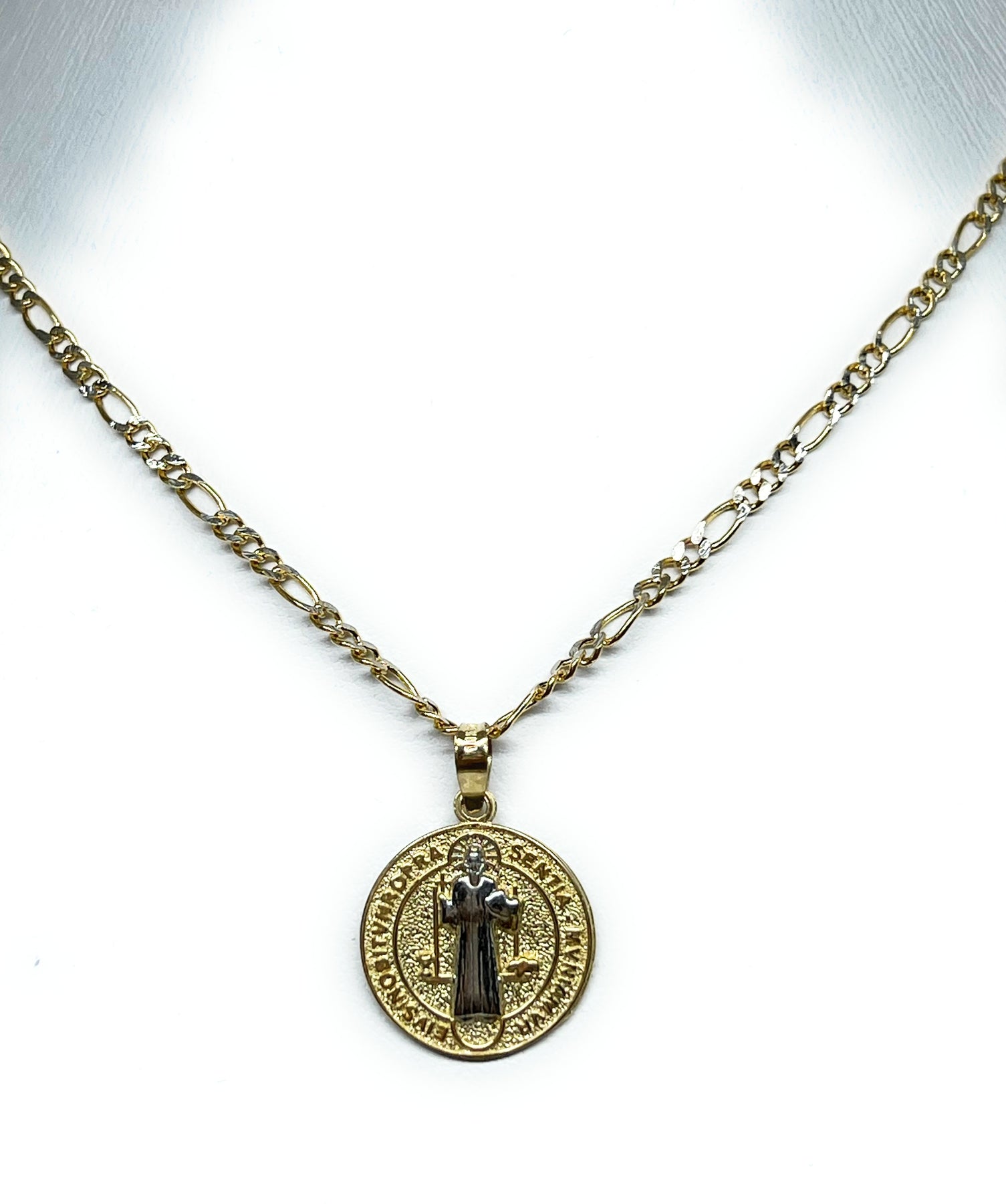 10k Solid Gold Yellow 2-Tone San Bennito Pendant Necklace (SM,XS)