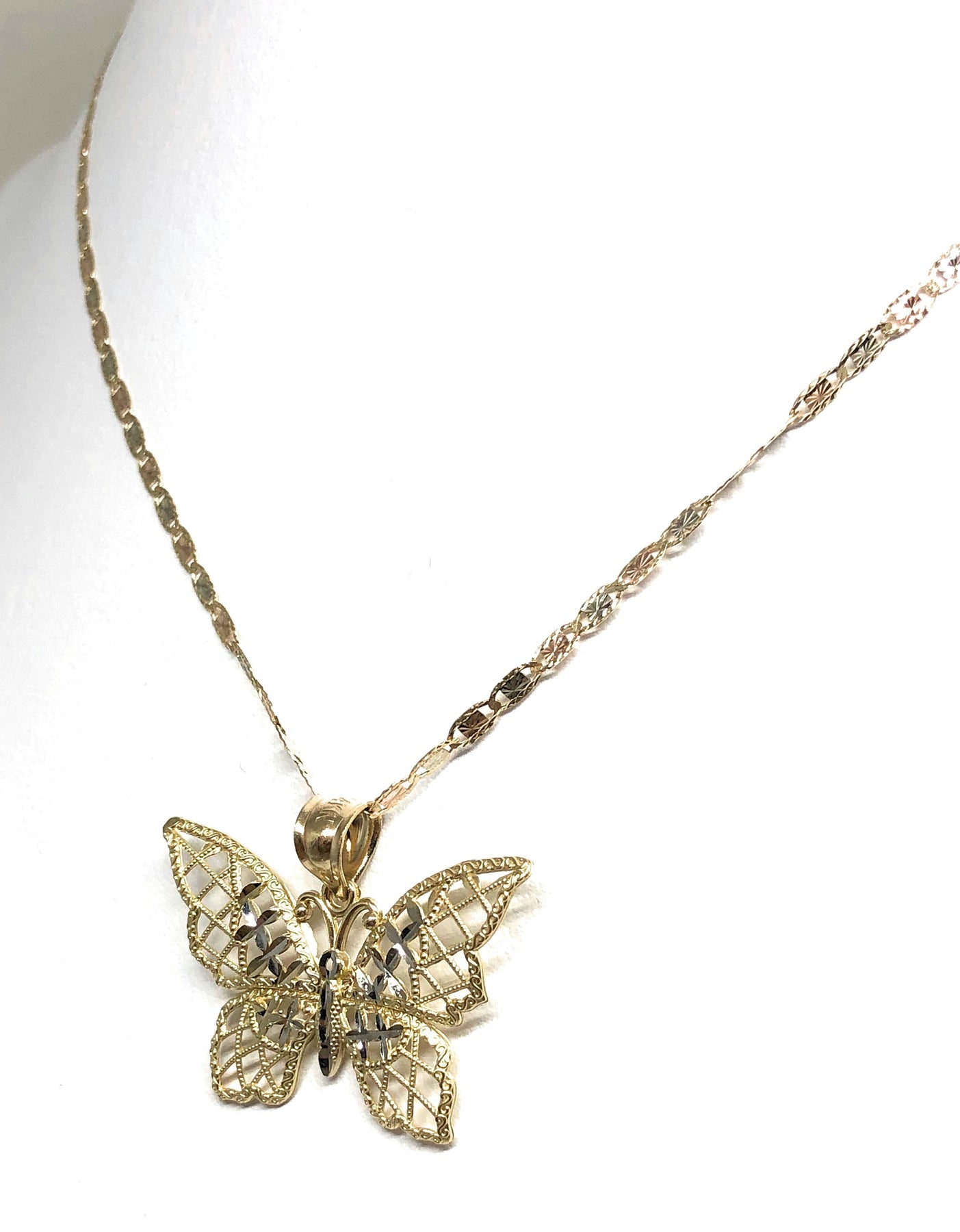 10k Solid Gold Butterfly Pendant Necklace Valentina Chain (SM, MED)