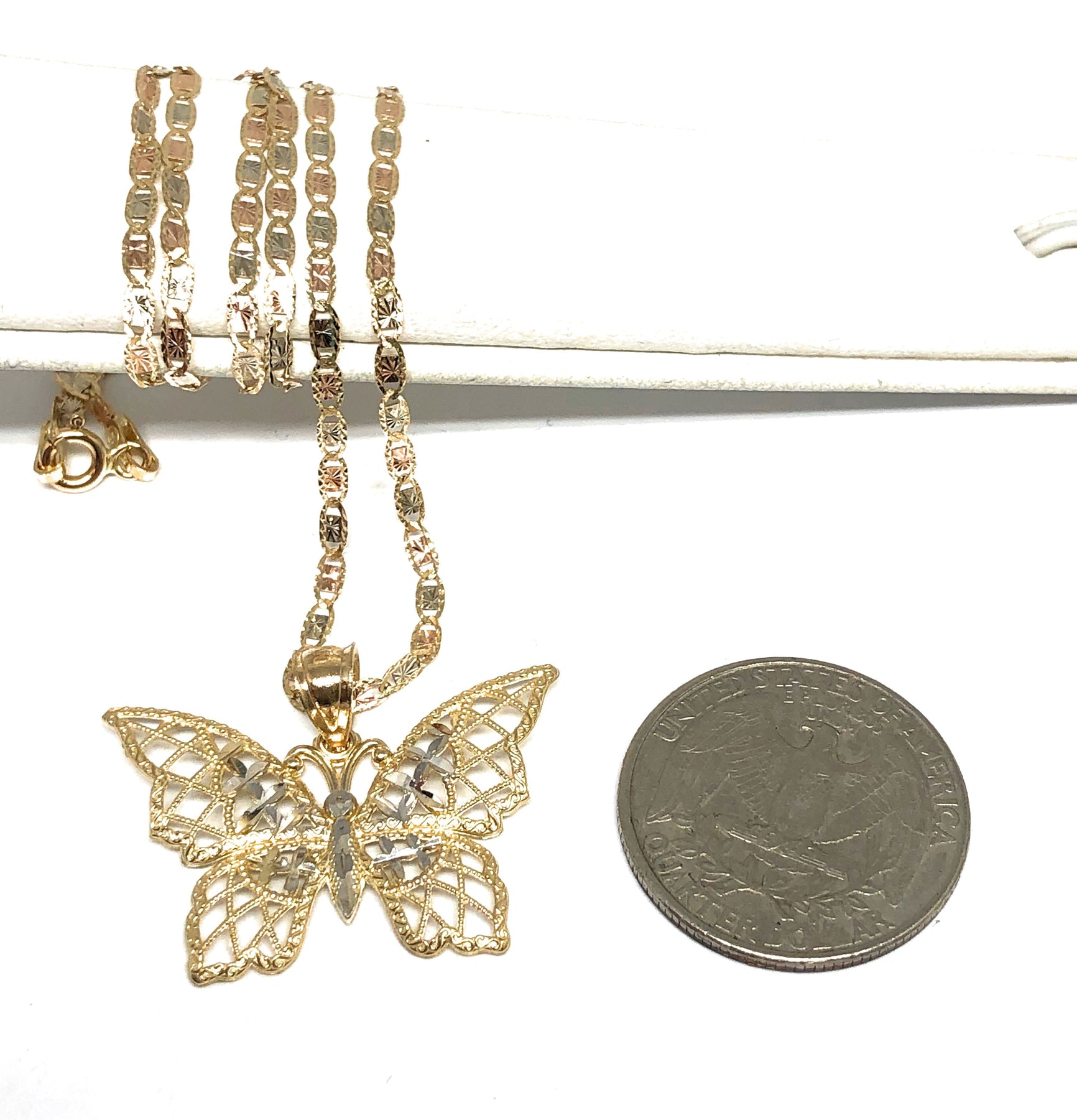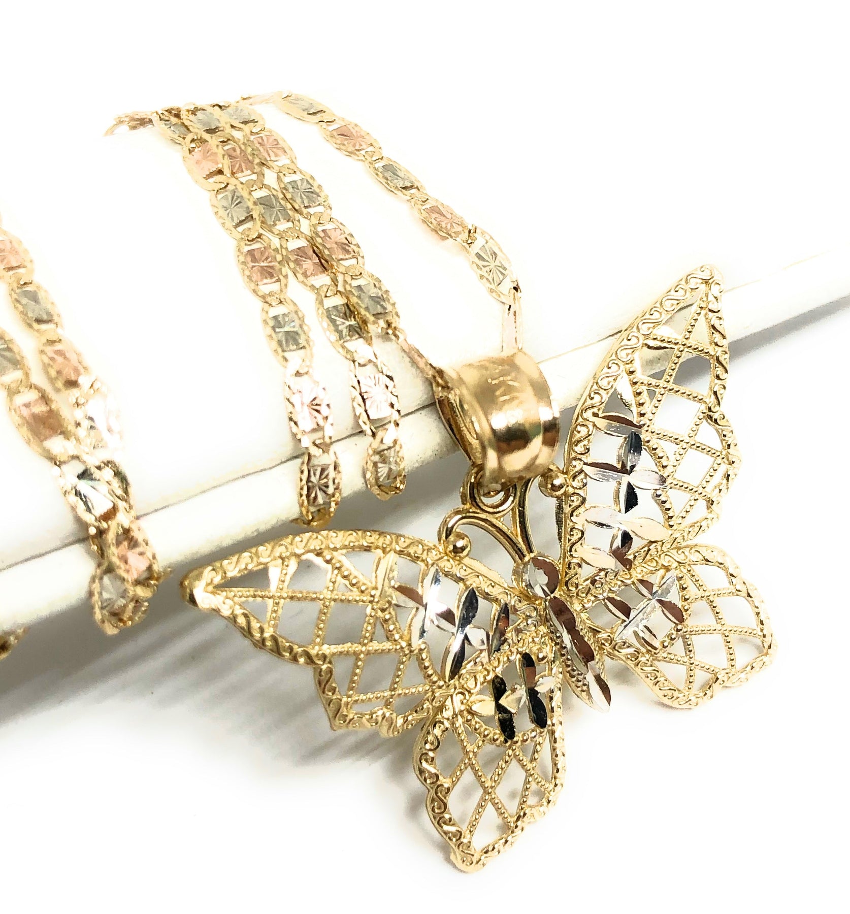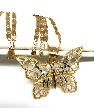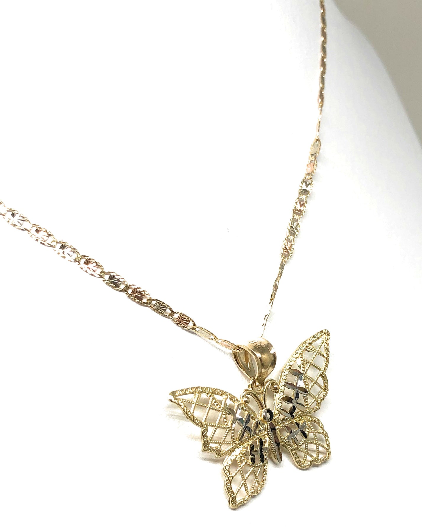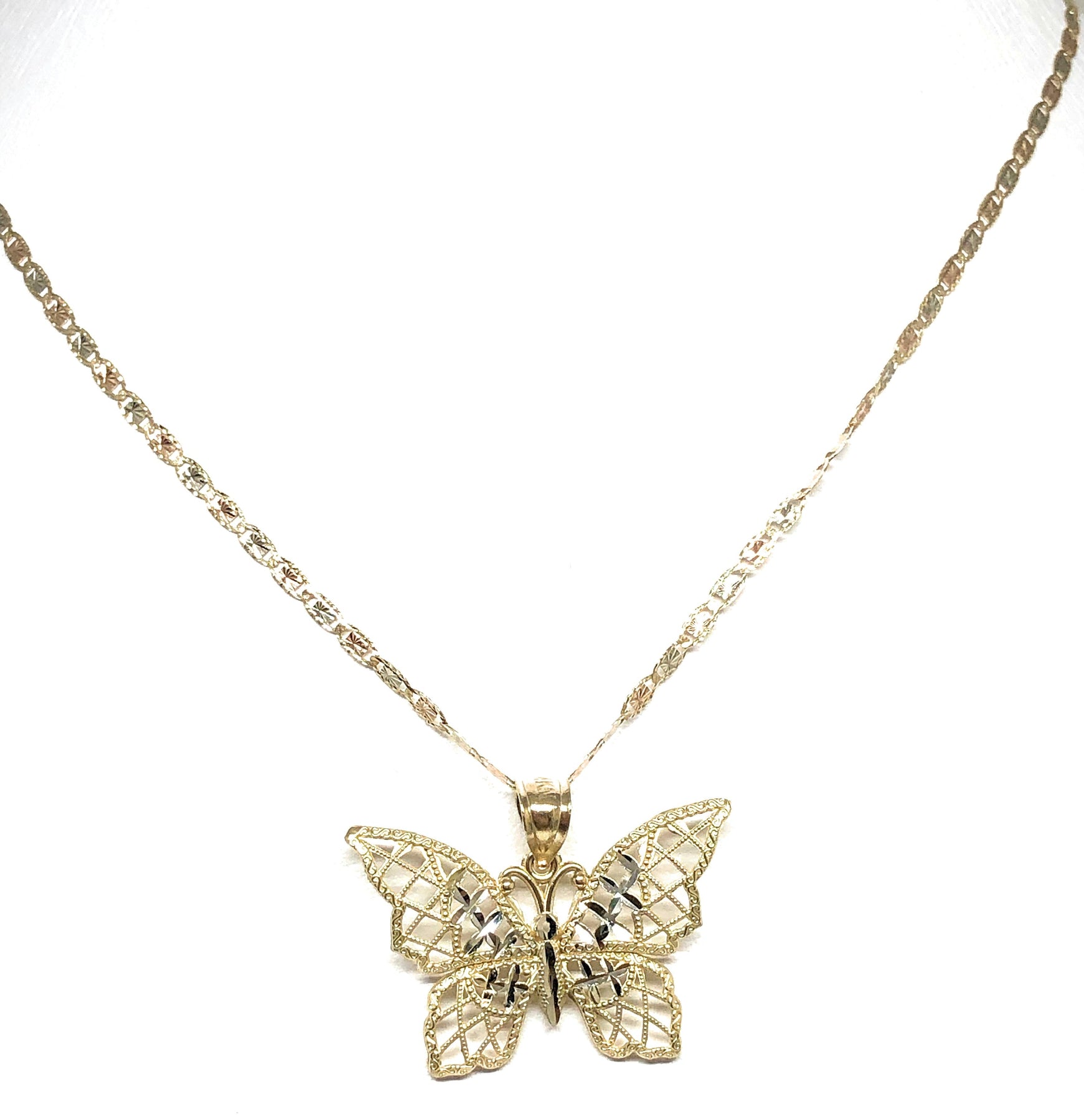 10k Solid Gold Tri-Color Butterfly Pendant Necklace Valentina Chain