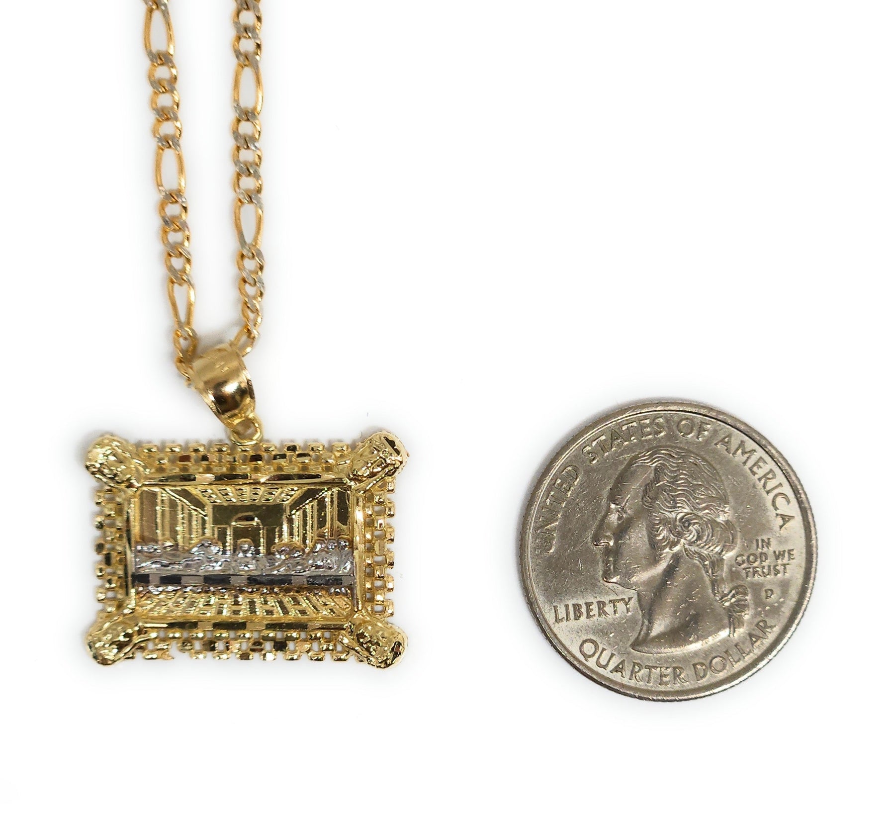 14k Solid Gold Yellow 2-Tone Jesus Last Supper CZ Pendant Necklace (MED, LG) (7.8g)