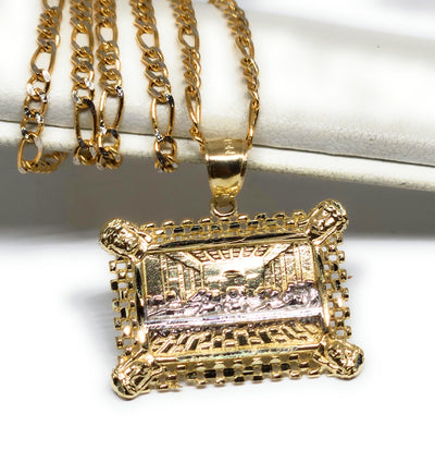 10k Solid Gold 2-TONE Jesus Last Supper SQUARE Pendant Necklace (XS, SM, MED)