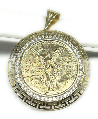 14k Solid Gold Mexican Cenntenario MEANDROS BORDER Pendant Necklace (LG, MED, SM)