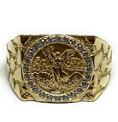 14k Solid Gold MEXICAN CENNTENARIO 50 COIN NUGGET CZ Ring (SM) (4.3g)