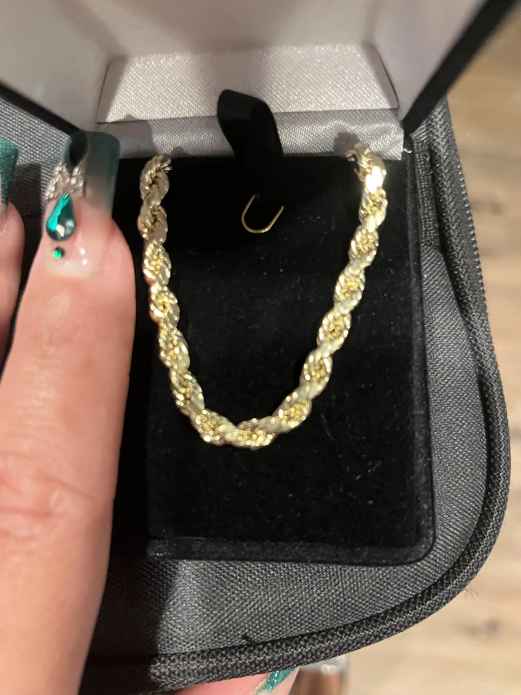 It doesn’t look like real 10k gold to me. Not sure if it’s the white gold in it but it looks like a walmart type of gold. I ordered a 24in one but it doesn’t feel like 24in. It’s also much thinner than I expected.