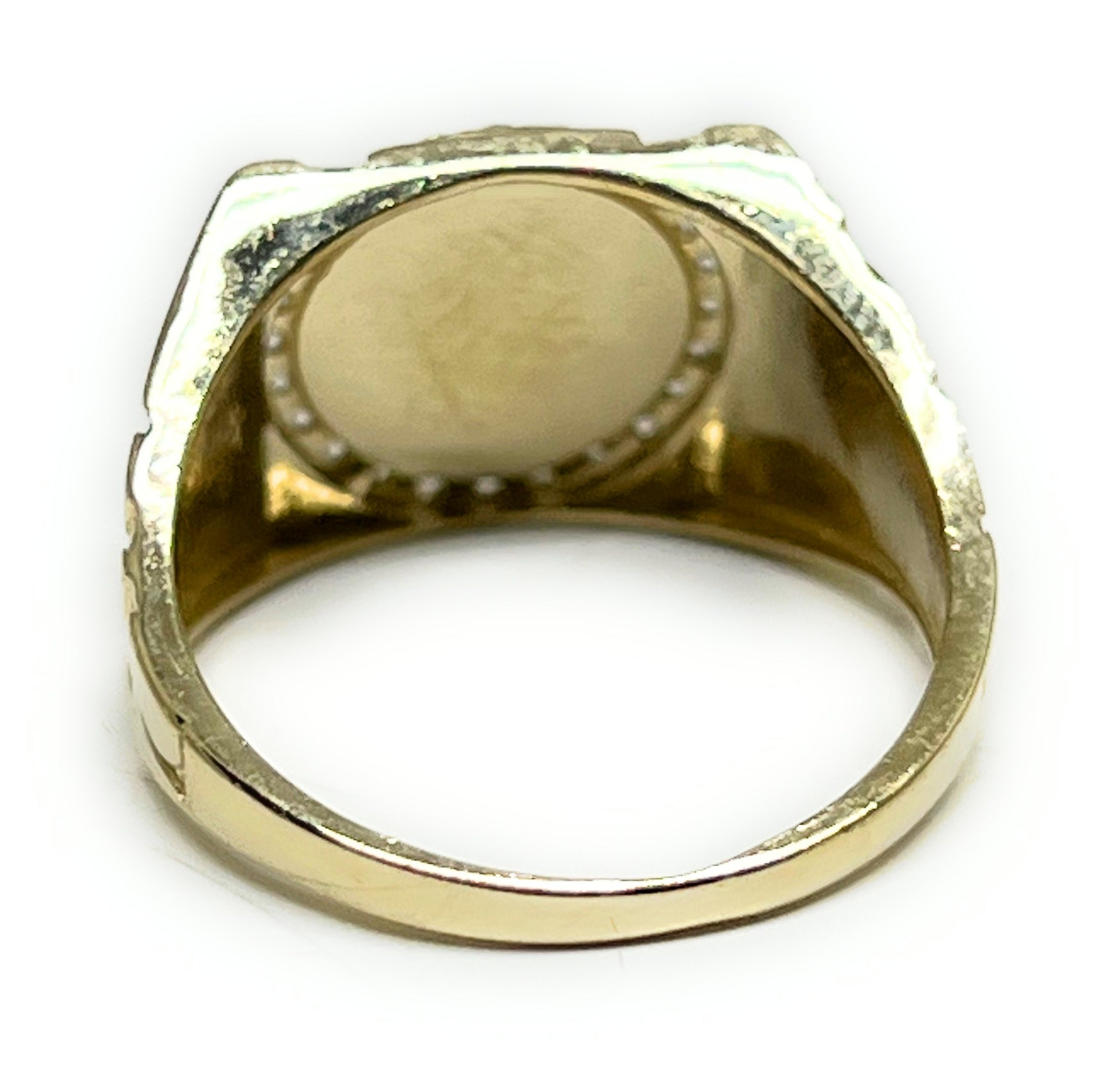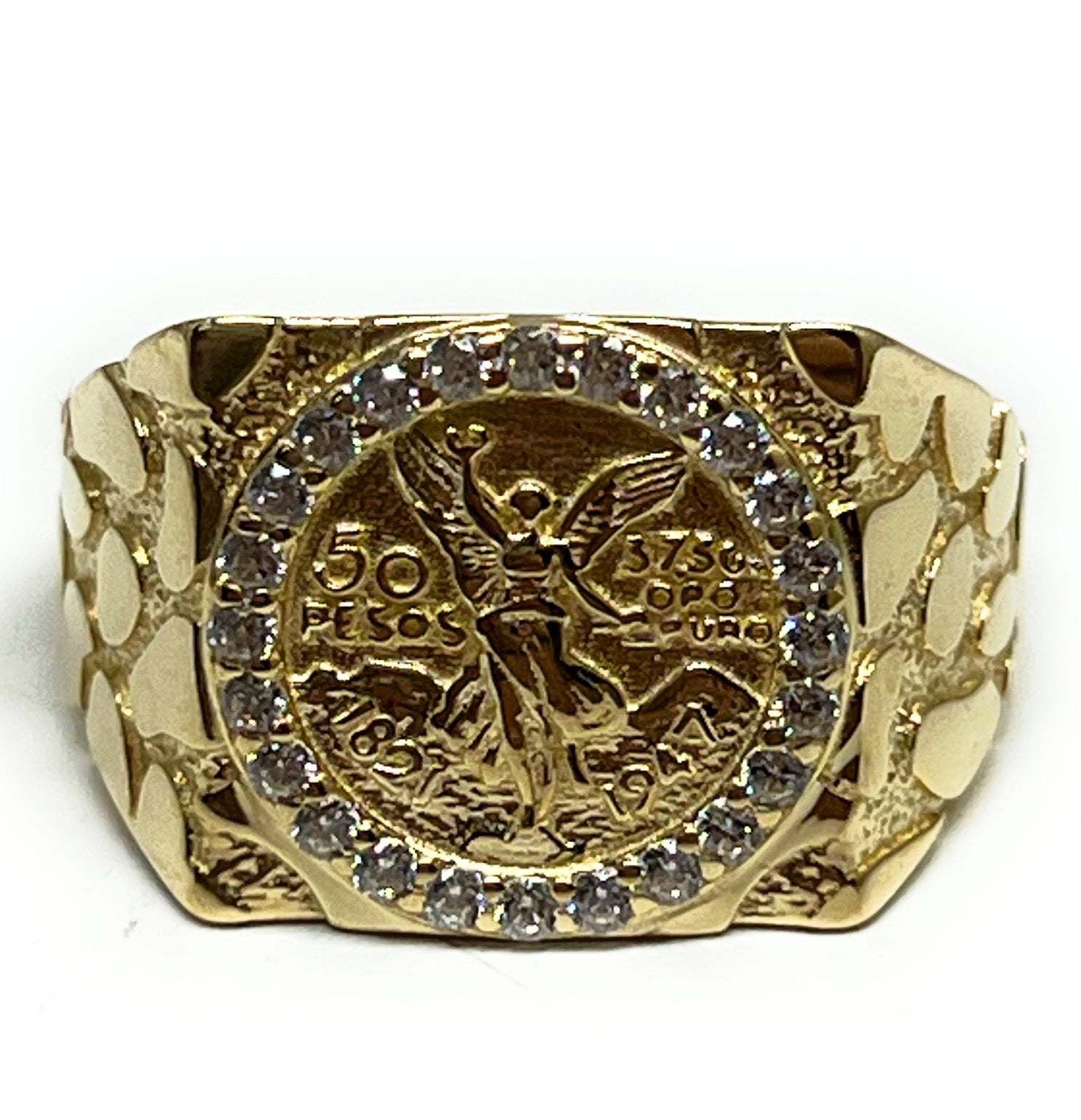 Truly unique design with detailed craftsmanship, we combined a Mexican traditional Centenario coin and shrank it to fit in a nugget style ring.