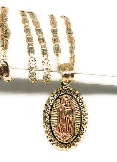 10k Solid Gold Tri-Color Virrgin Mary Pendant Necklace Virrgen Gaudalupe Valentina Chain (SM,MED) (MADE IN MX)