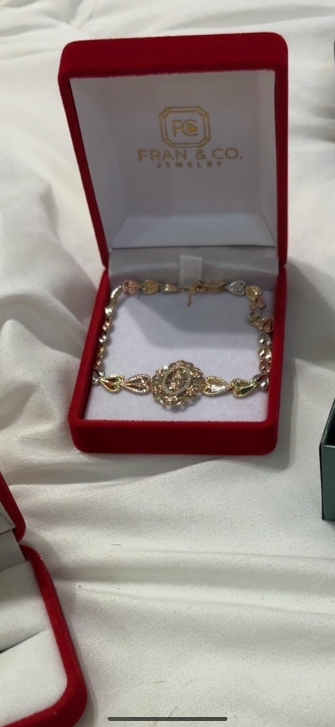 Virgin Mary bracelet are 10k solid gold guaranteed.
