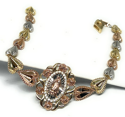 Tri-Color Virgin Mary bracelet is textured and layered to the make the image come out.