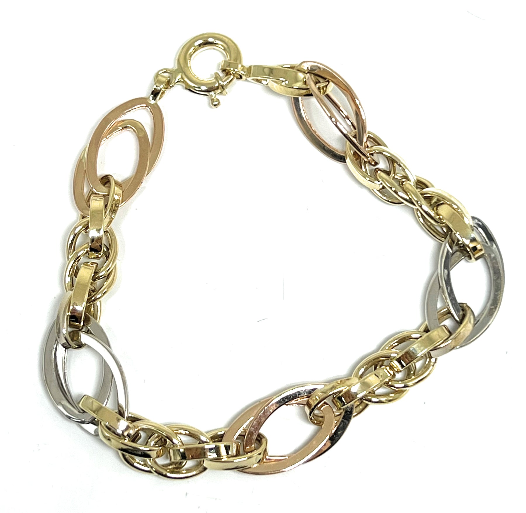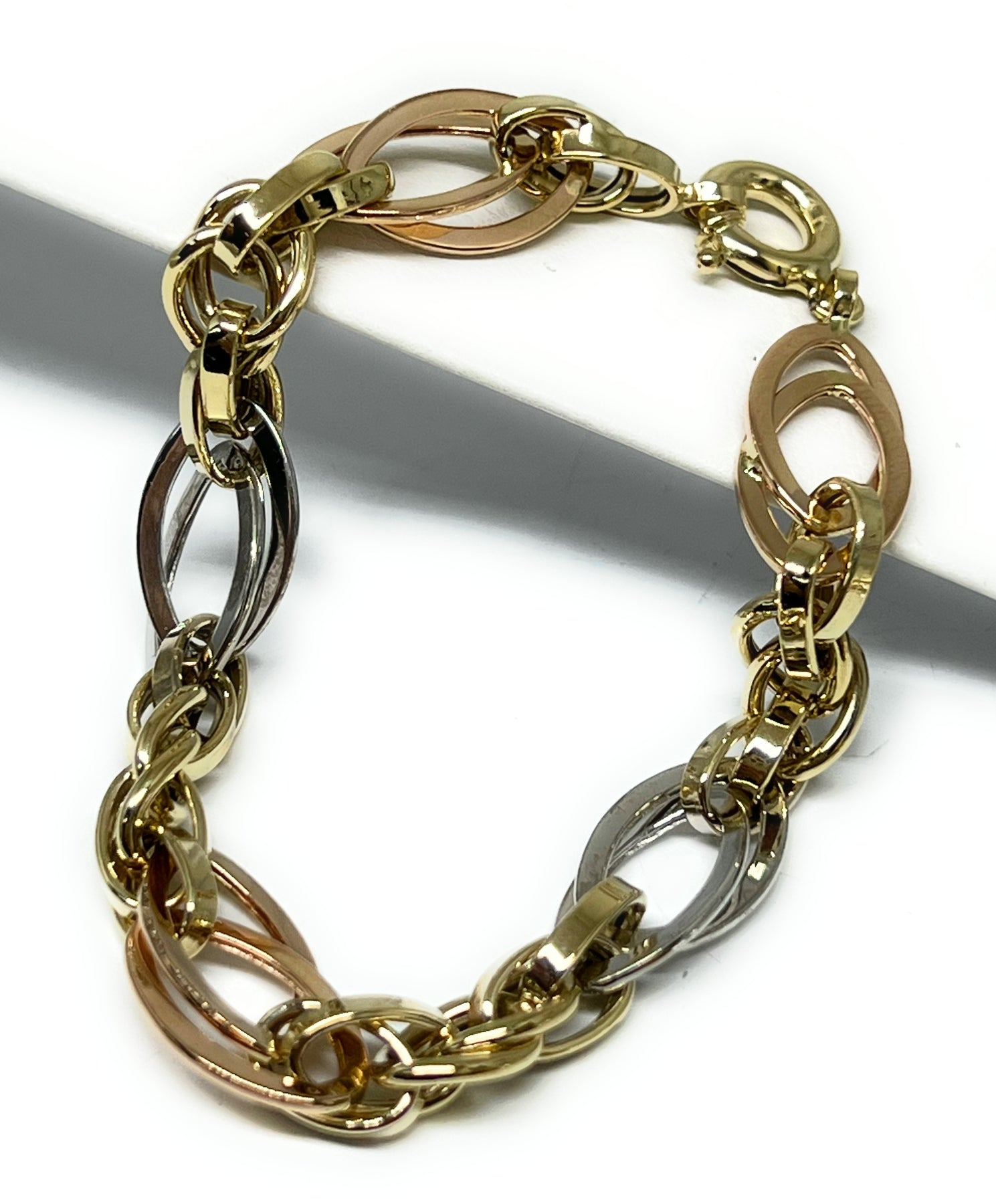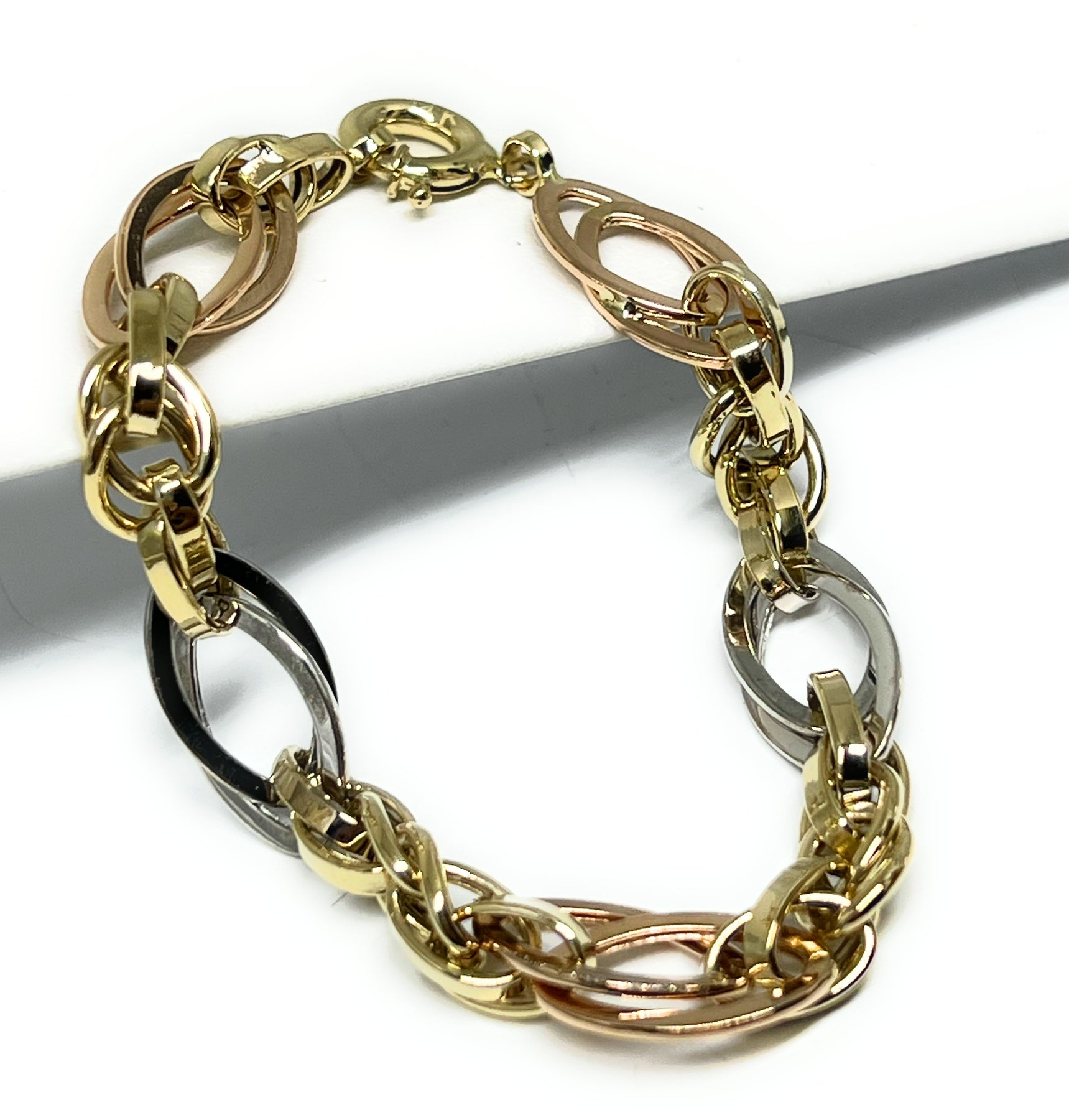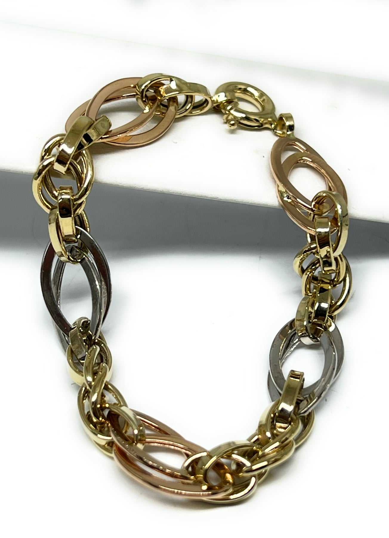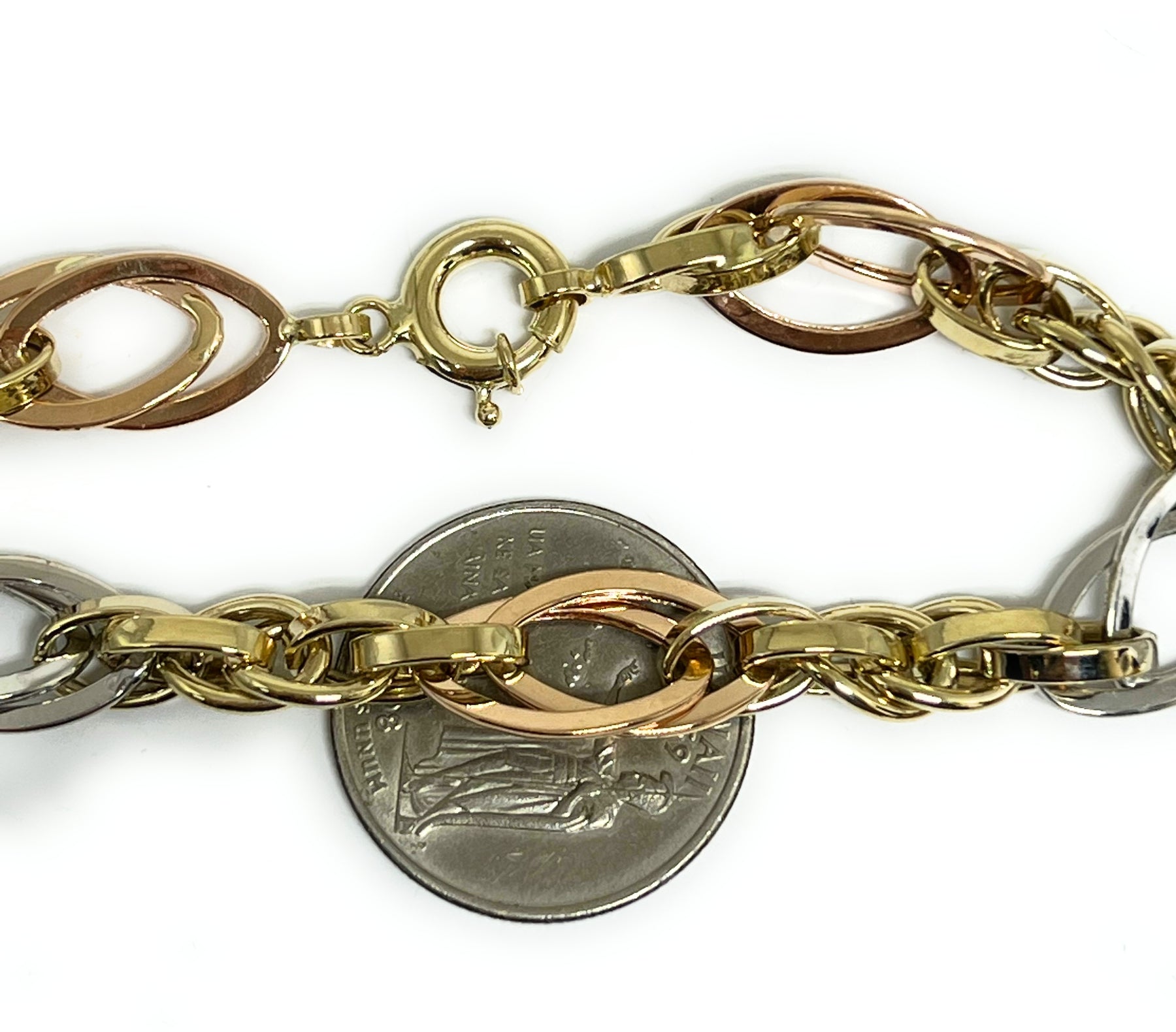 TRI-COLOR OVAL HOOP LINK style bracelet 14k solid gold guaranteed.