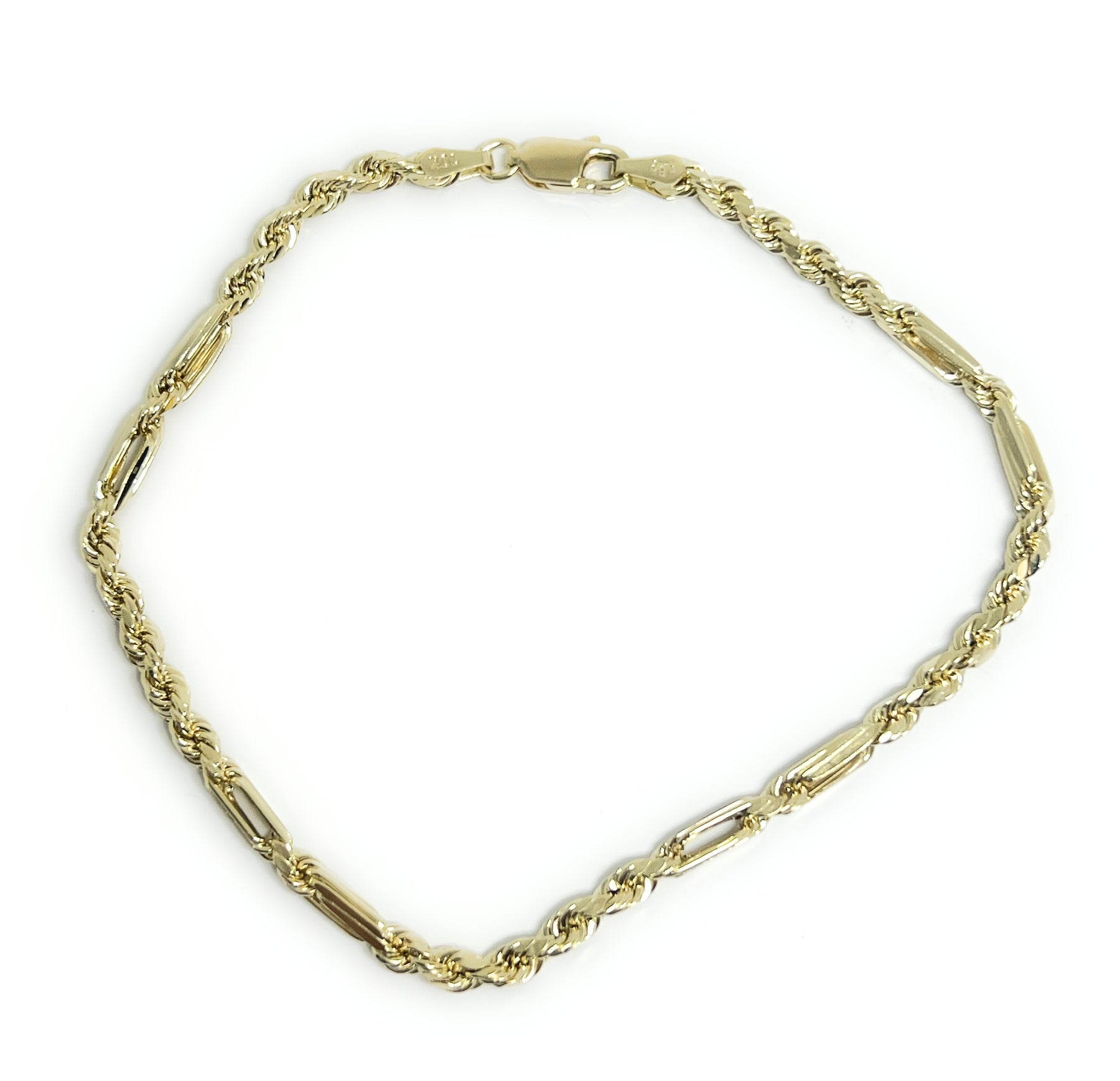- Rope bracelet SEMI HOLLOW in 10k solid gold is available in 7-8 inches at 3mm in width.