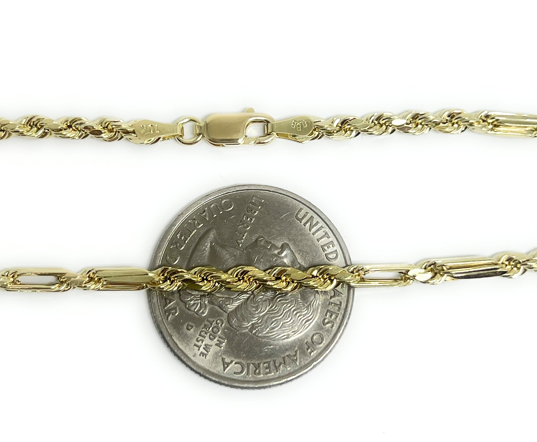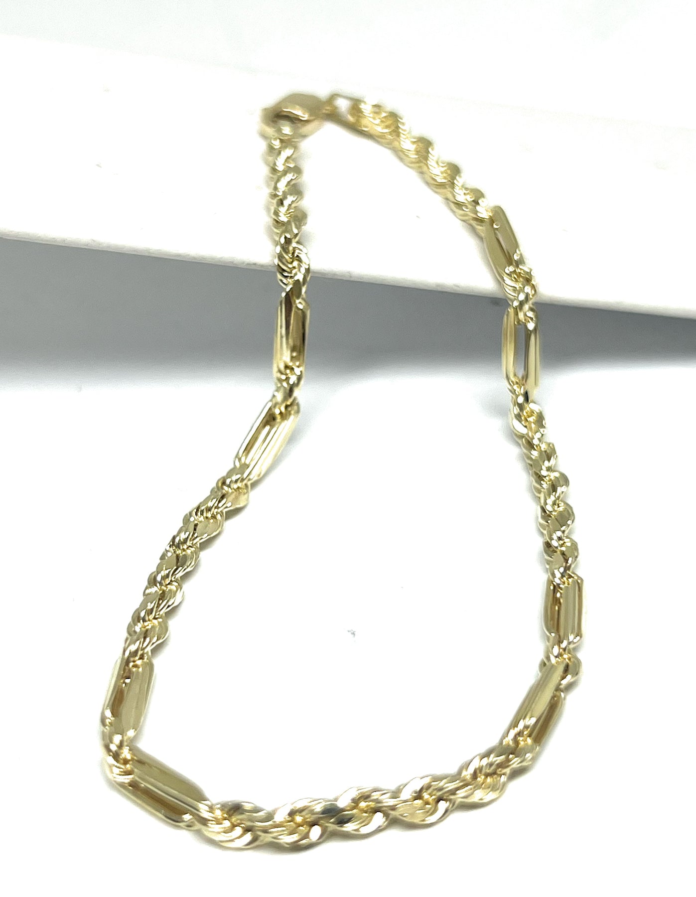 10k Solid Gold Milano Rope "FIGAROPE" BRRACELET 7-8 inch 3mm (SEMI-HOLLOW STYLE)