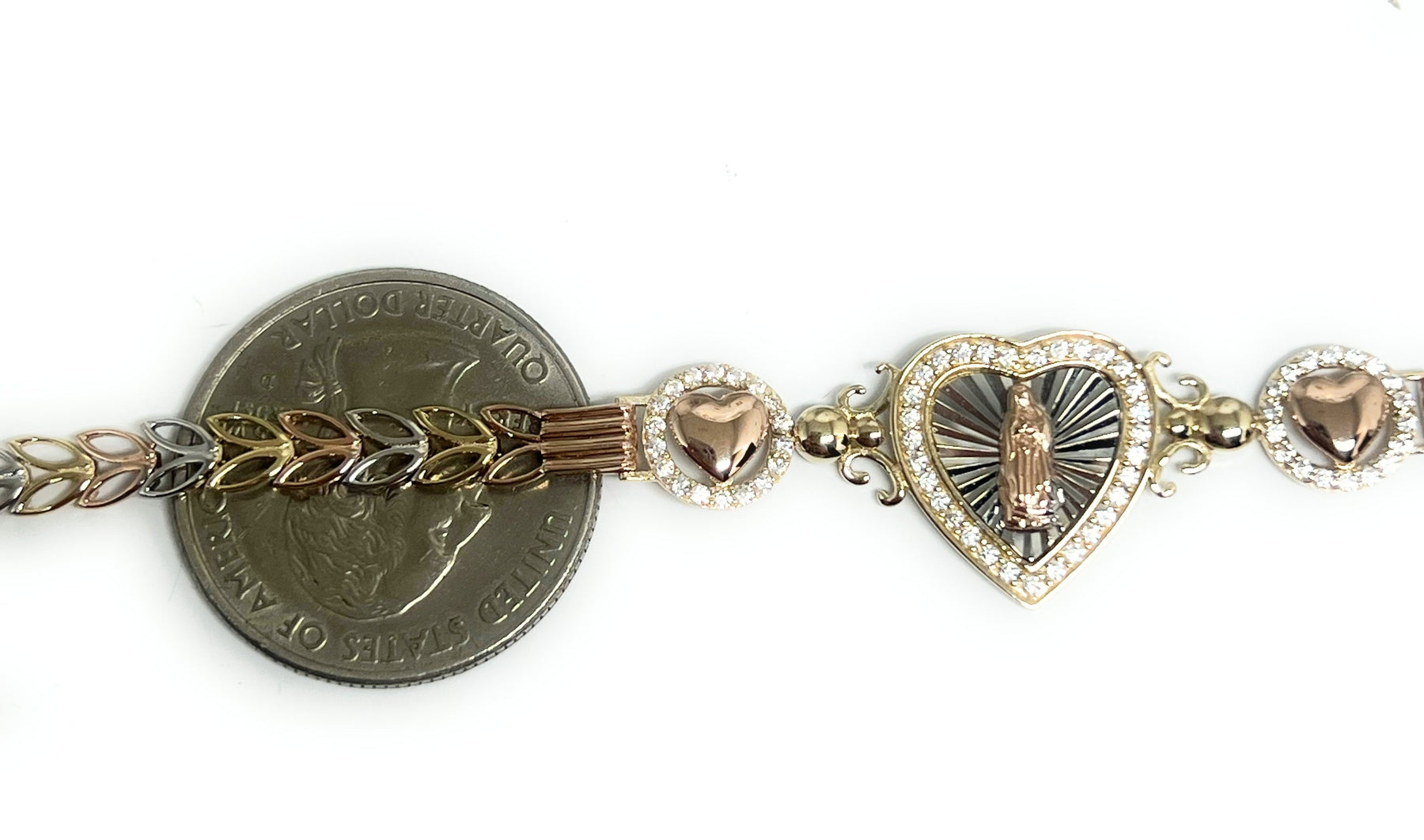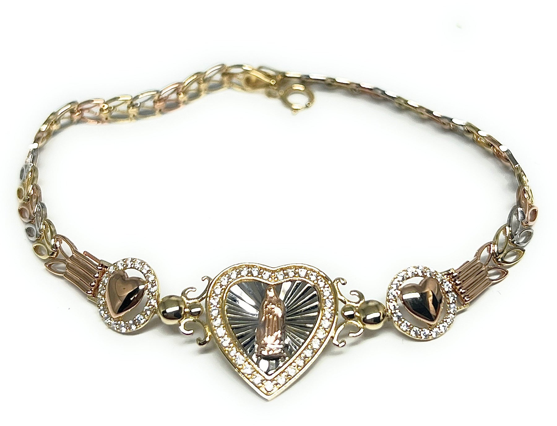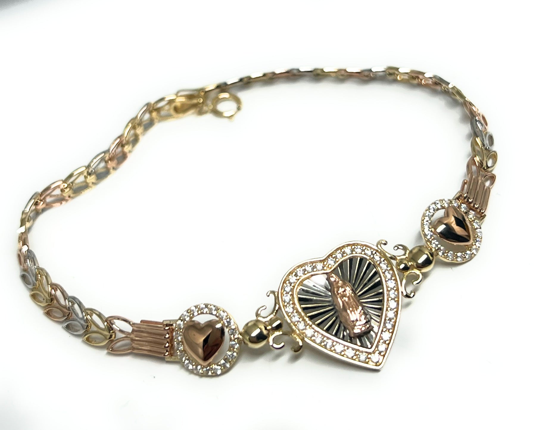 10k Solid Gold Tri-Color Virrgin Mary HEART Brracelet 7.5-8 inch Virrgen Guadalupe (FC)