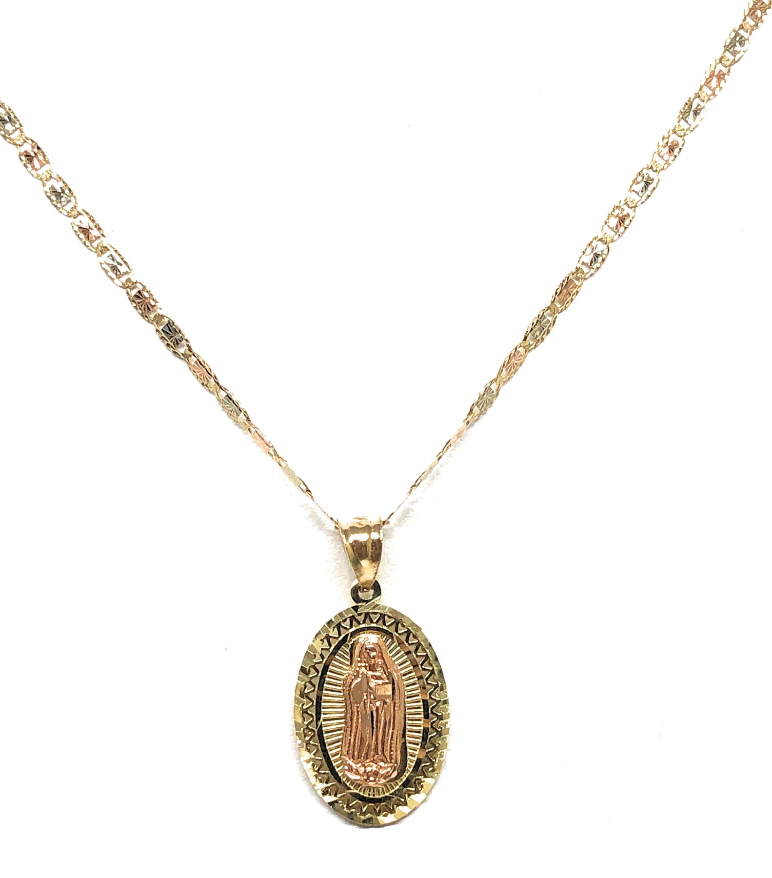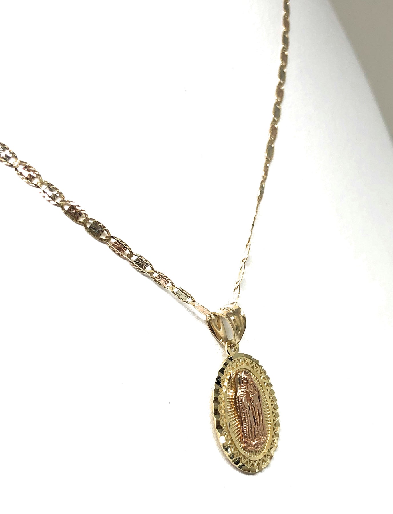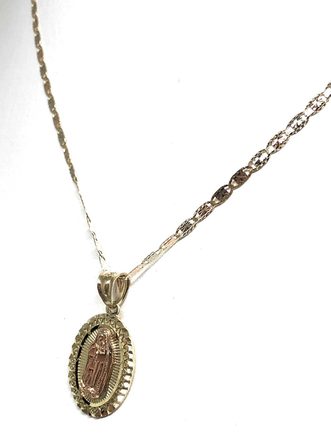 10k Solid Gold Yellow & Rose Virrgin Mary Pendant Virrgen Guadalupe Necklace