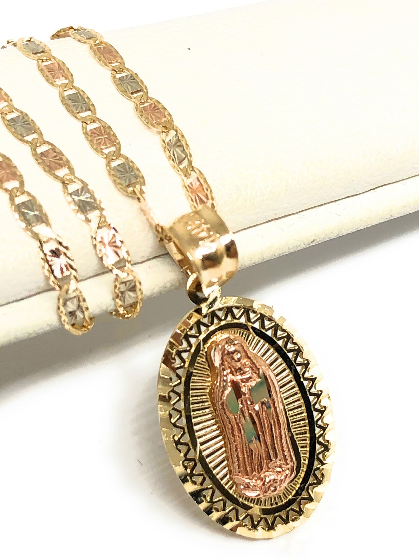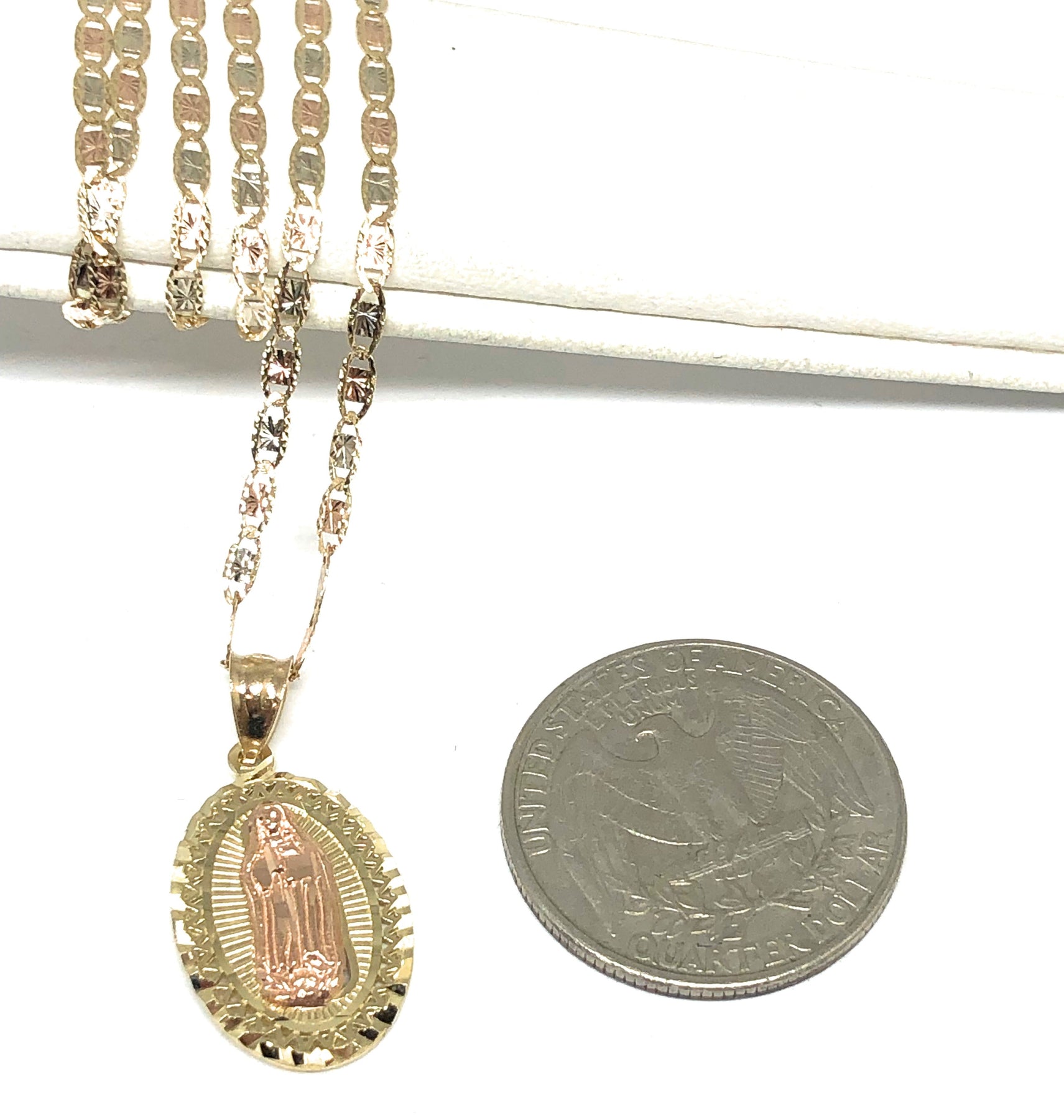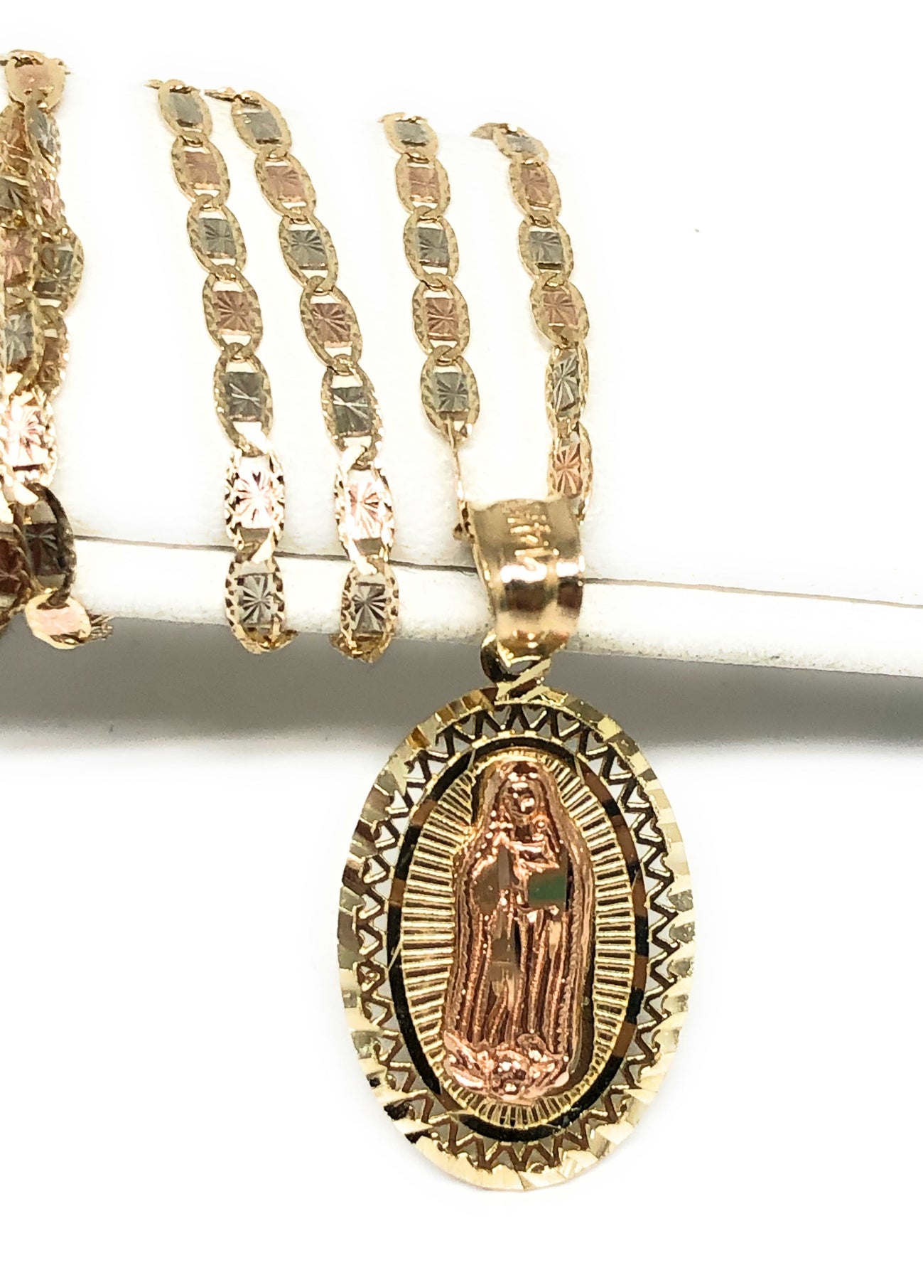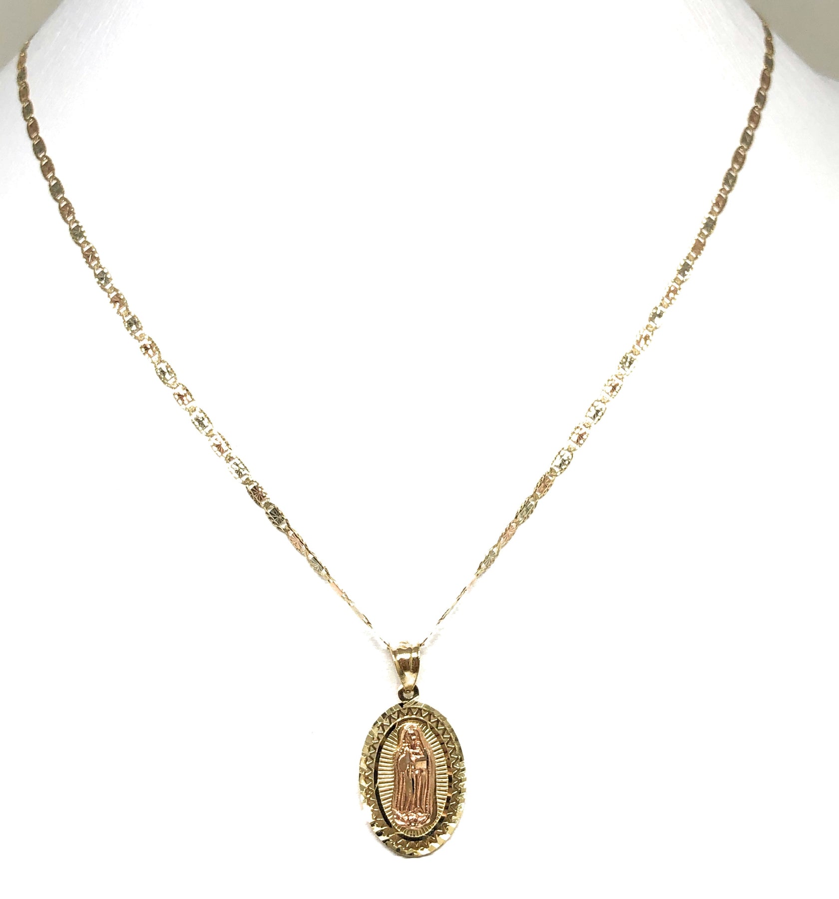 10k Solid Gold Yellow & Rose Virrgin Mary Pendant Virrgen Guadalupe Necklace
