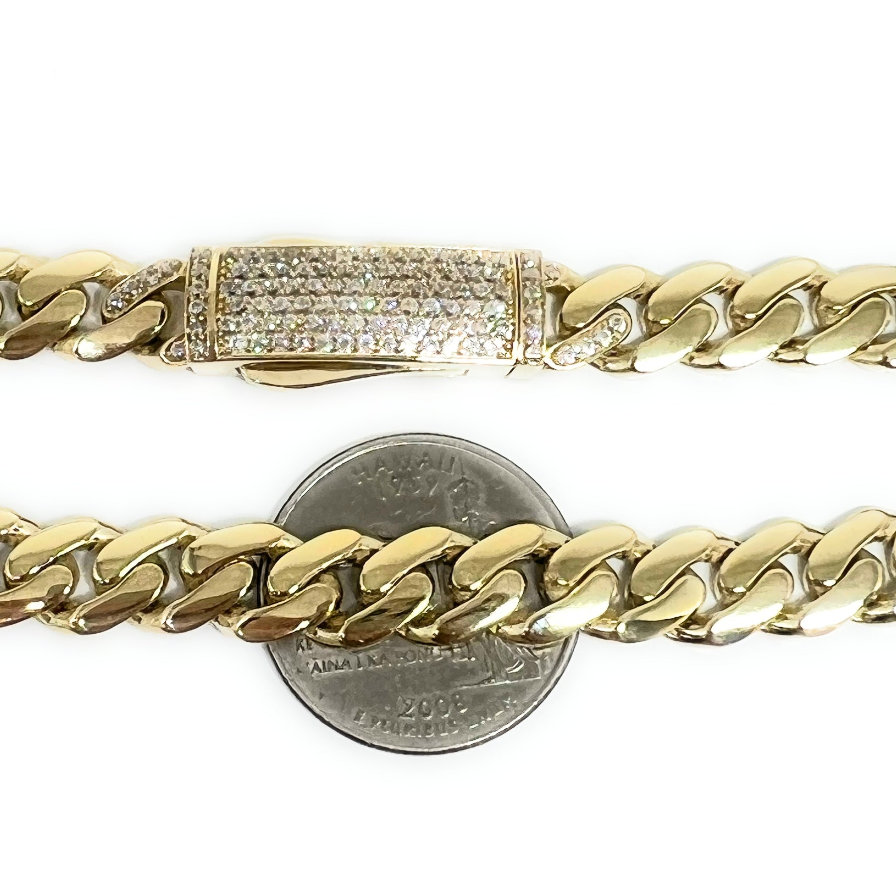 14k Solid Gold Miami Cuban Link Brracelet 7-8 inch 9mm CZ Lock (Semi-Hollow) 17g