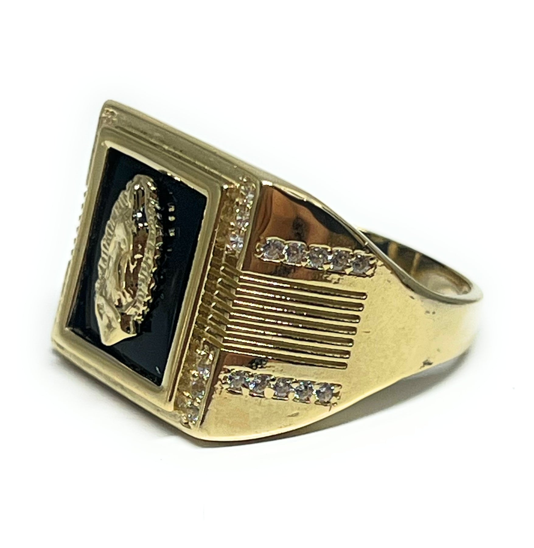 14k Solid Gold Virrgin Mary ONYX CZ Ring (9g)