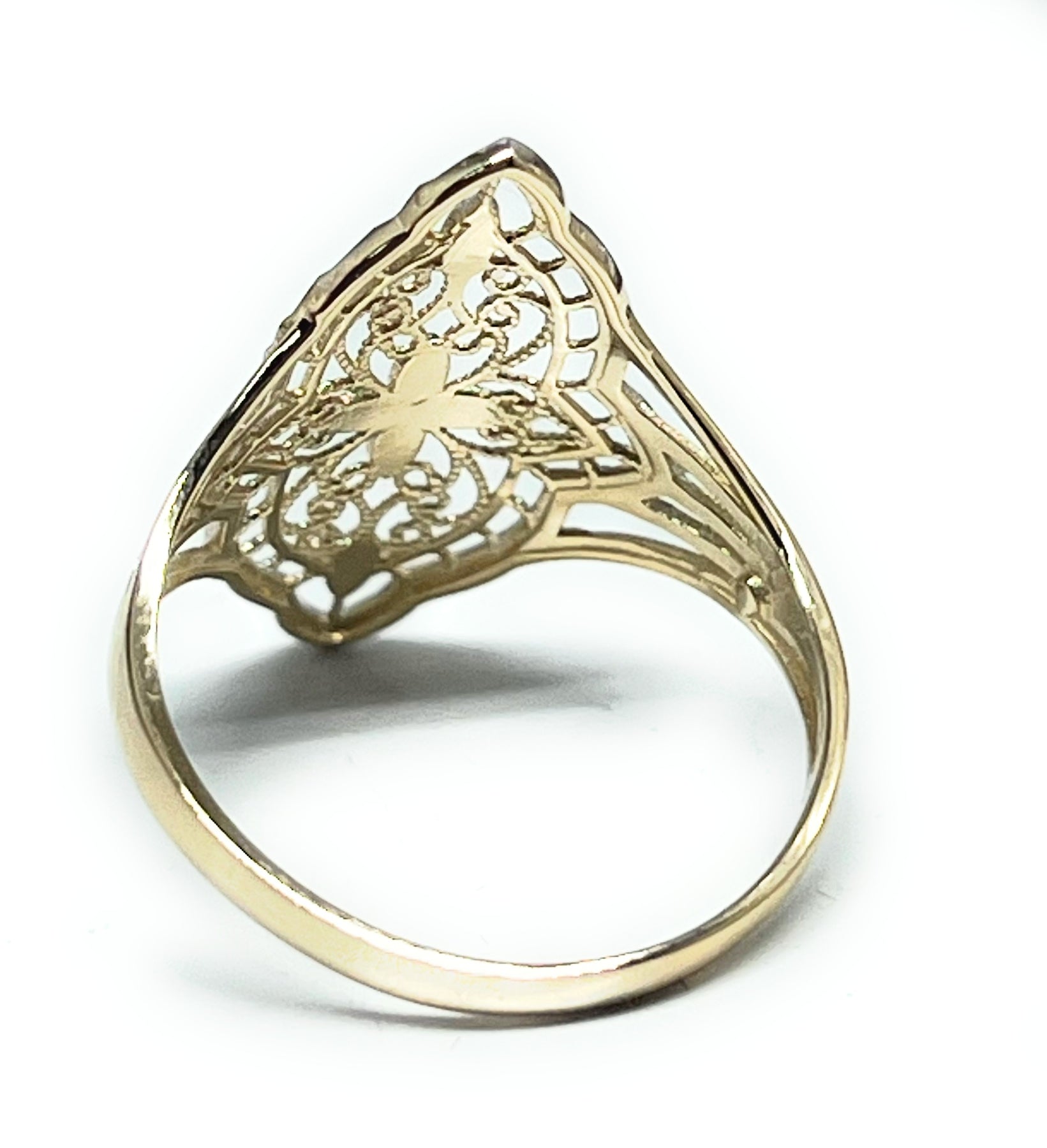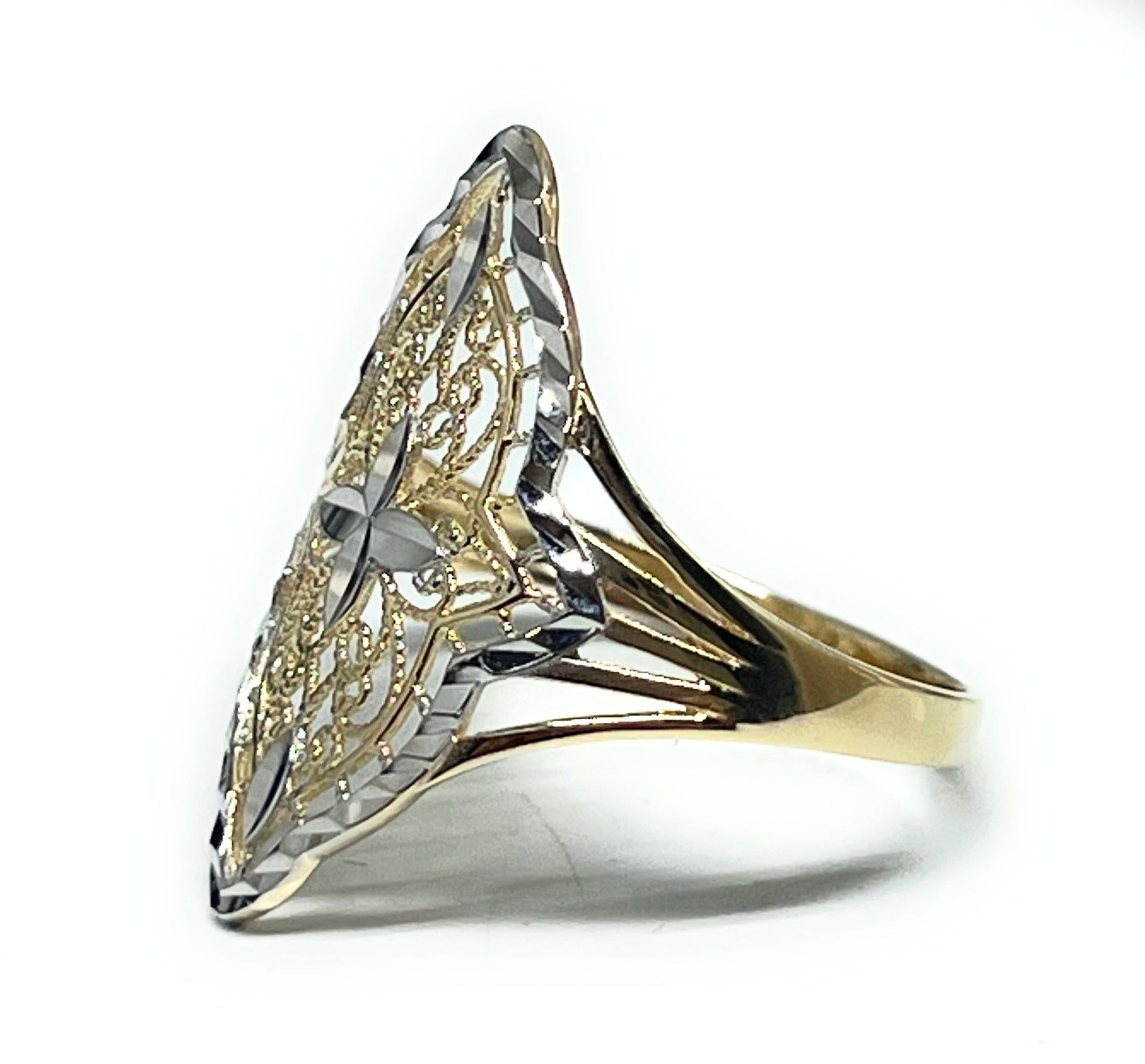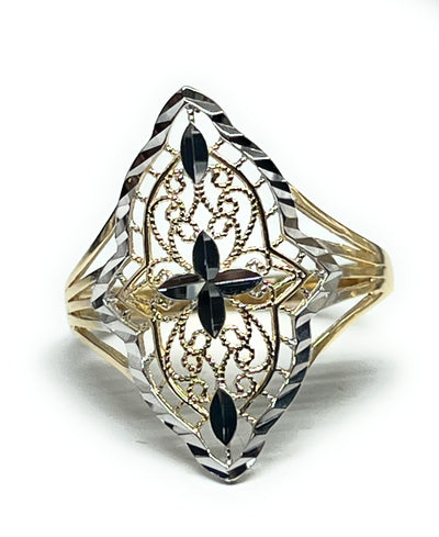 2-Tone Yellow Gold FILIGREE FLOWER Ring 14k solid gold guaranteed.
