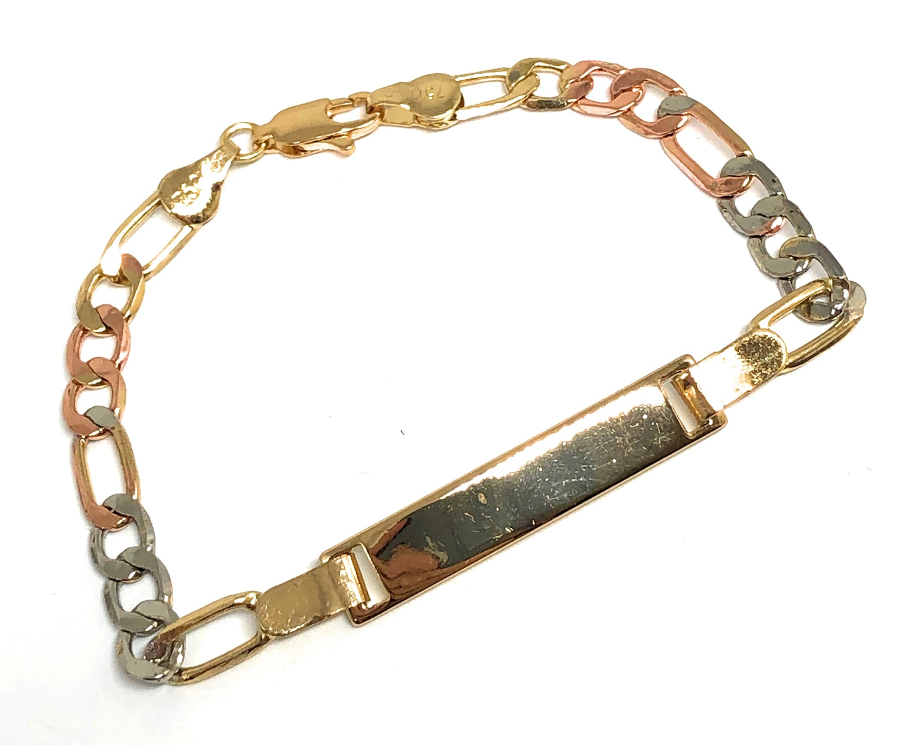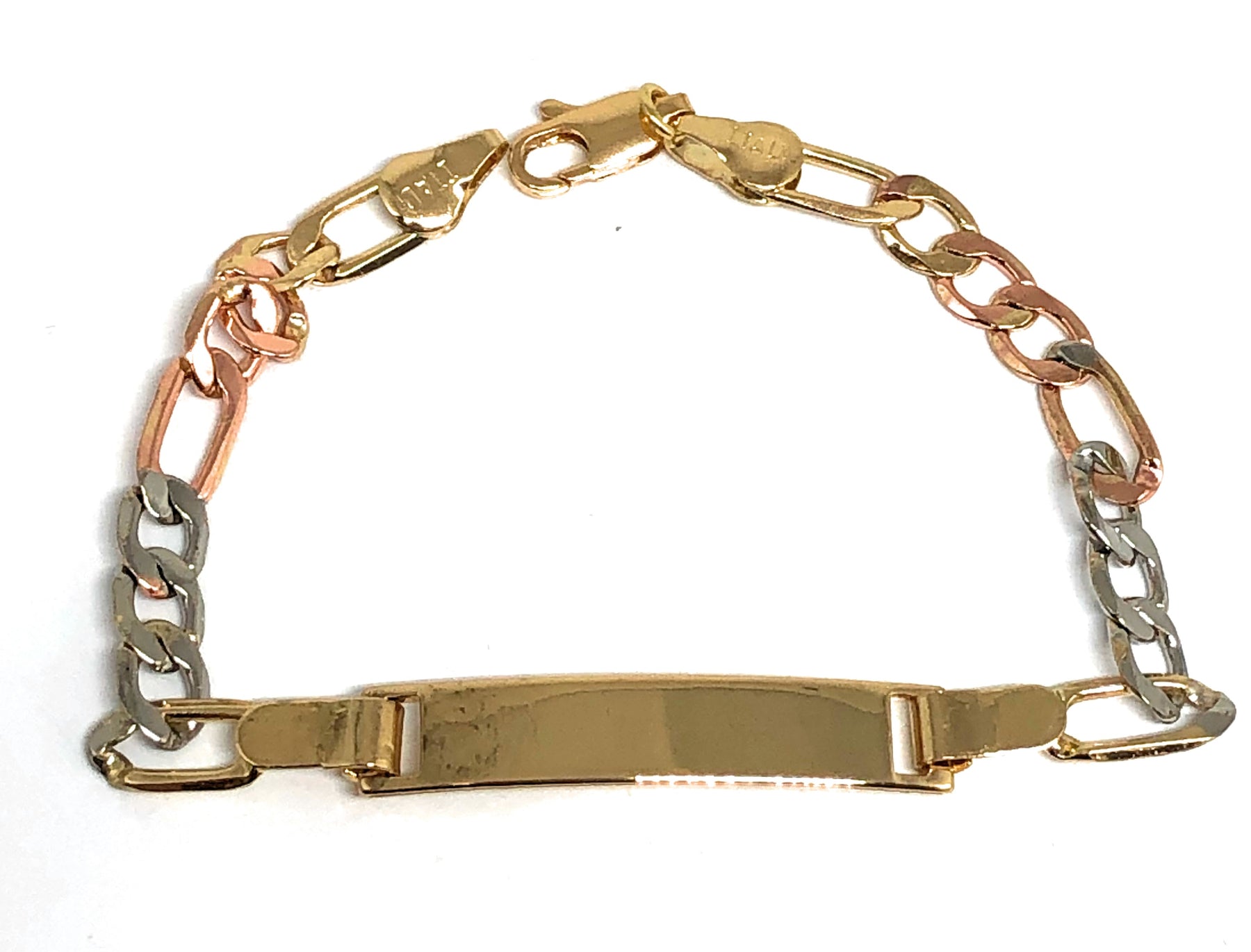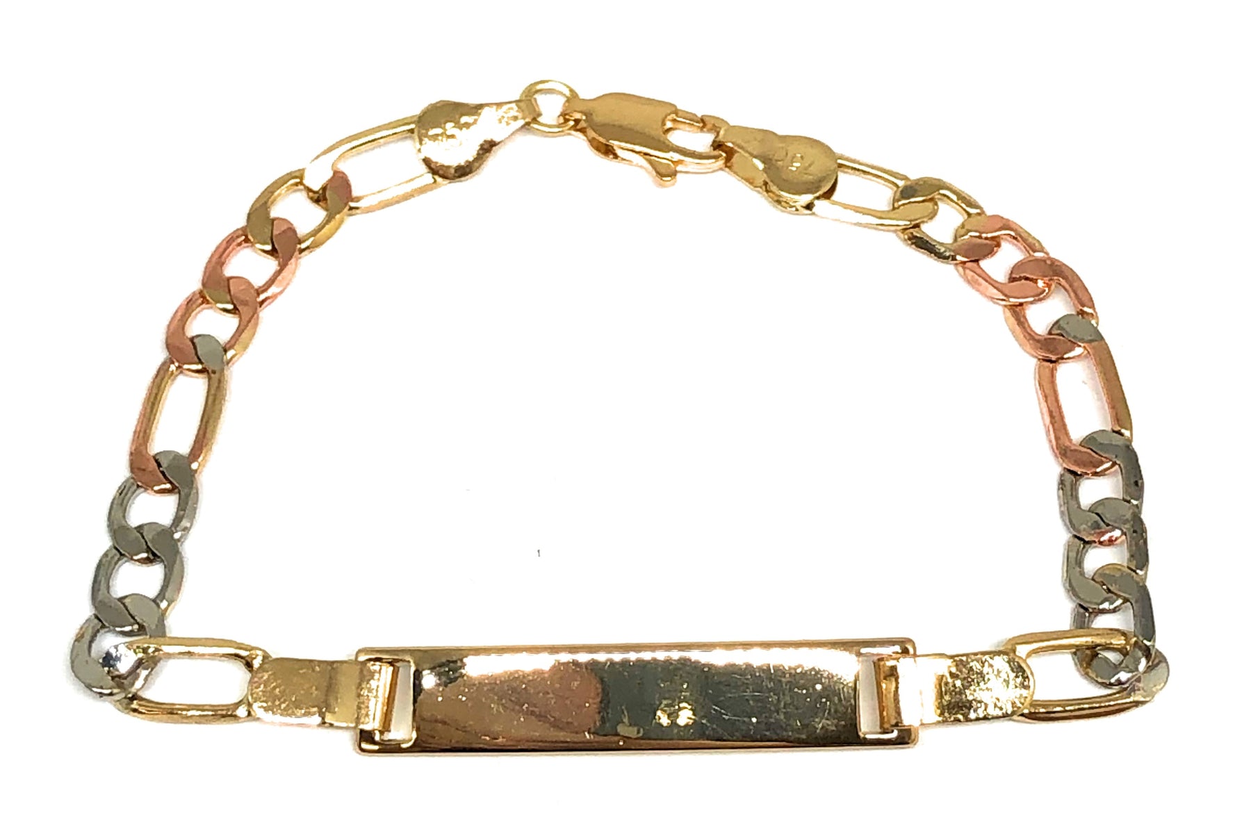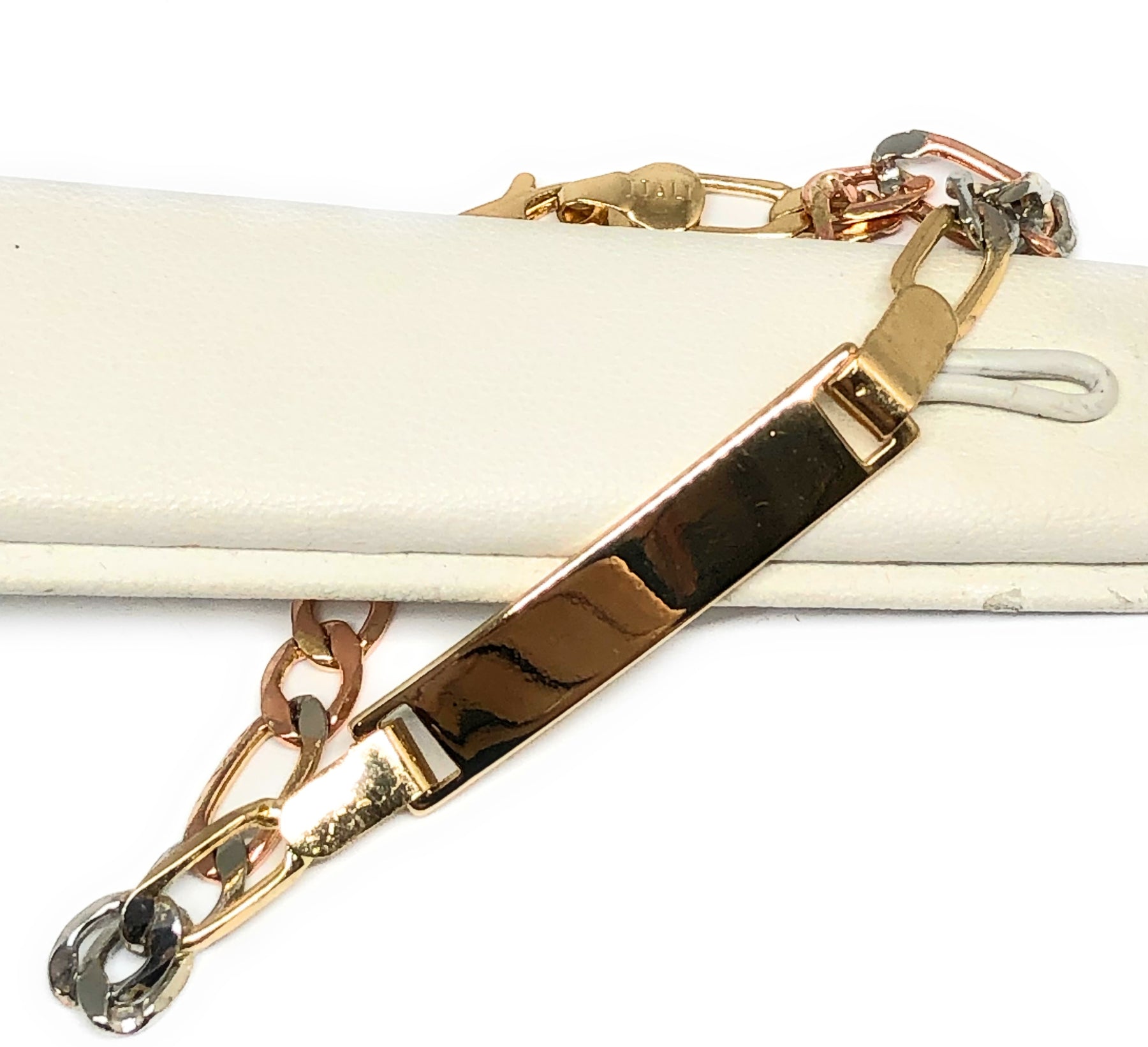 Gold Plated Tri-Color ID FIGARO Bracelet 7.5” 5.5mm Width Esclava