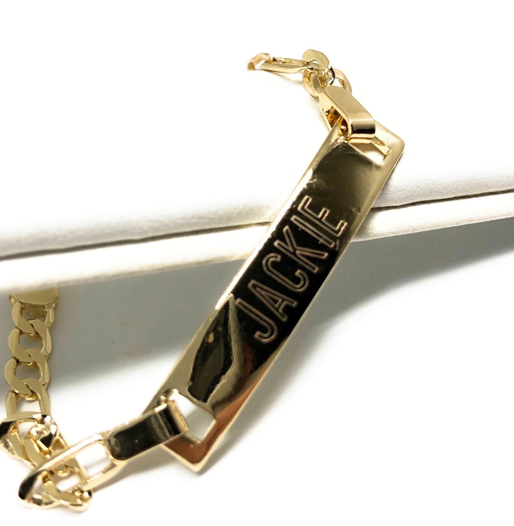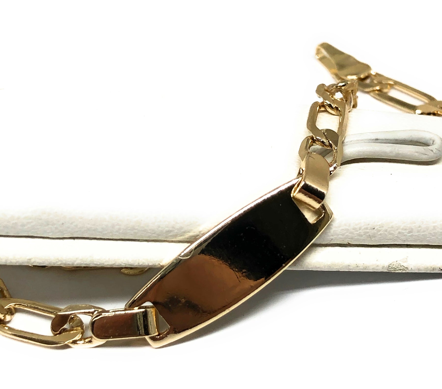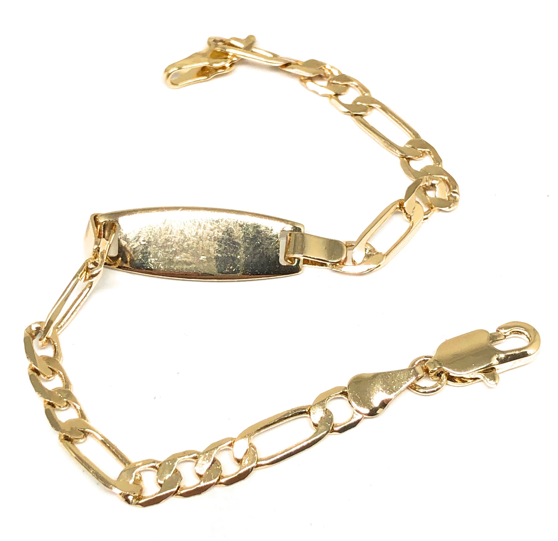 Kids’s Ages 7-13 Gold Plated ID Bracelet 6.5” 3mm Width Esclava