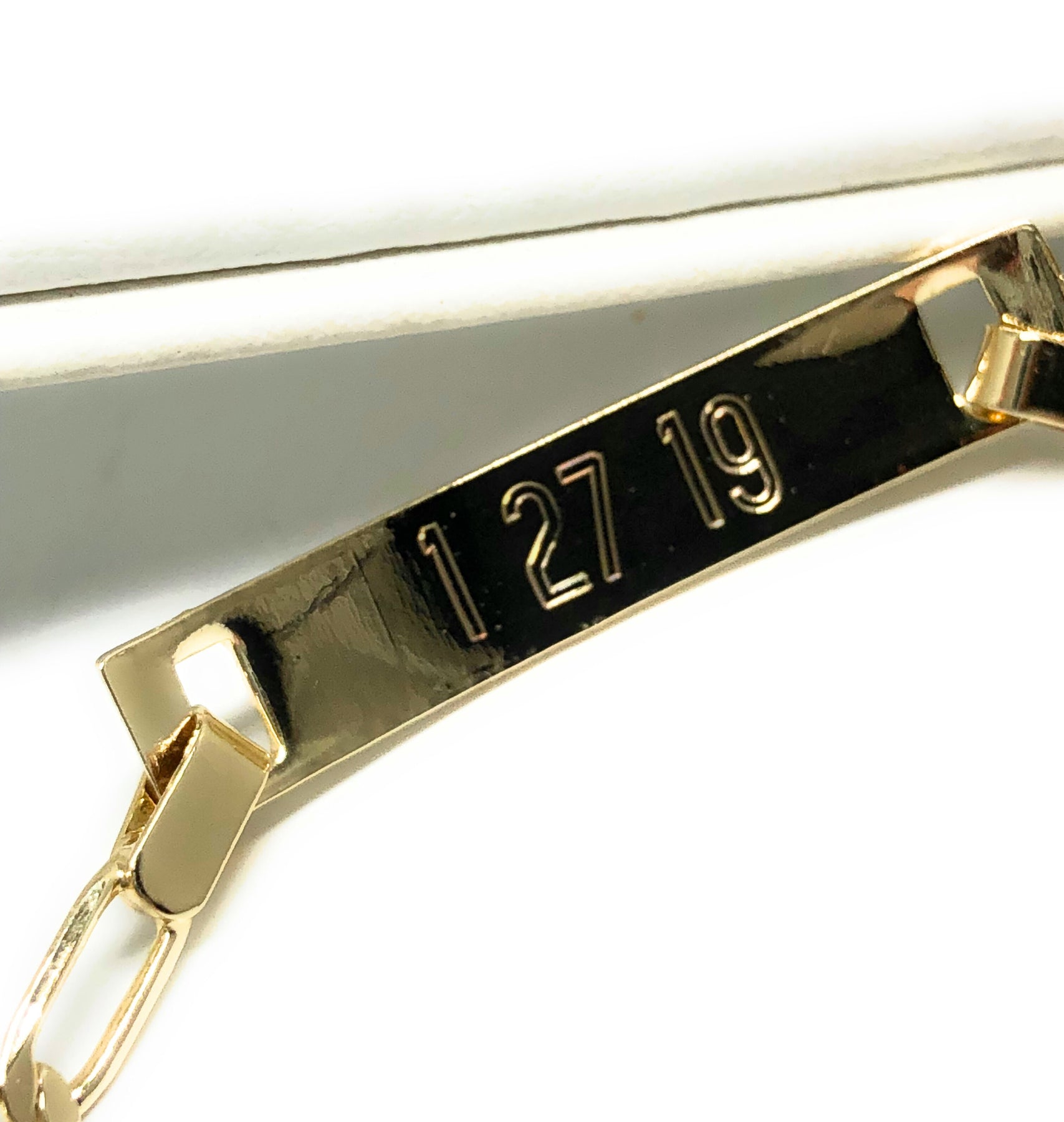 Use the text box above to enter what you want engraved on the front and back of the bracelet. (12 character limit). If you have any issues doing this please email us at contact@franandcojewelry.com after purchasing and tell us what you want engraved!