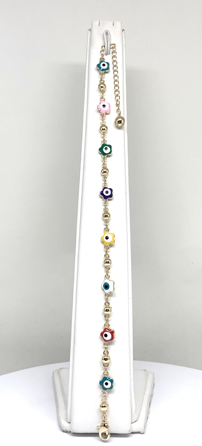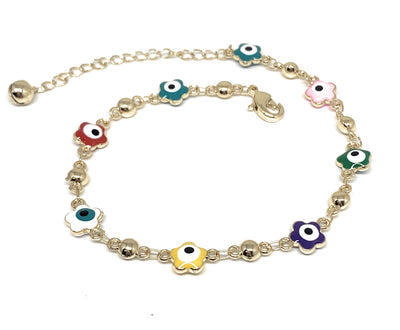 Gold Plated Evil Eye Flower Shape Ankle Bracelet 8-11”