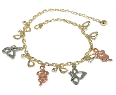 Gold Plated Butterfly & Flower CZ Ankle Bracelet 8-11”